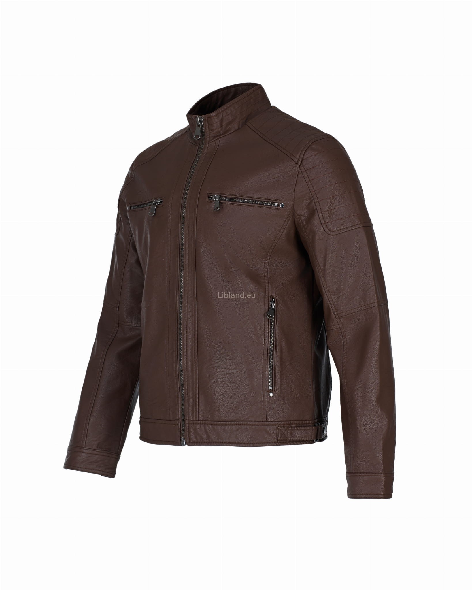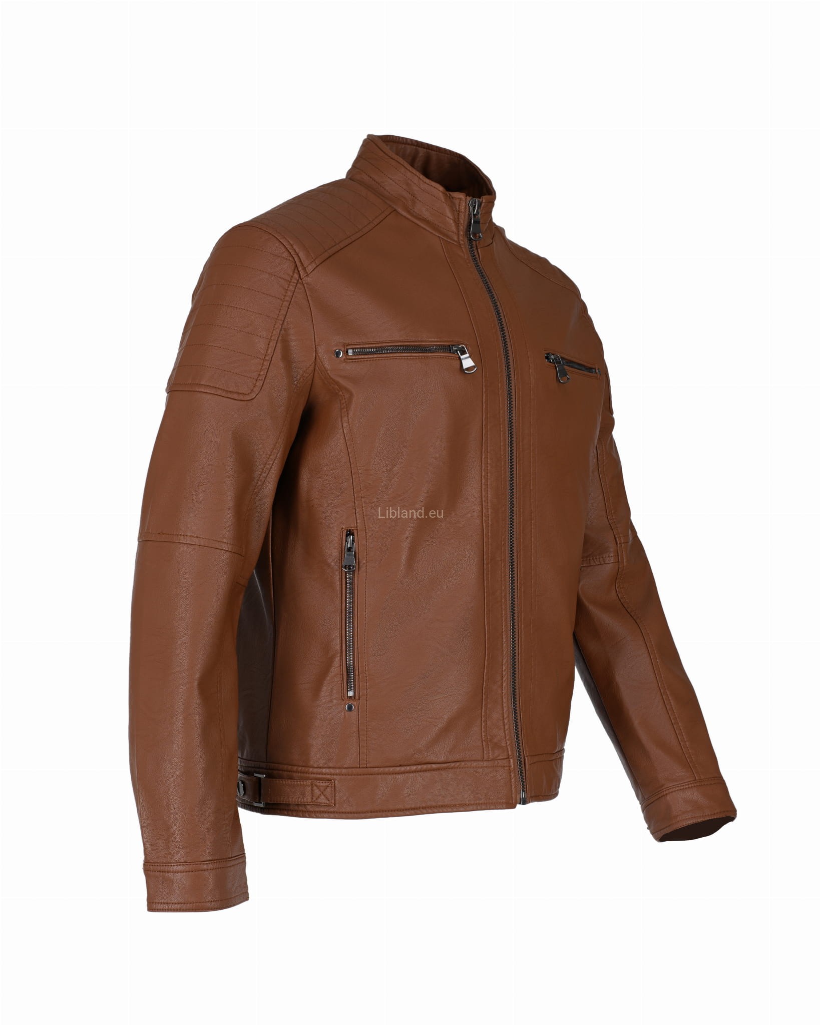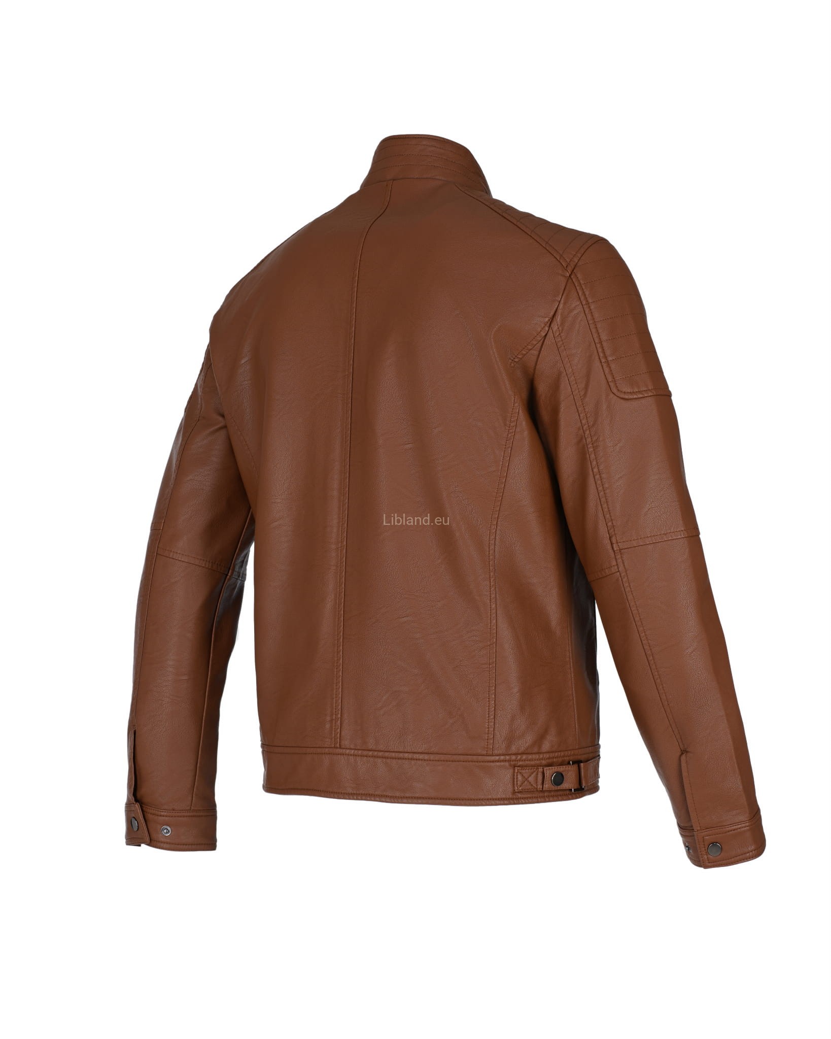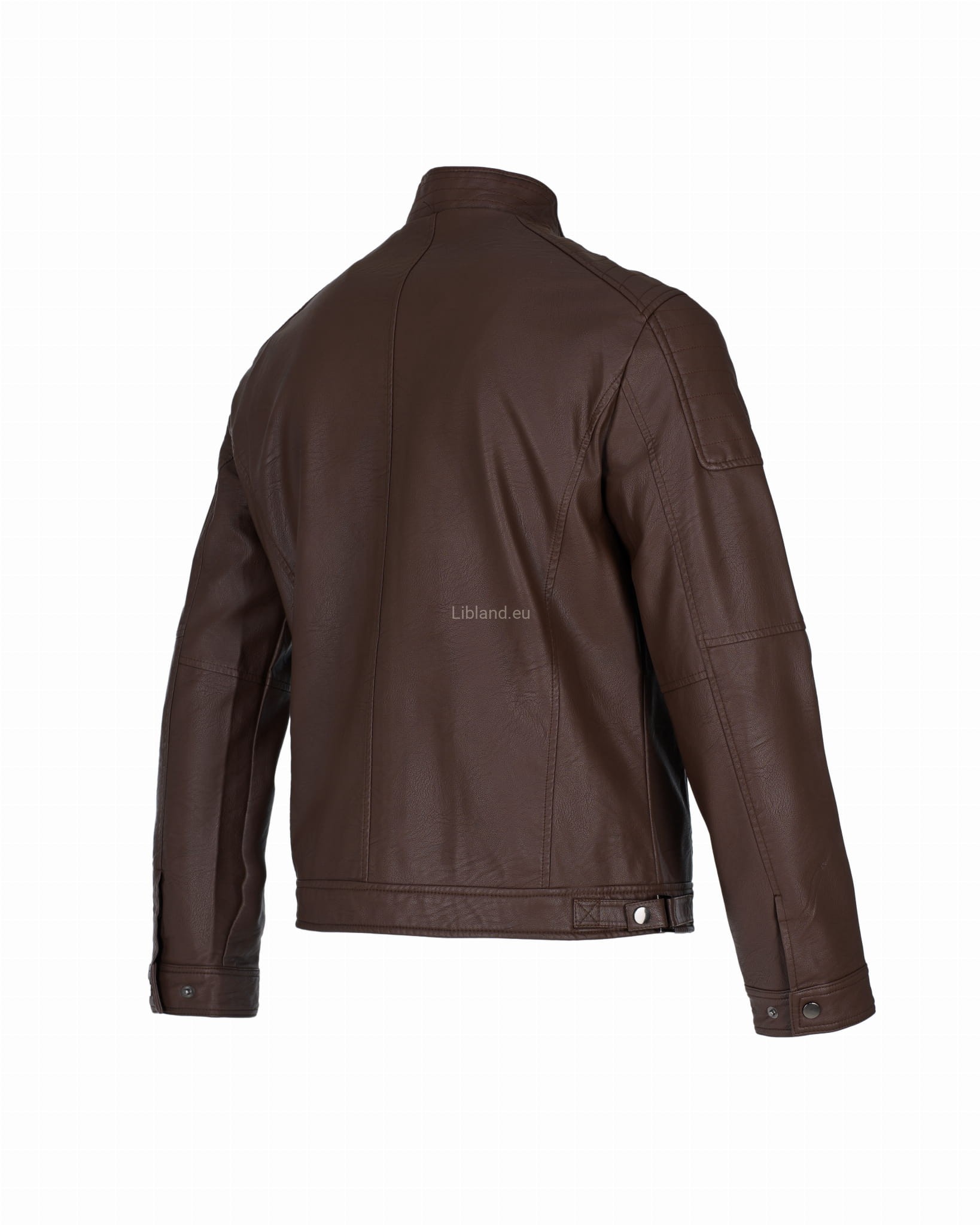 Męska kurtka z ekologicznej skóry ze stójką i pikowanymi ramionami: