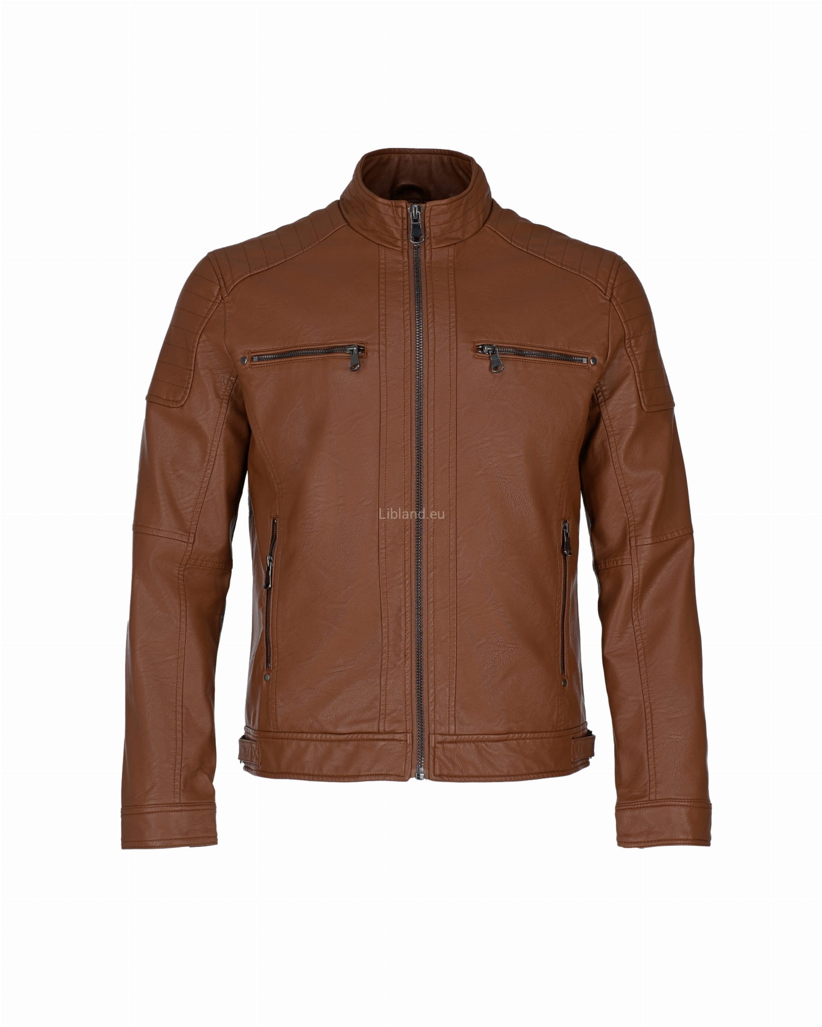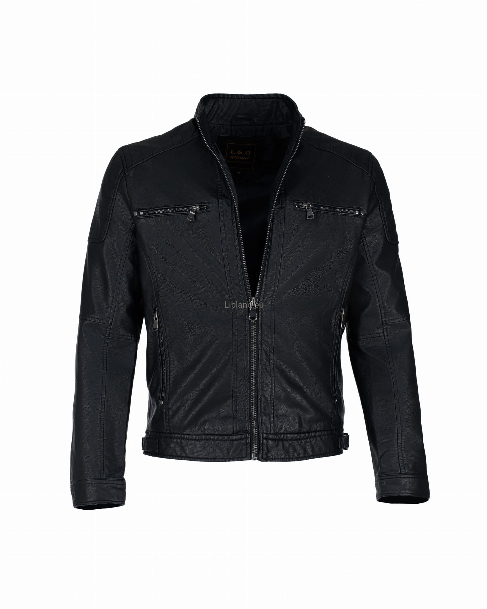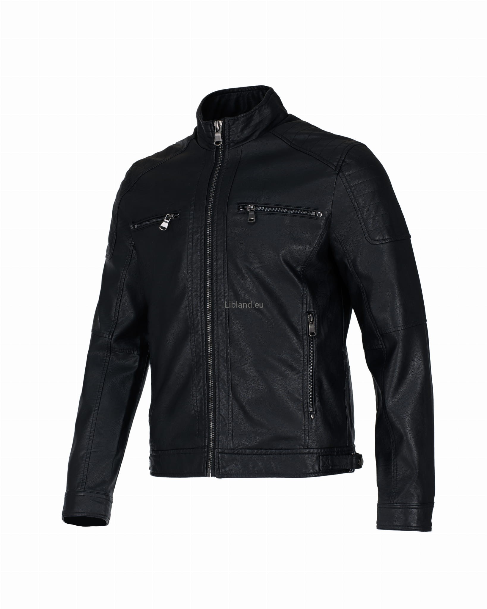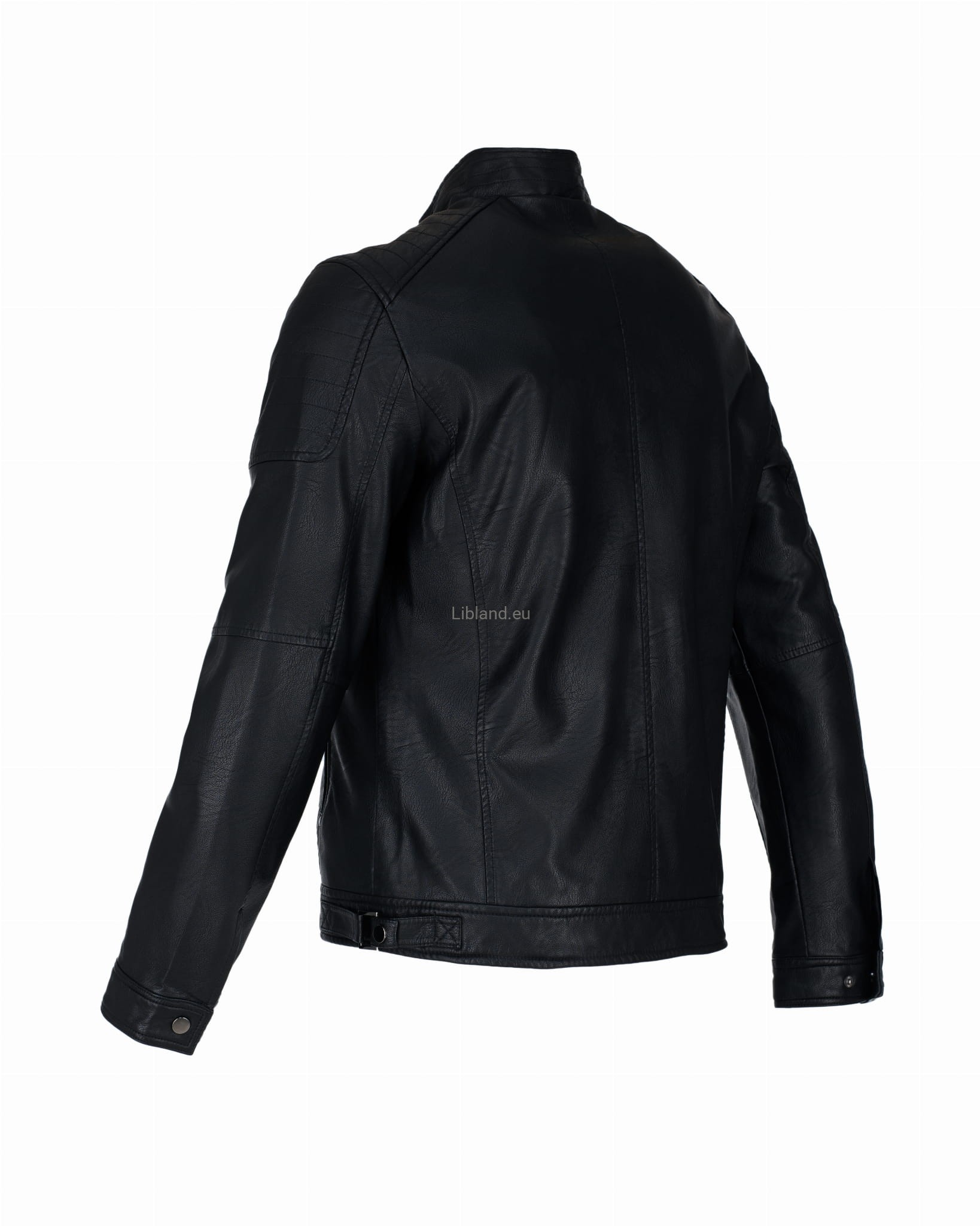 Męska kurtka z ekologicznej skóry ze stójką i pikowanymi ramionami: