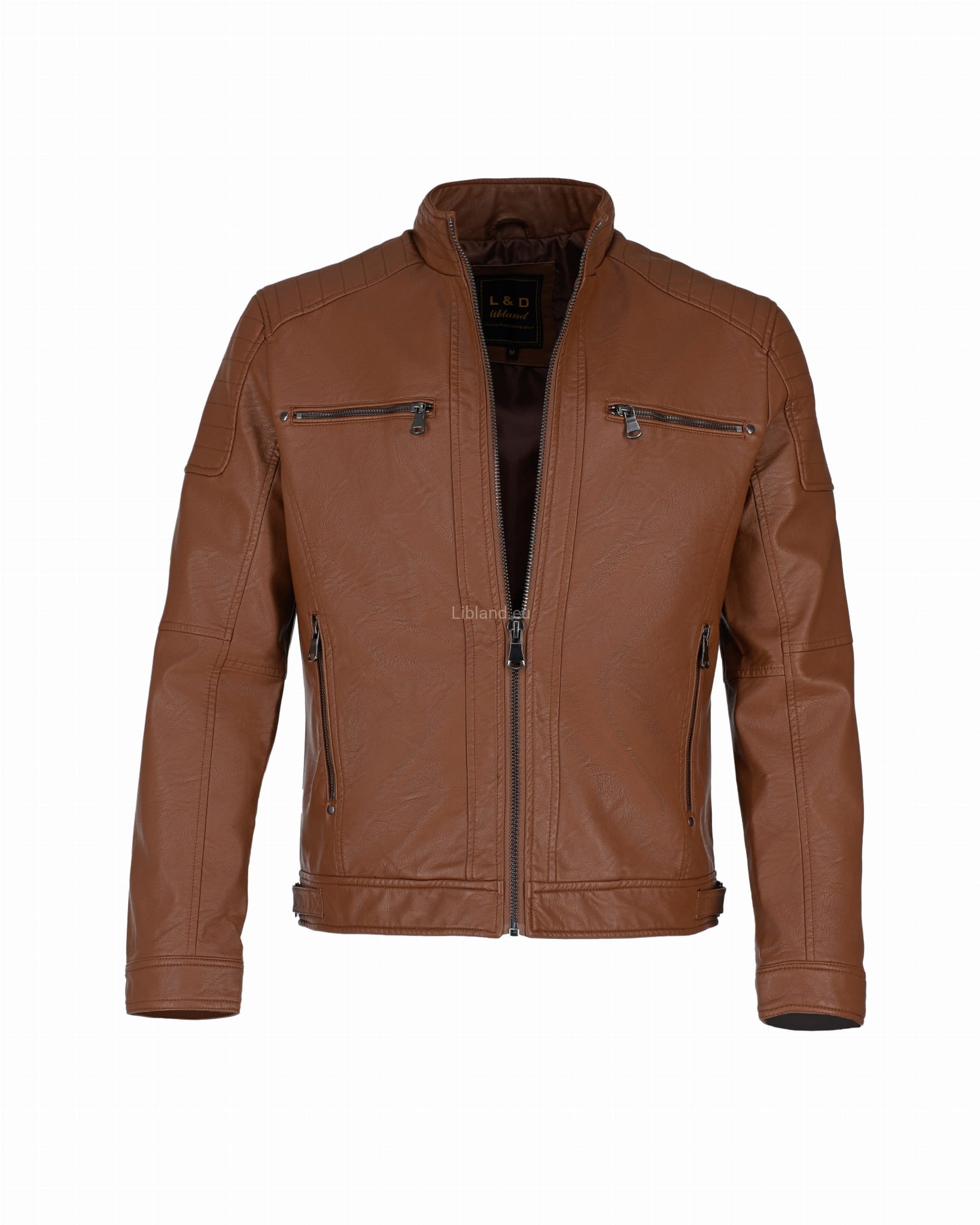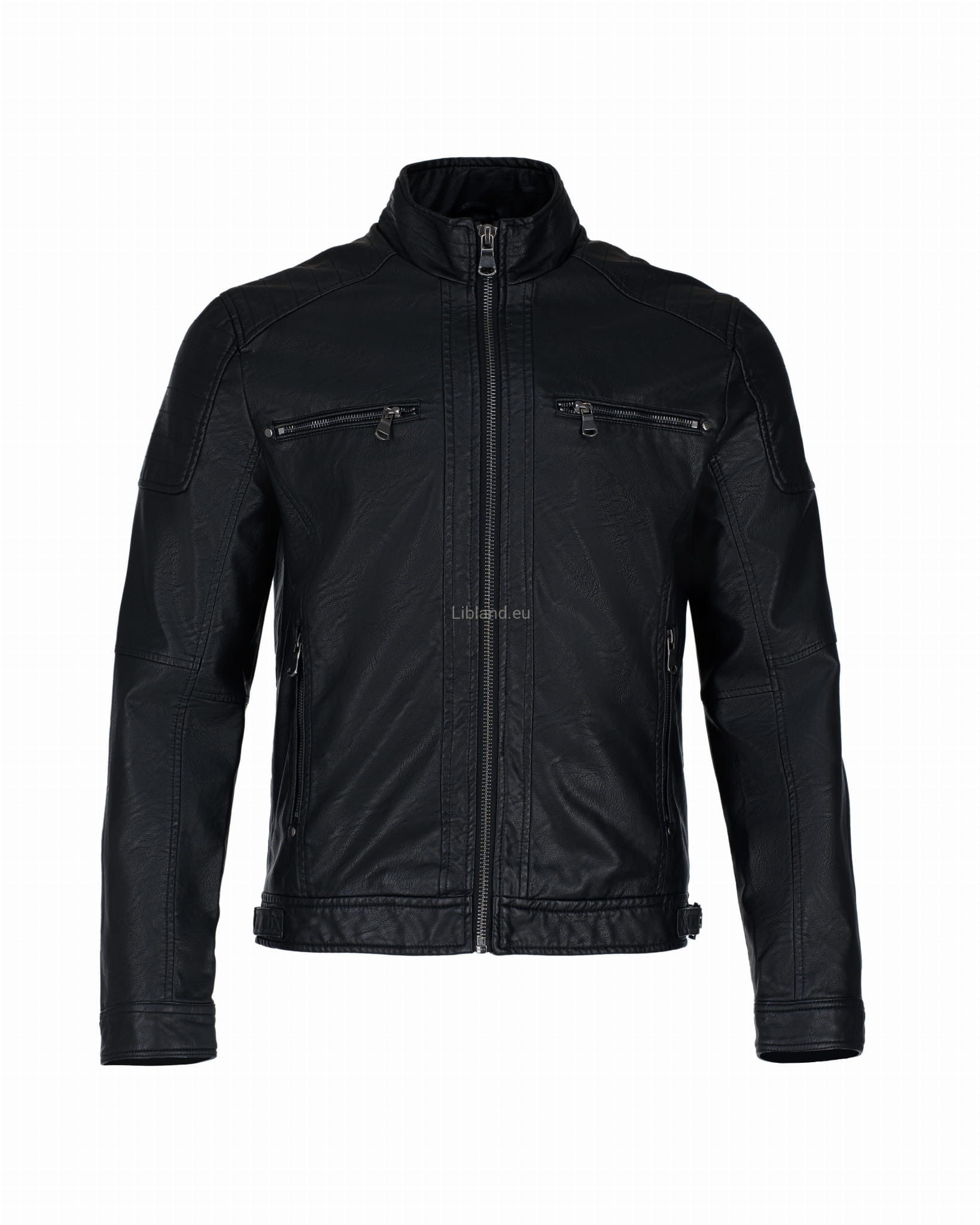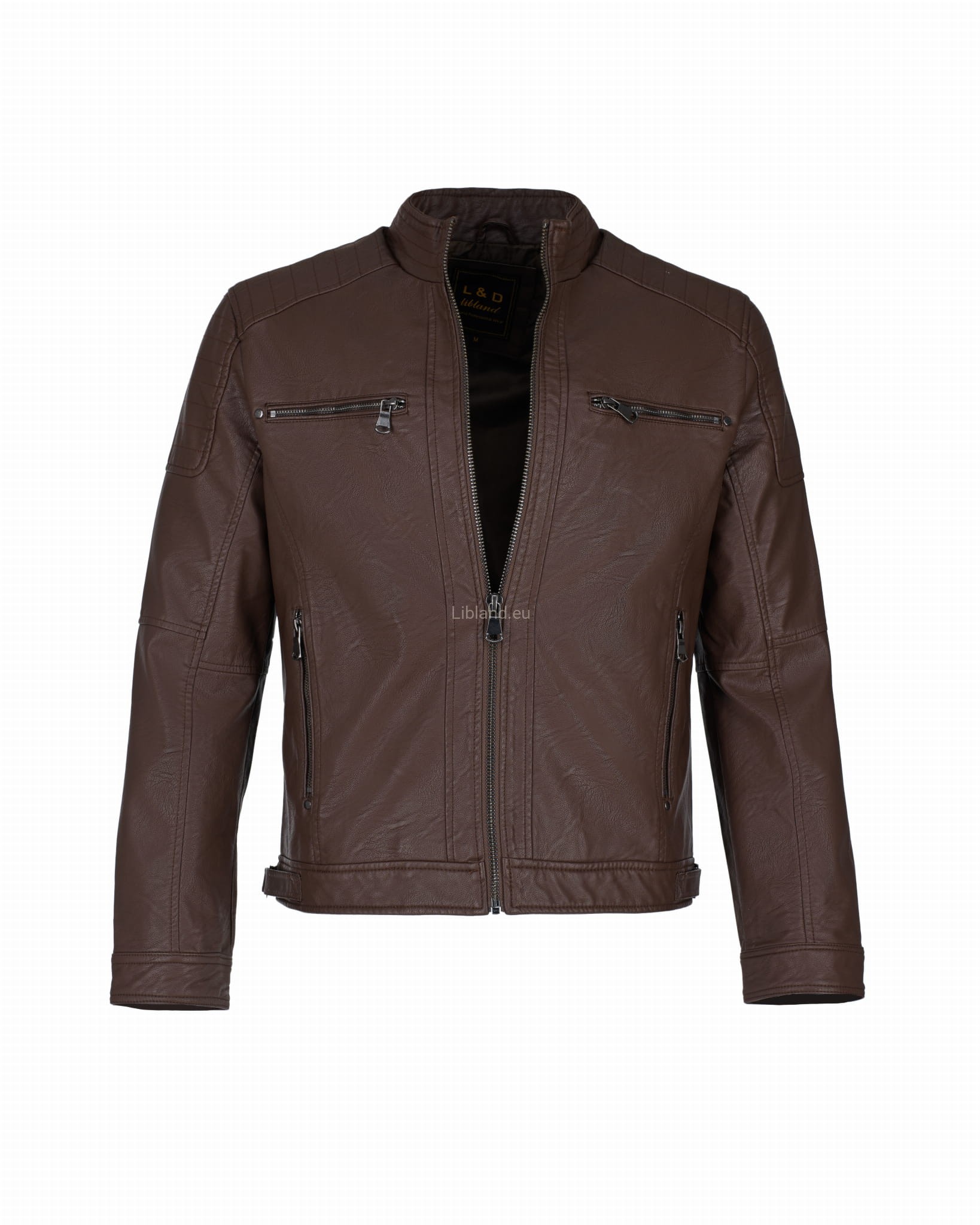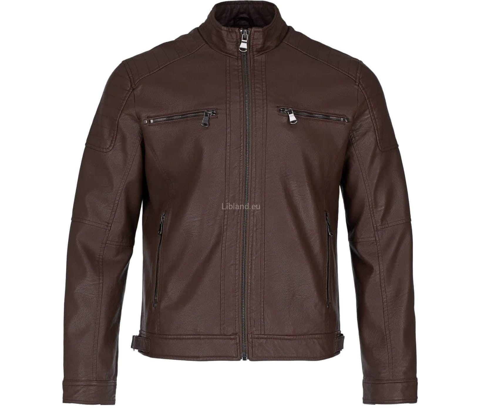 Męska kurtka z ekologicznej skóry ze stójką i pikowanymi ramionami:
