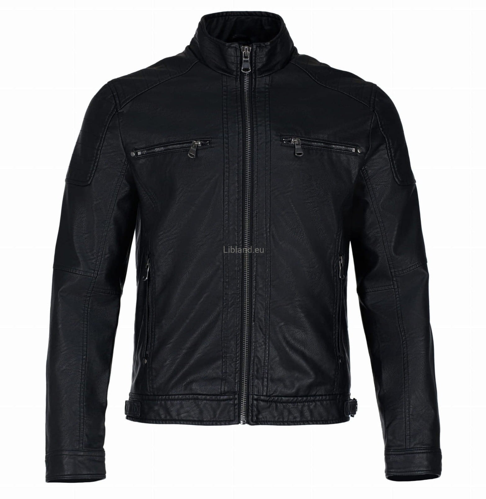 Męska kurtka z ekologicznej skóry ze stójką i pikowanymi ramionami.