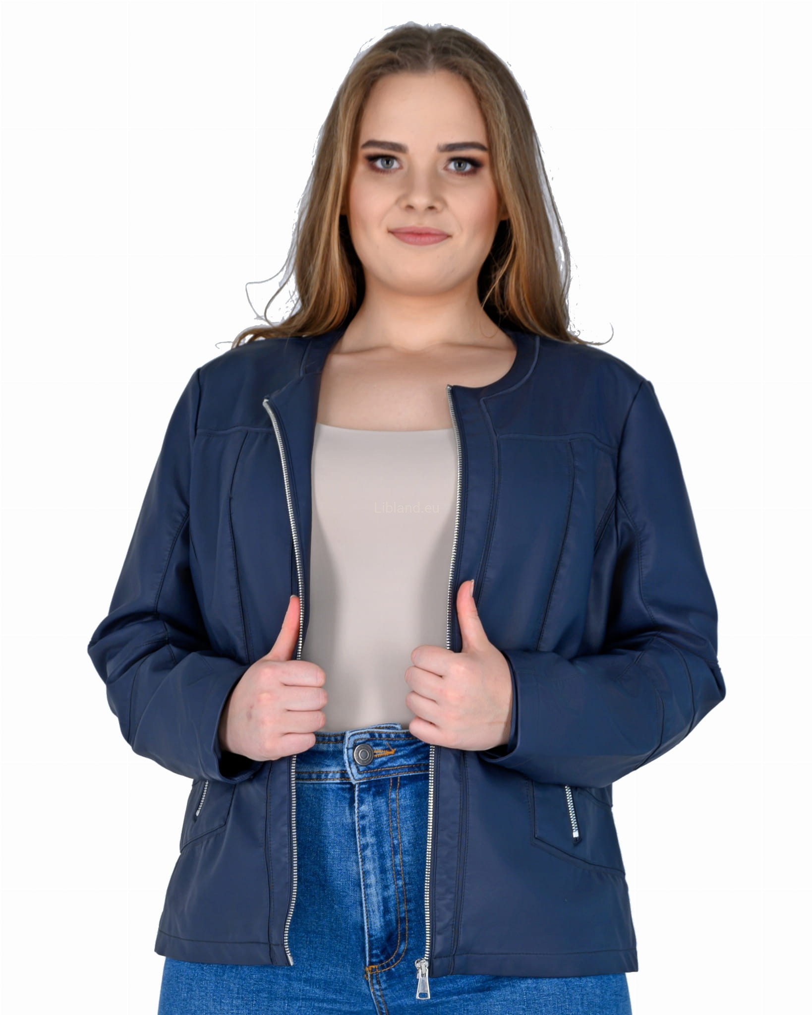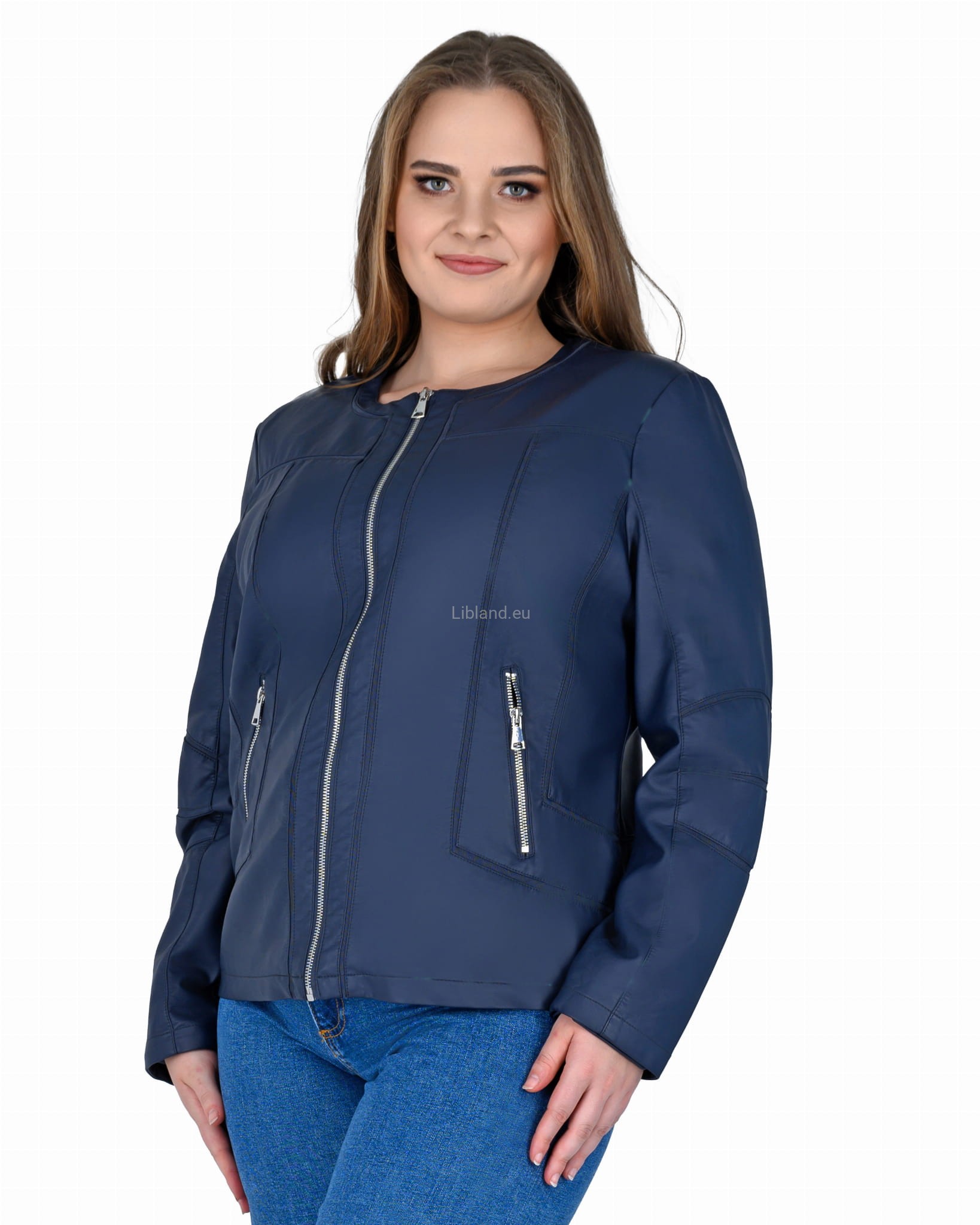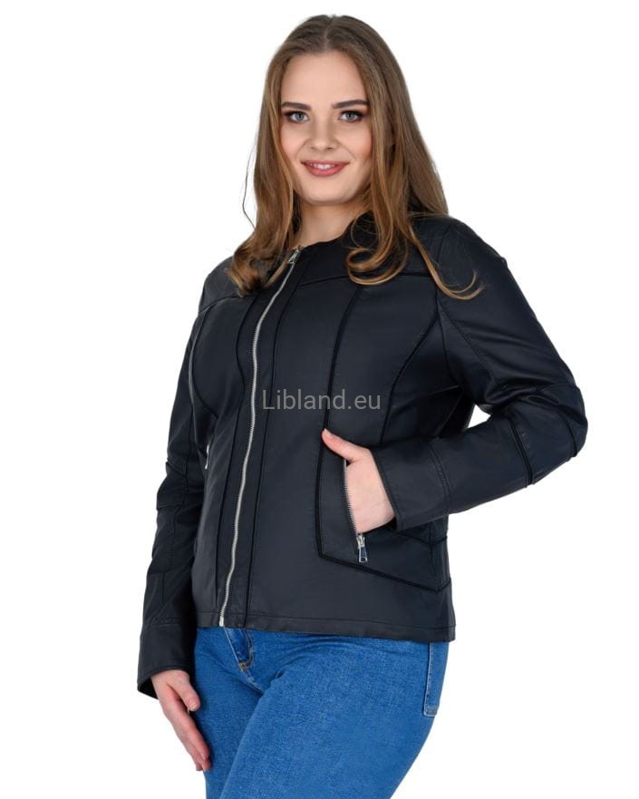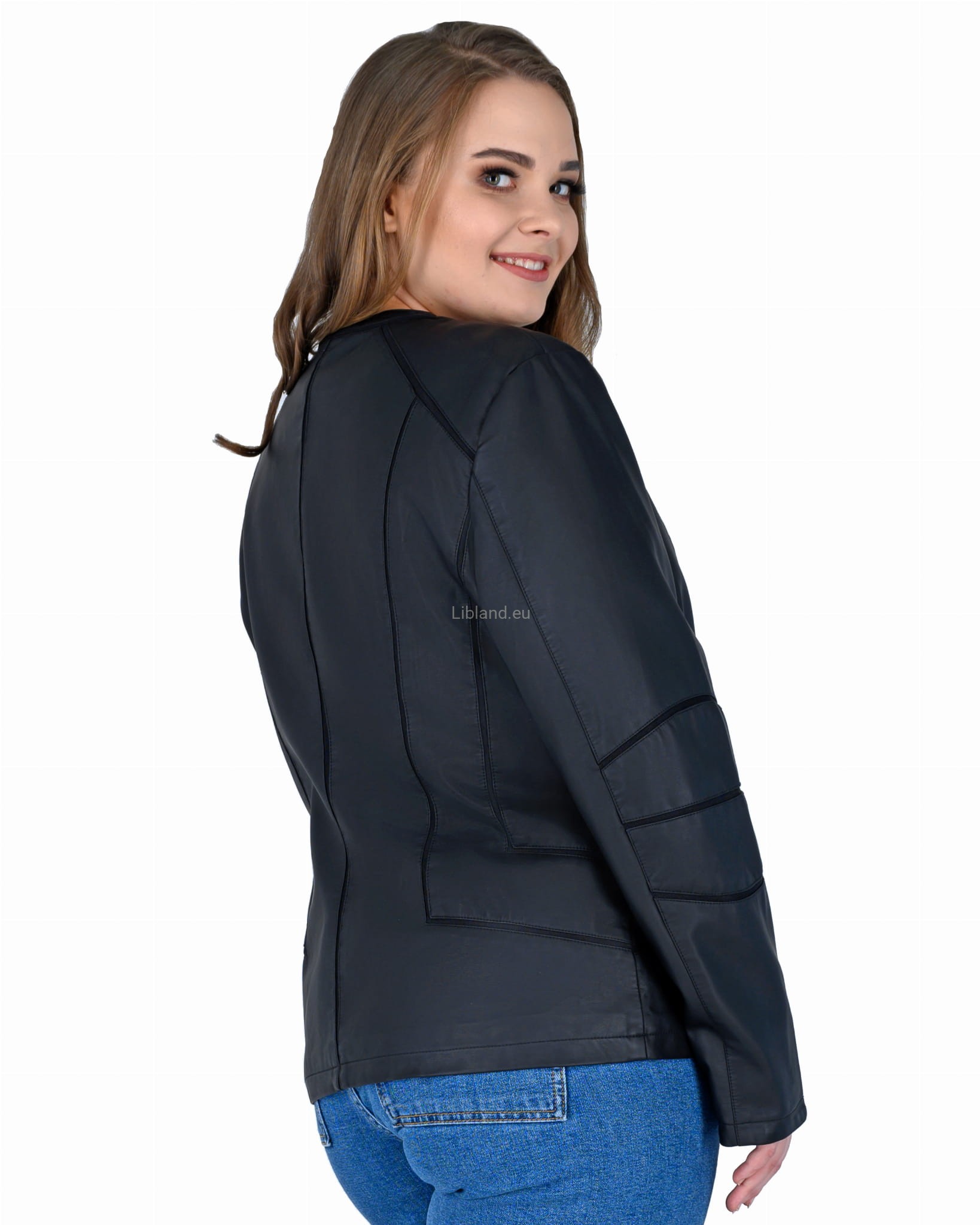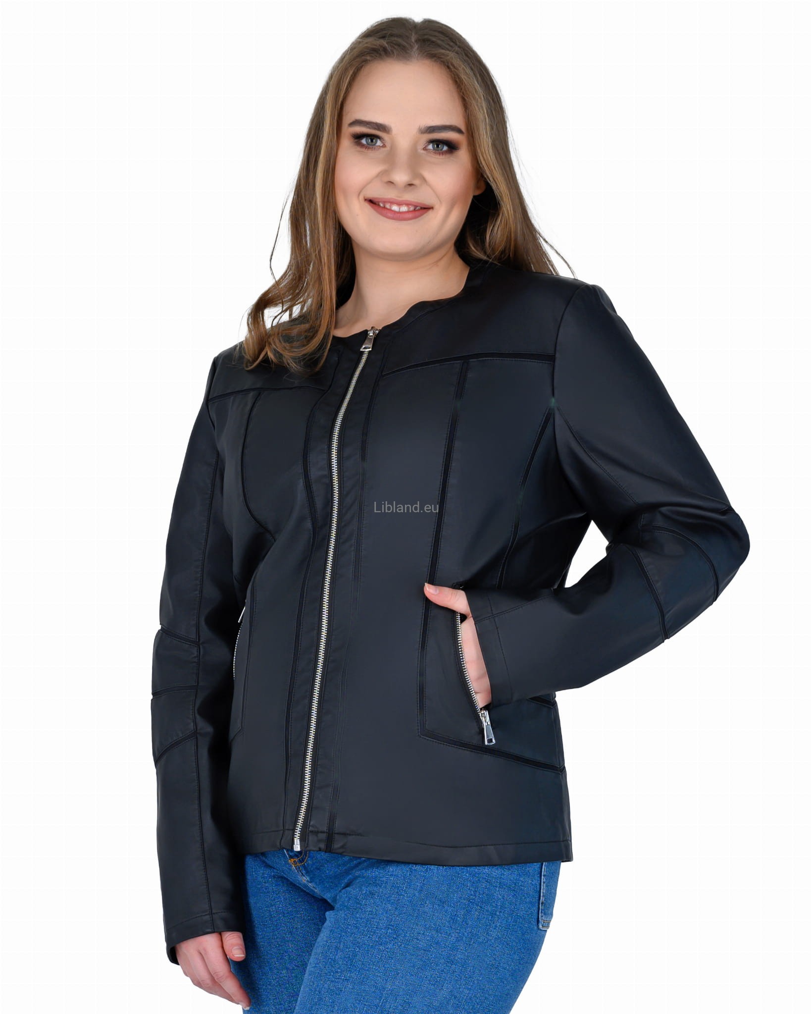 Kurtka z ekologicznej skóry ze wstawkami z siatki i metalowymi suwakami.