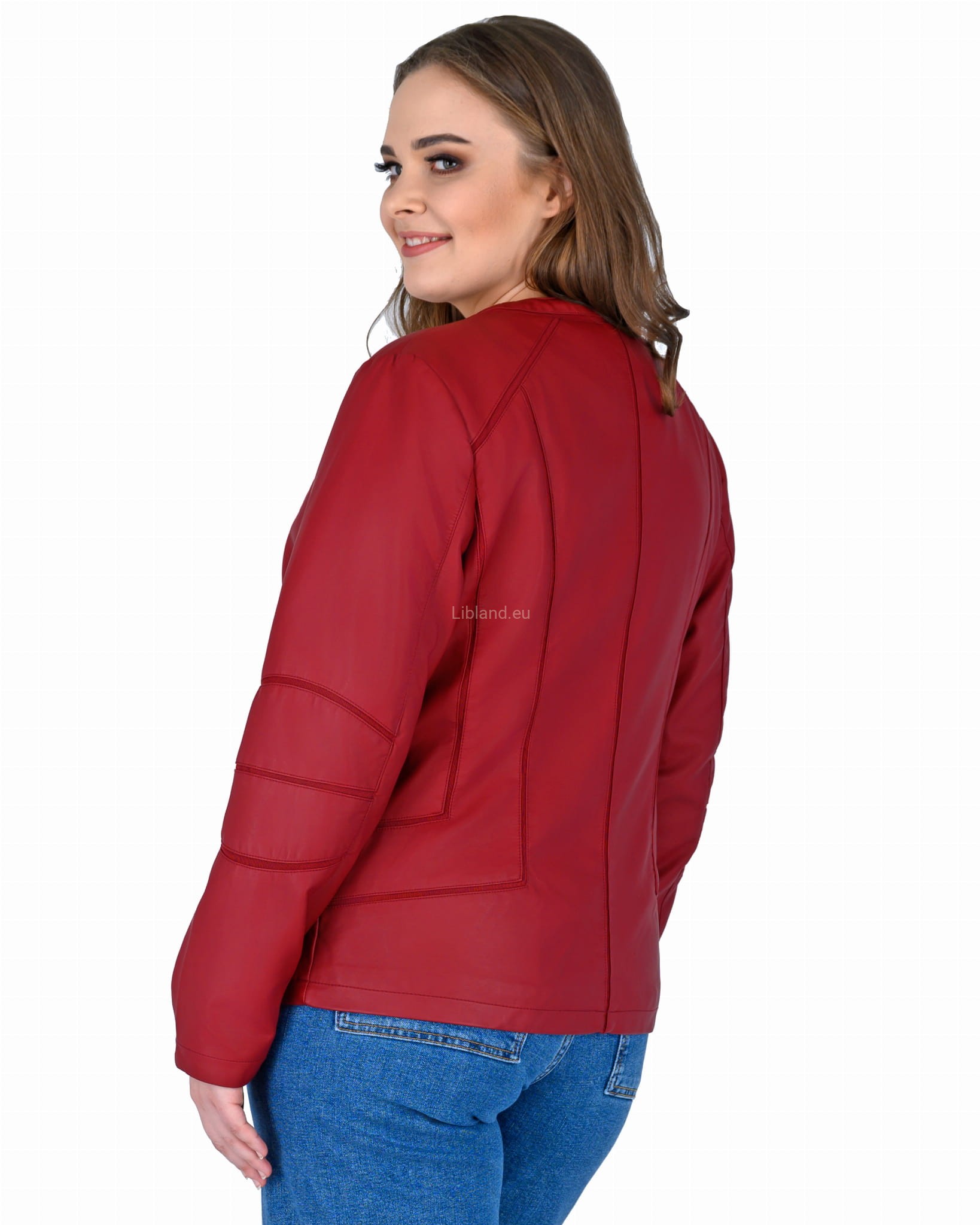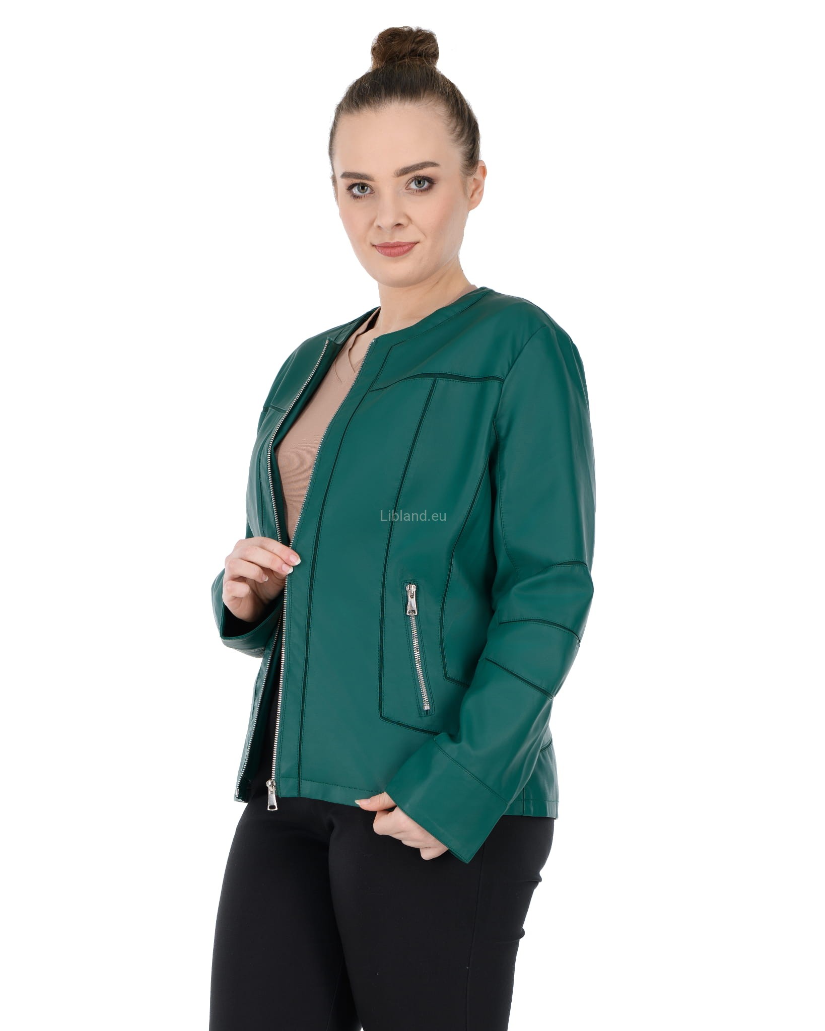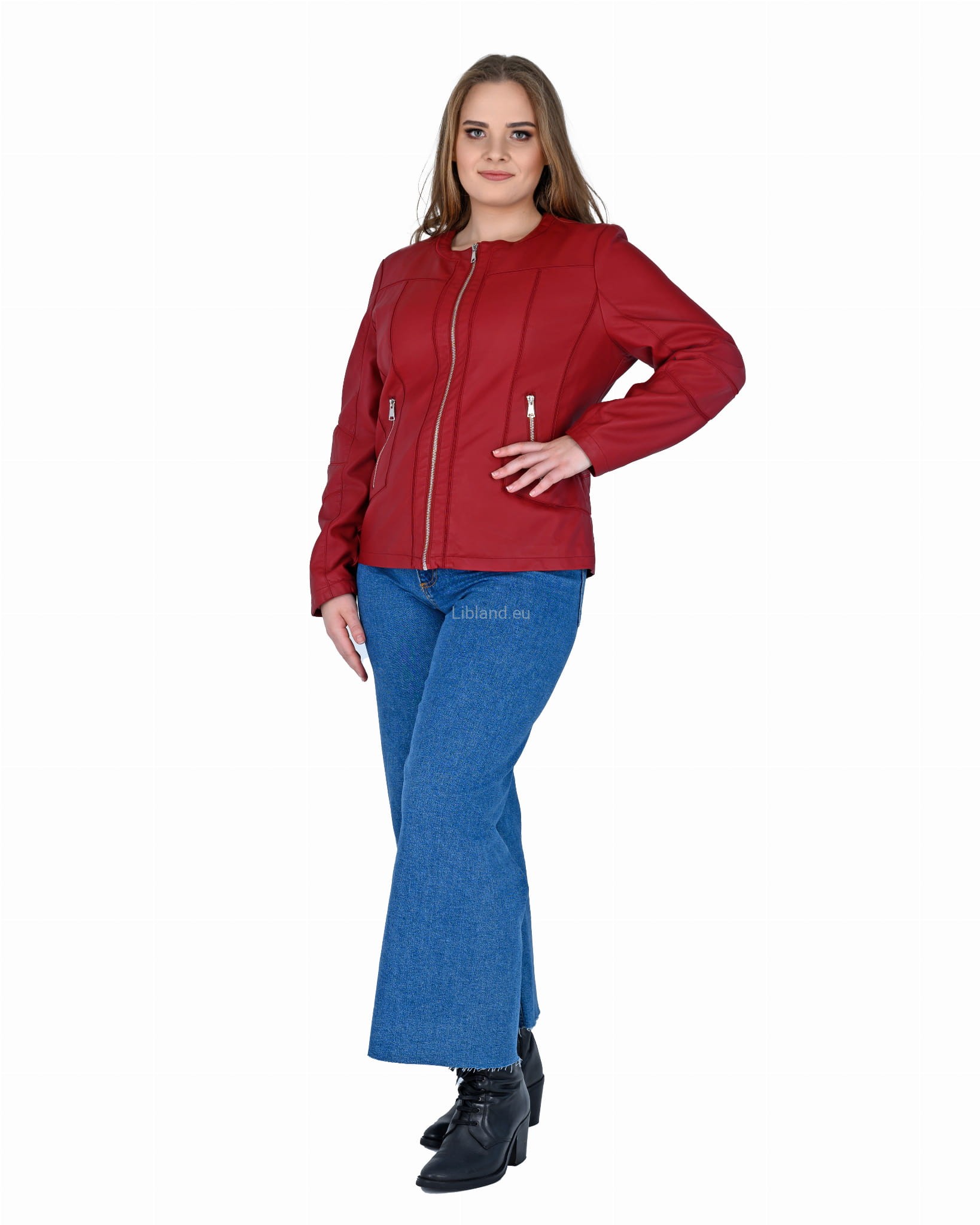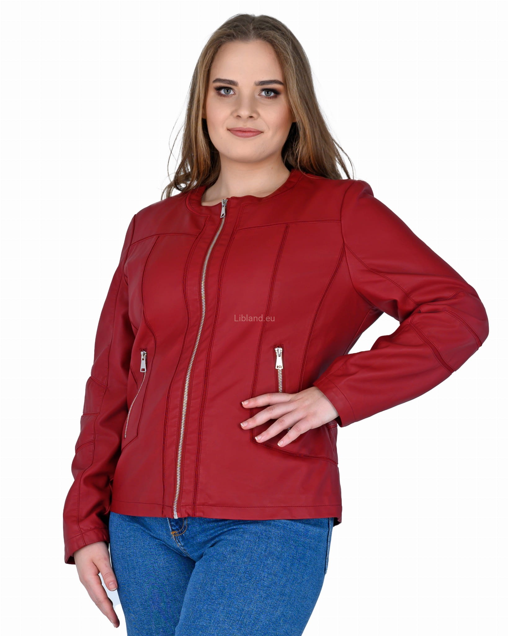 Kurtka z ekologicznej skóry ze wstawkami z siatki i metalowymi suwakami.
