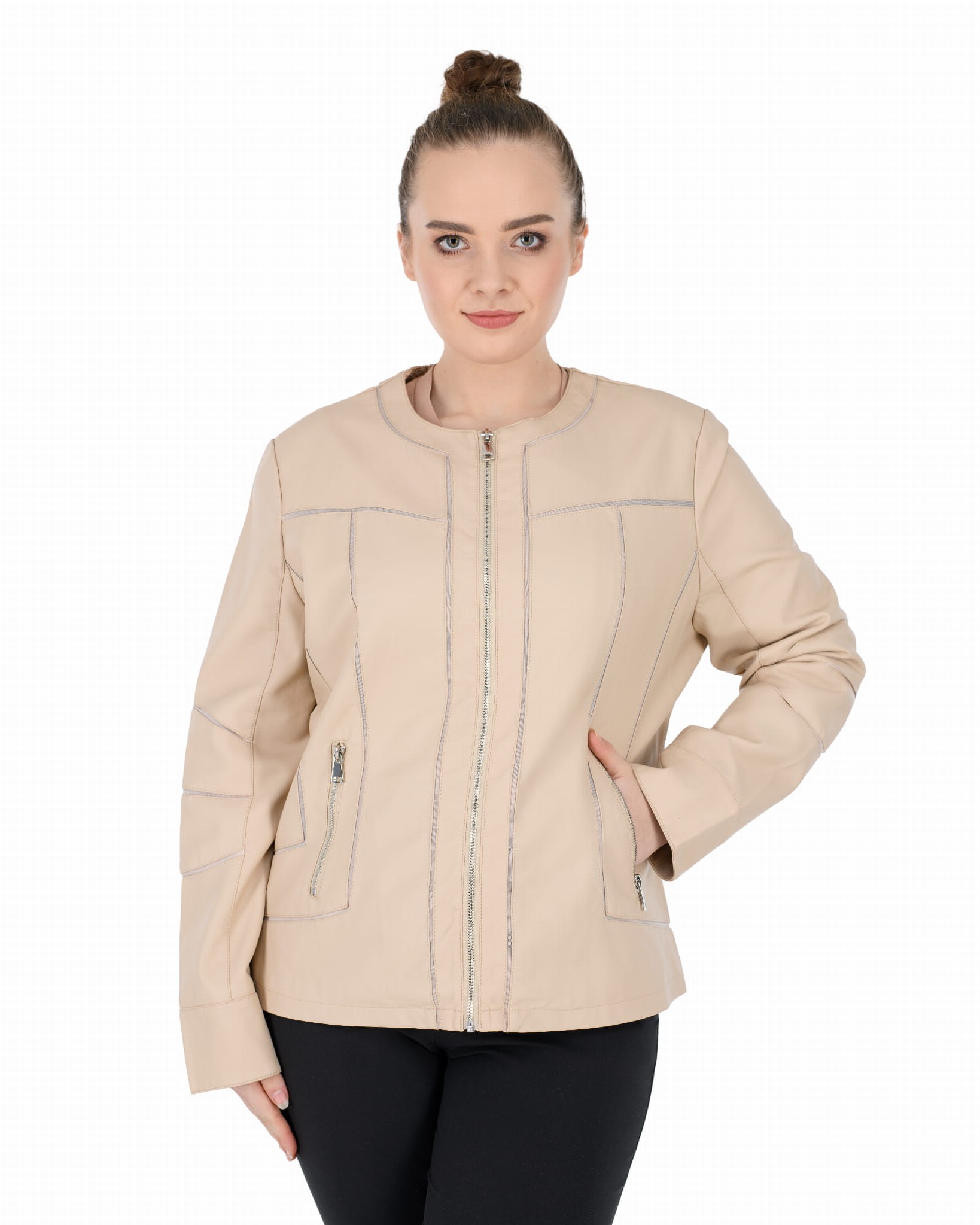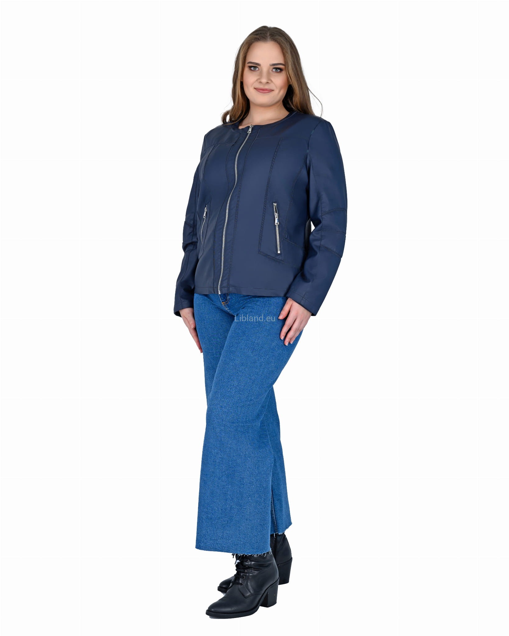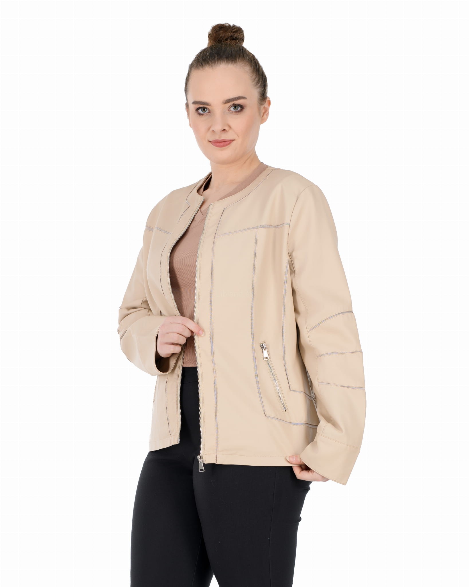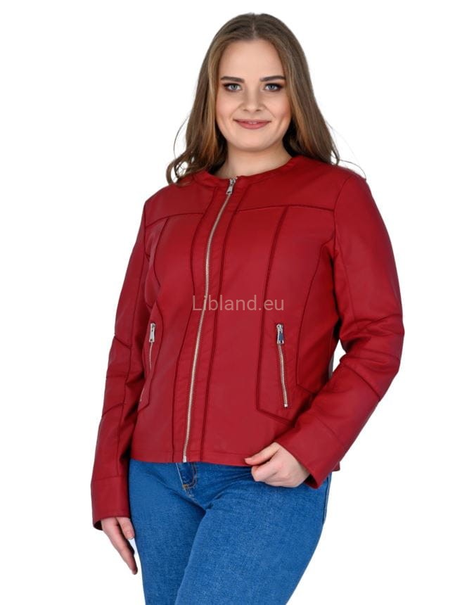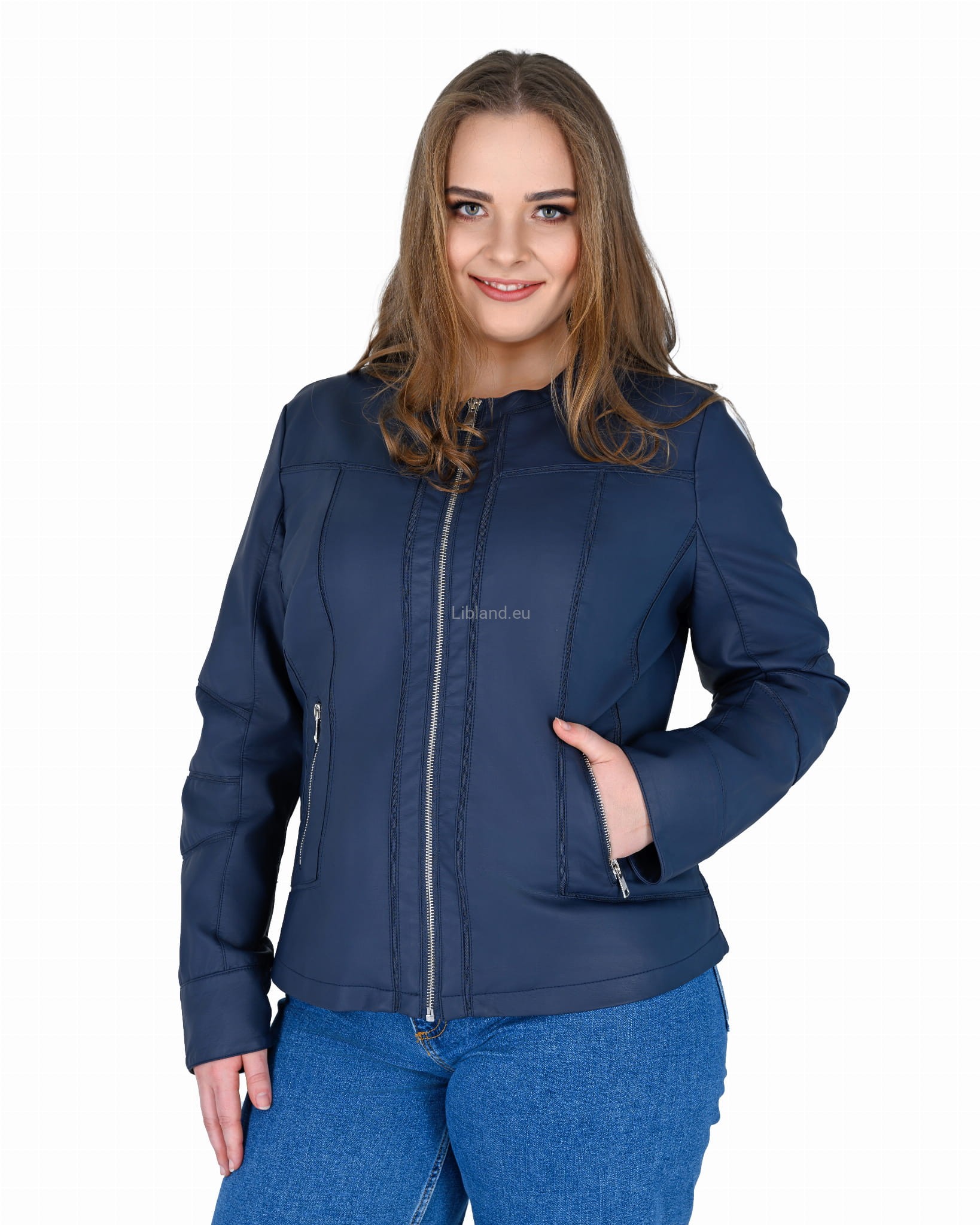 Kurtka z ekologicznej skóry ze wstawkami z siatki i metalowymi suwakami.