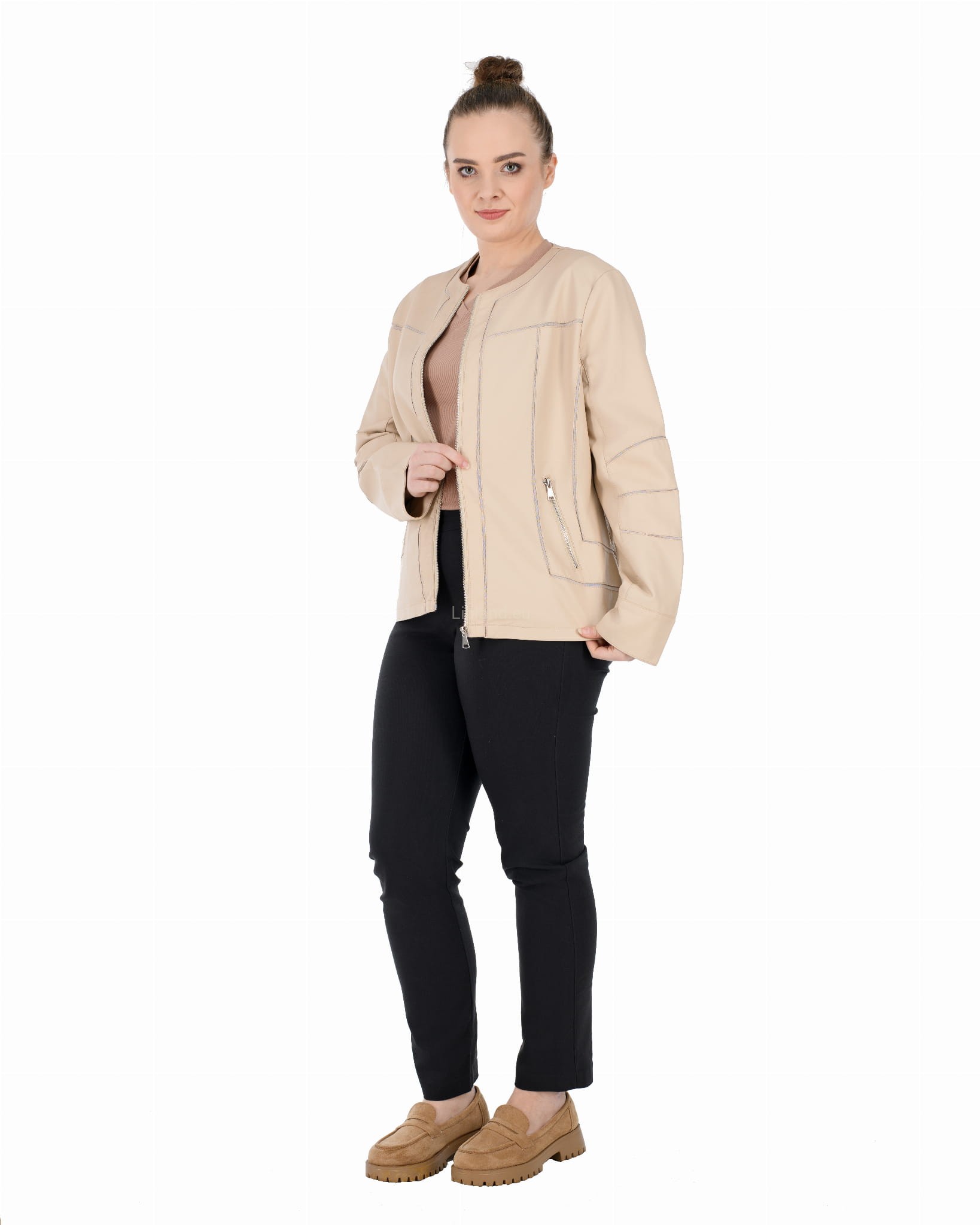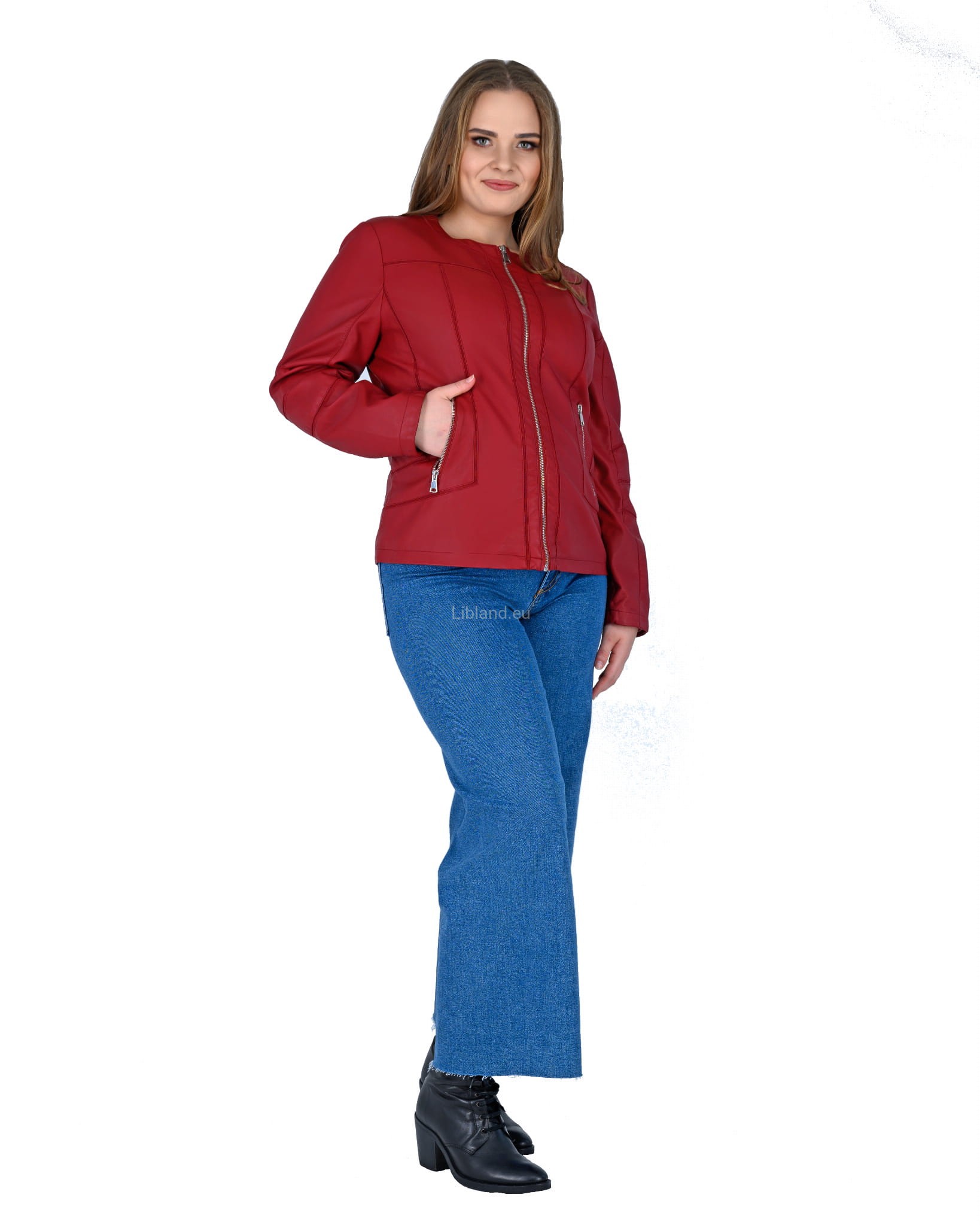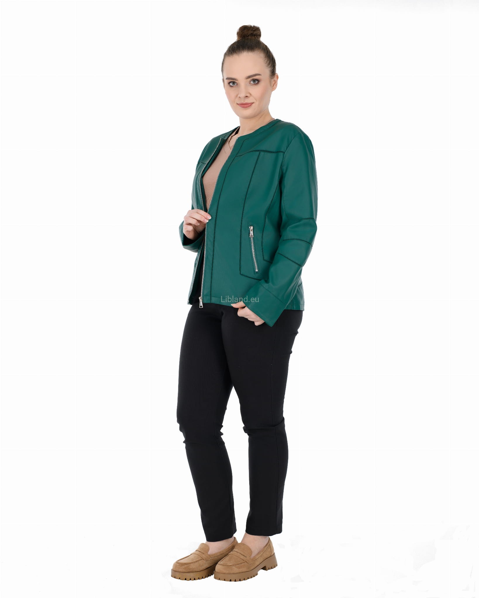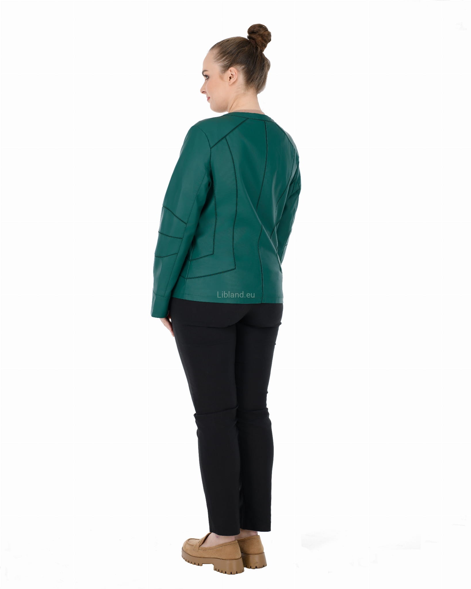 Kurtka z ekologicznej skóry ze wstawkami z siatki i metalowymi suwakami.