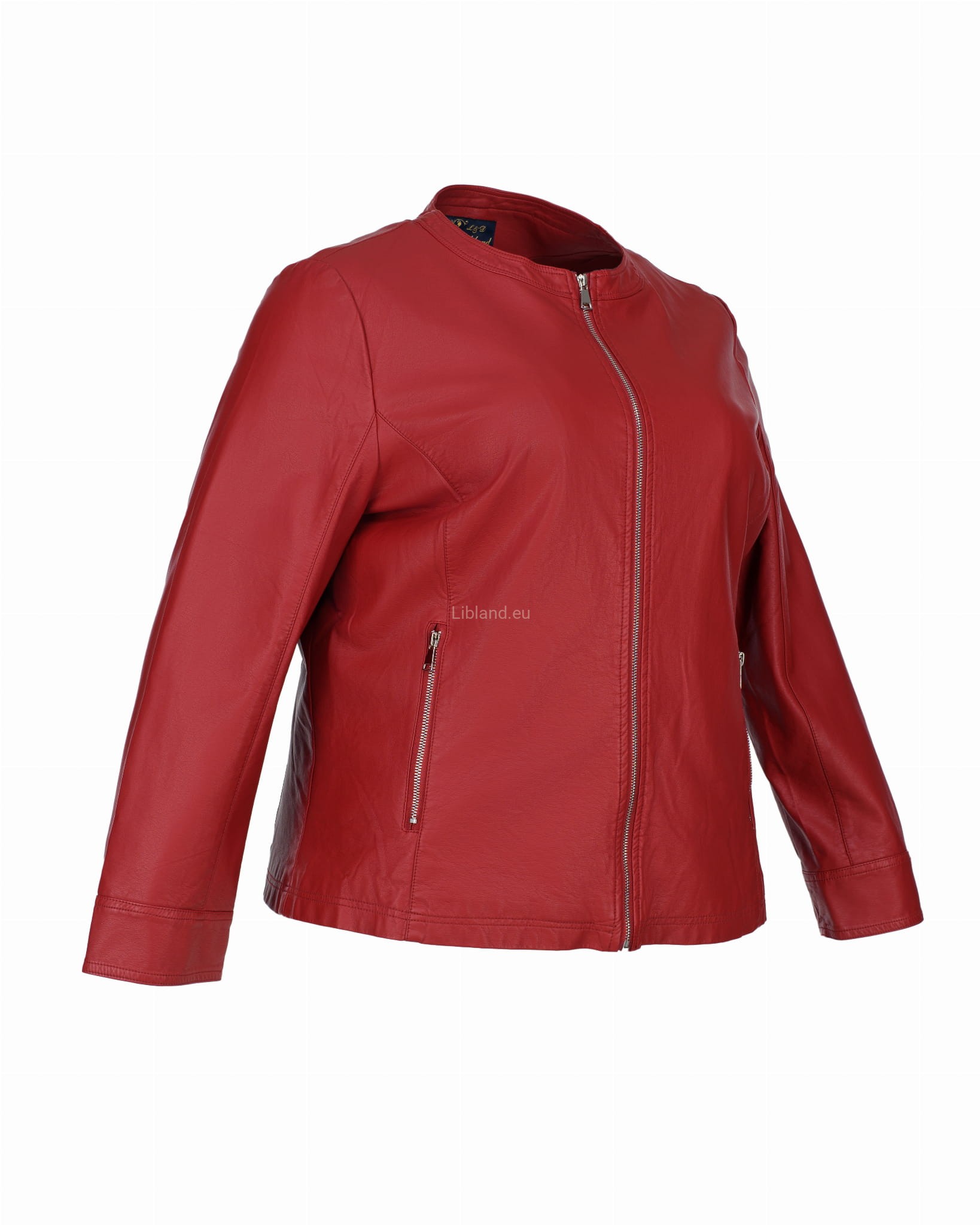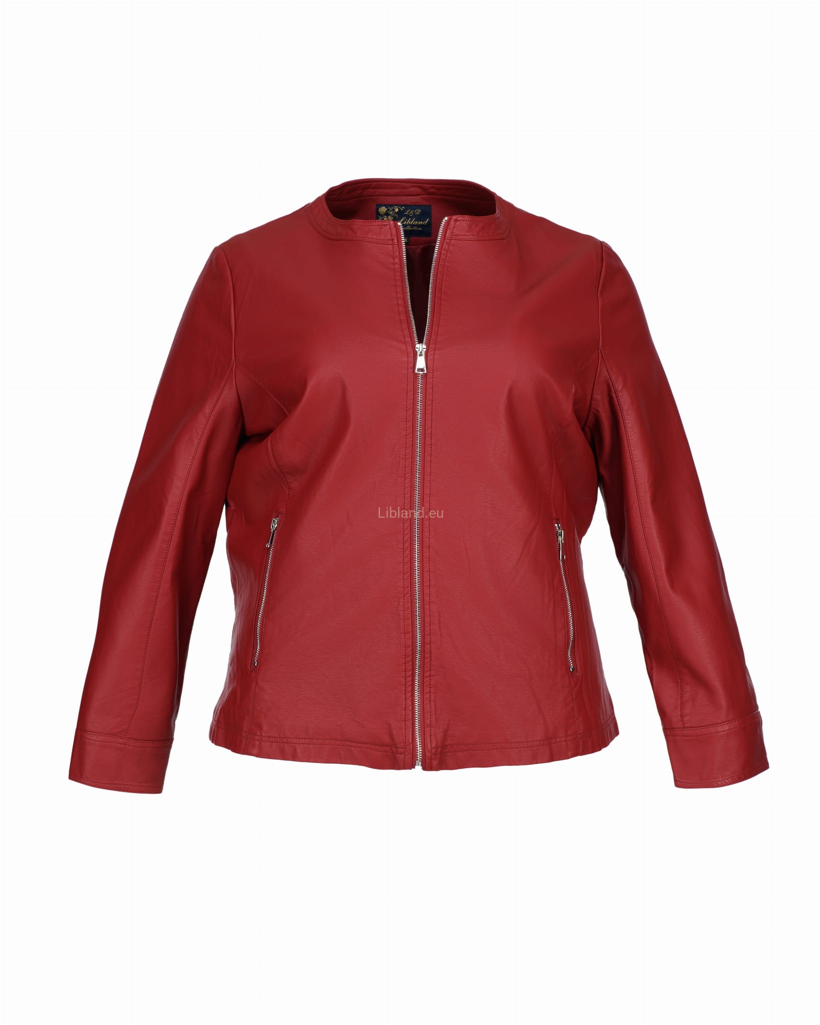 Kurtka z ekologicznej skóry z szerokimi skośnymi wstawkami z siatki i metalowymi suwakami.