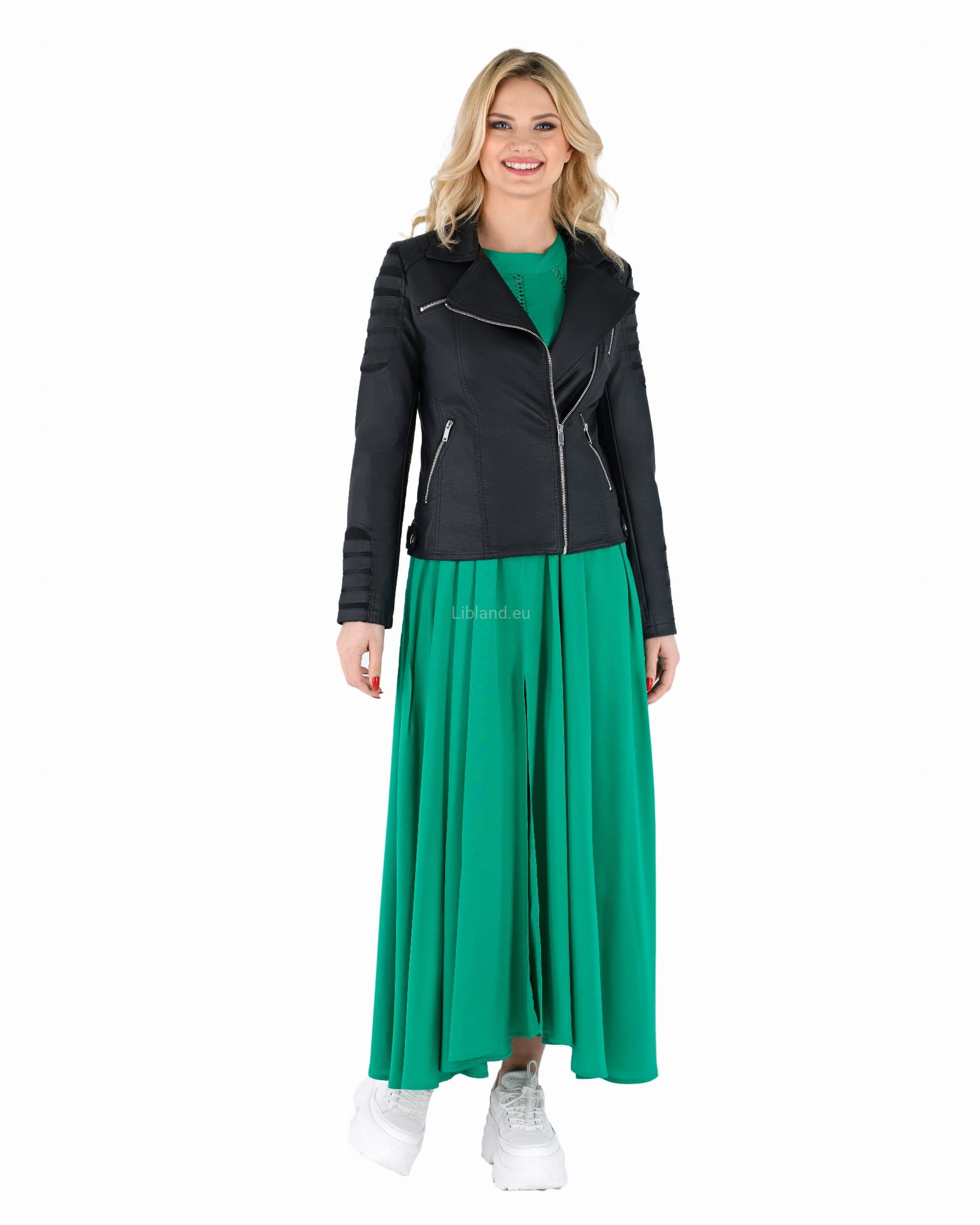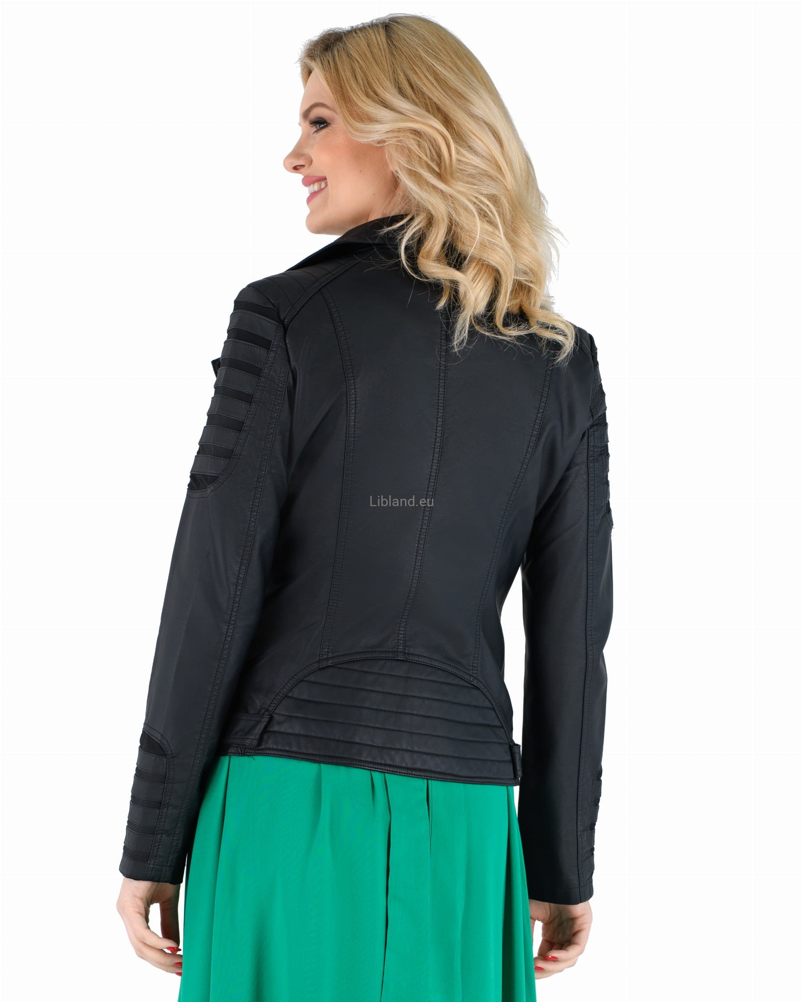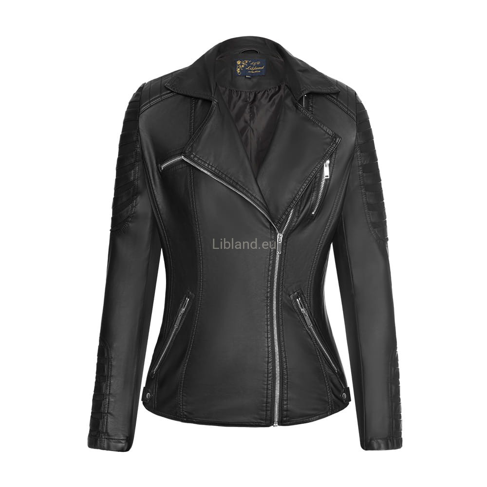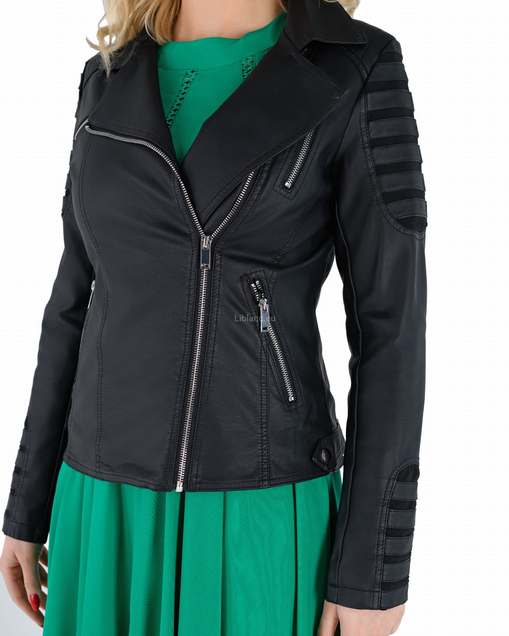 Kurtka z miękkiej skóry ekologicznej ze wstawkami i metalowymi suwakami: