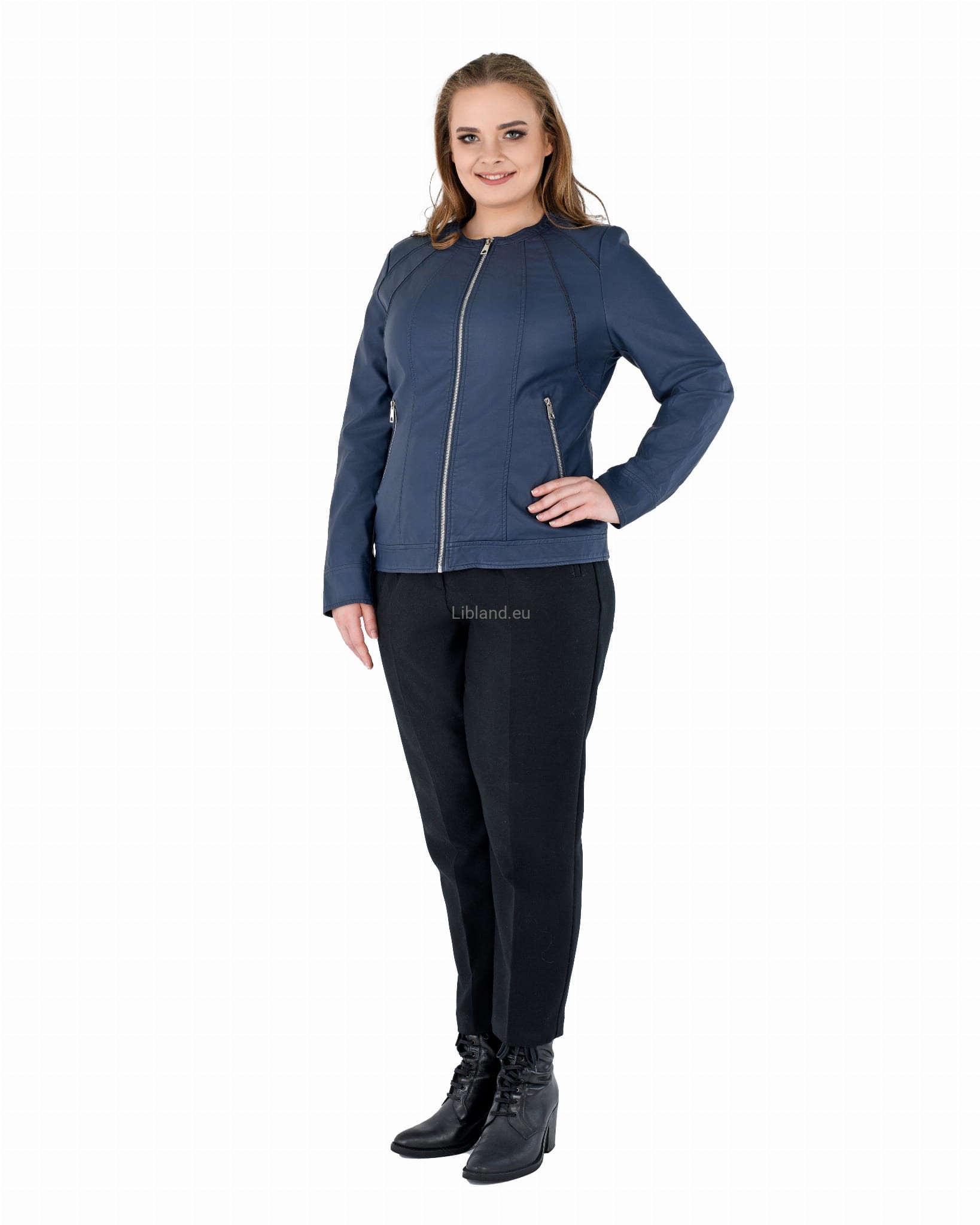 Kurtka z ekologicznej skóry zasuwana na suwak i z okrągłym wykończeniem pod szyją: