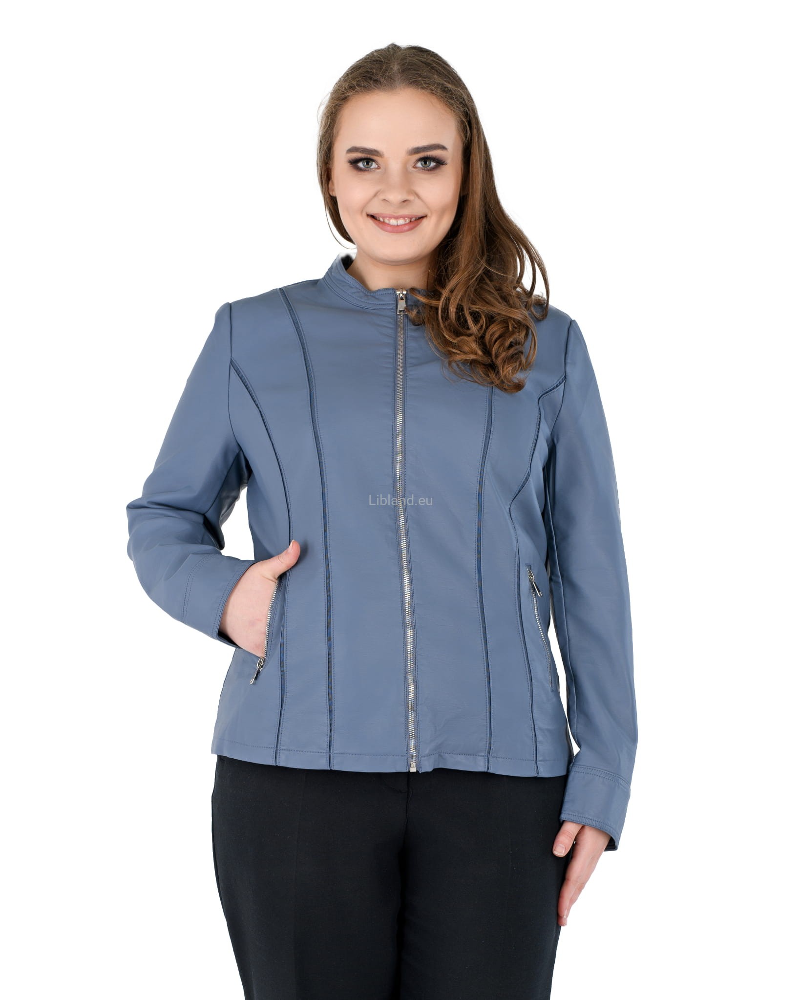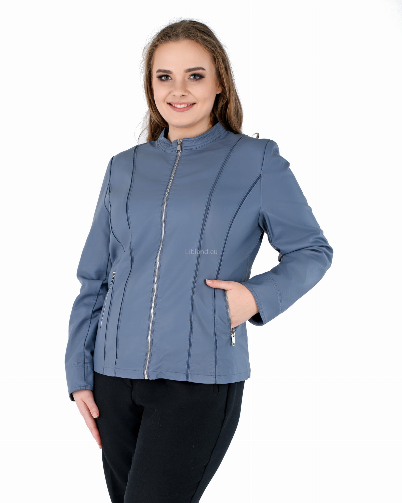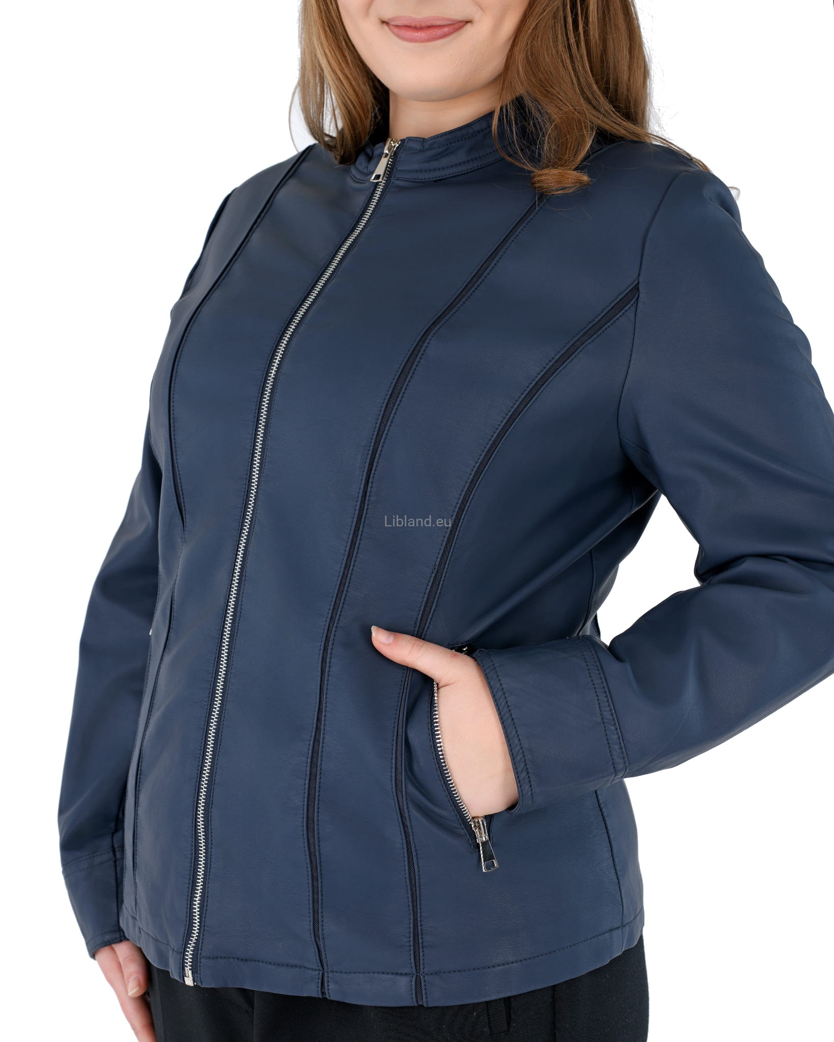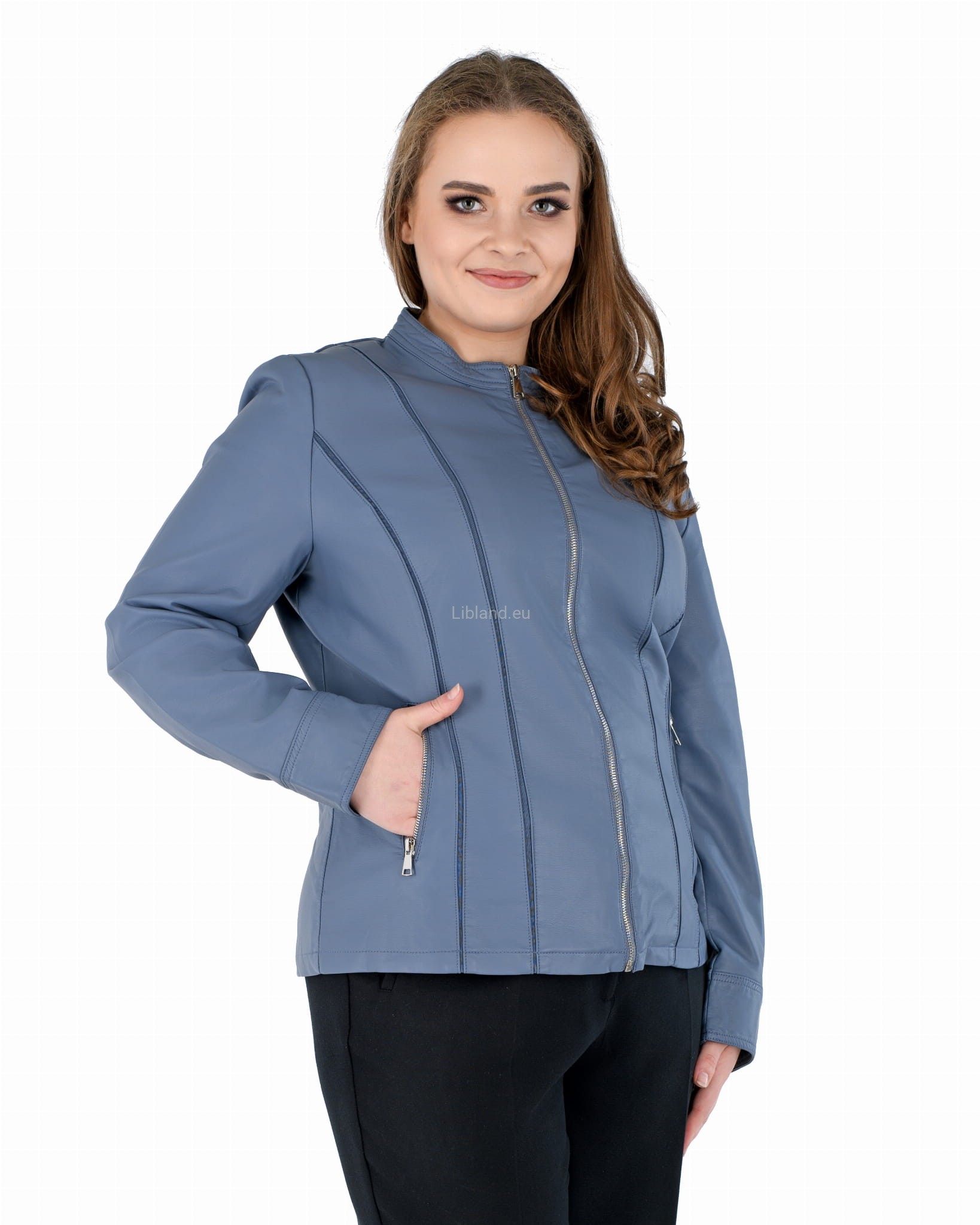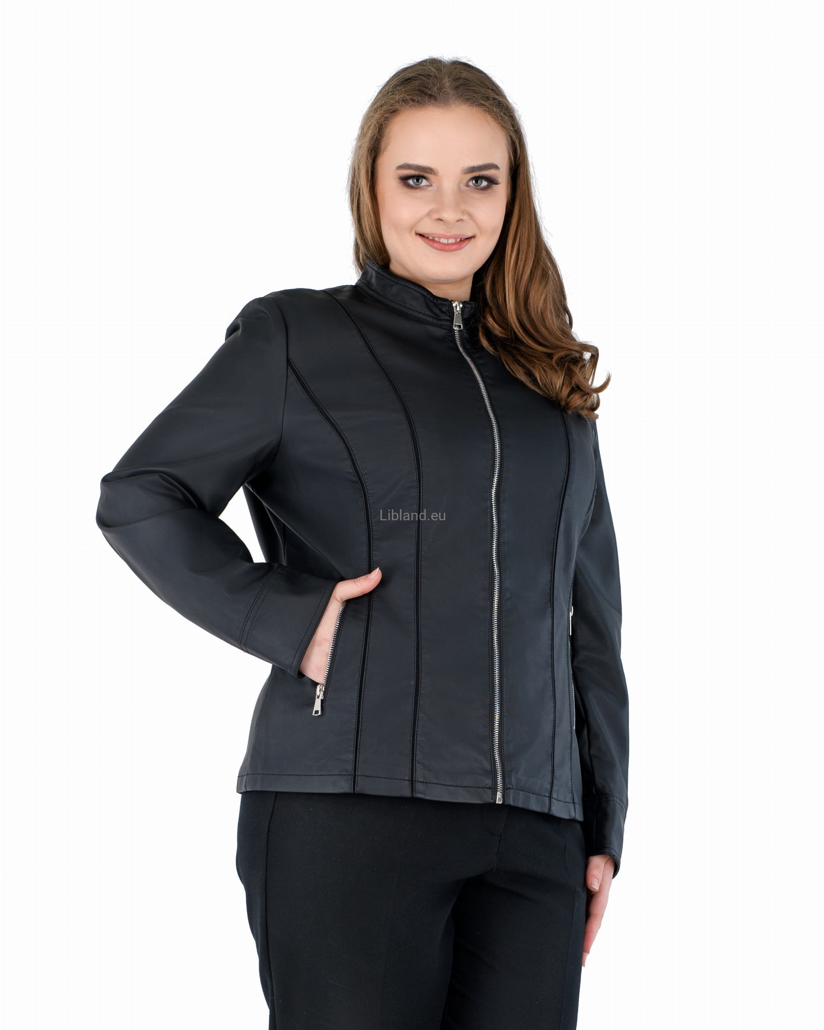 Kurtka z ekologicznej skóry zasuwana na suwak, ze stójką i pionowymi wstawkami z siateczki.
