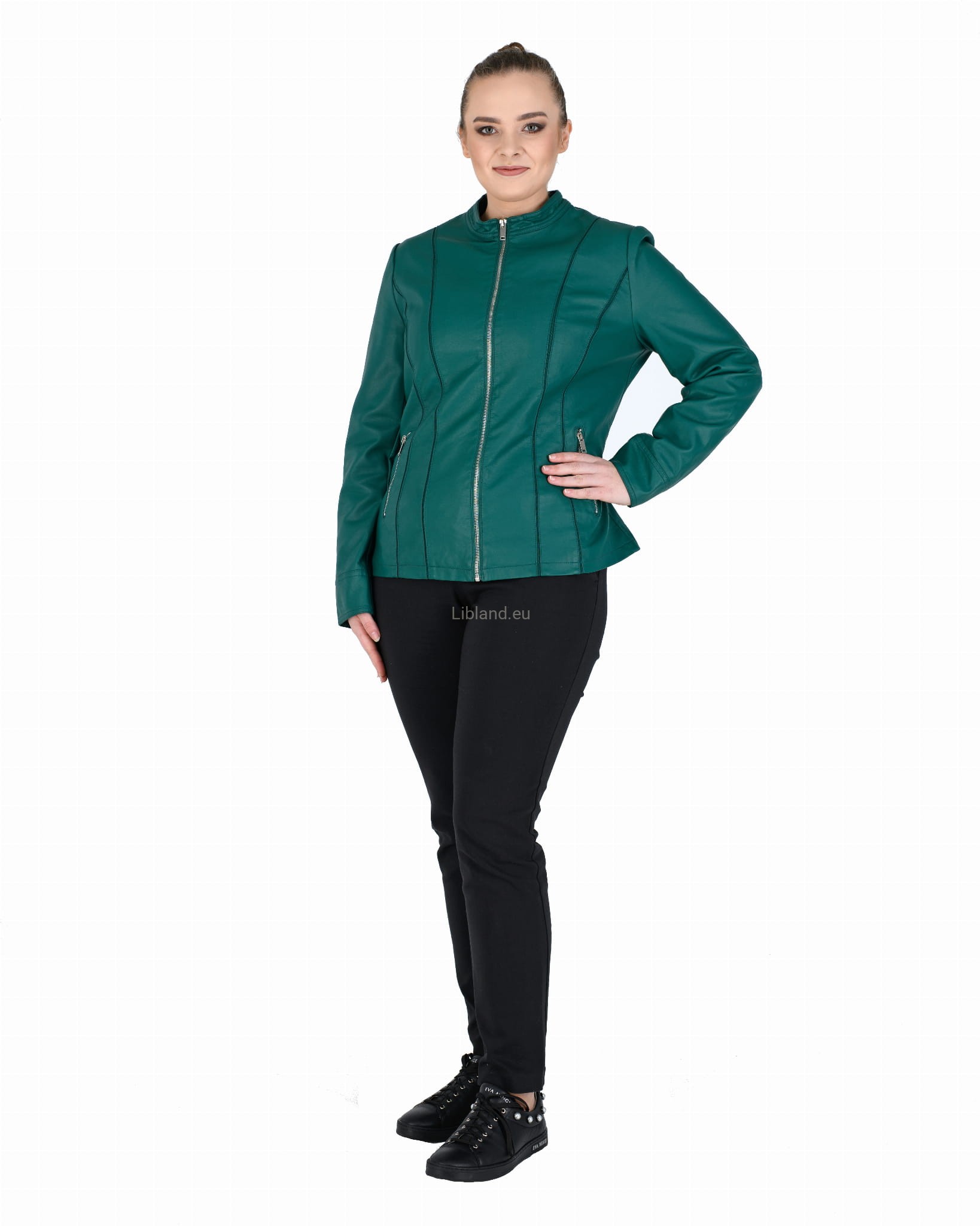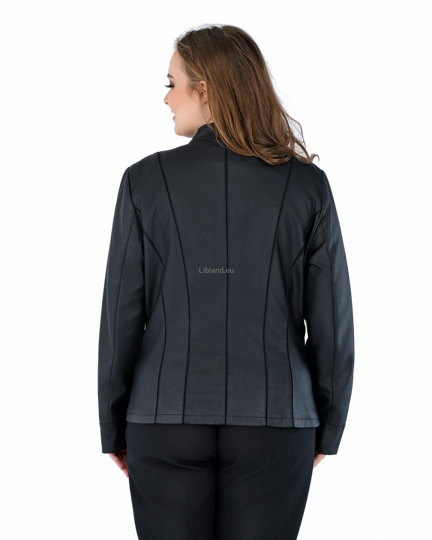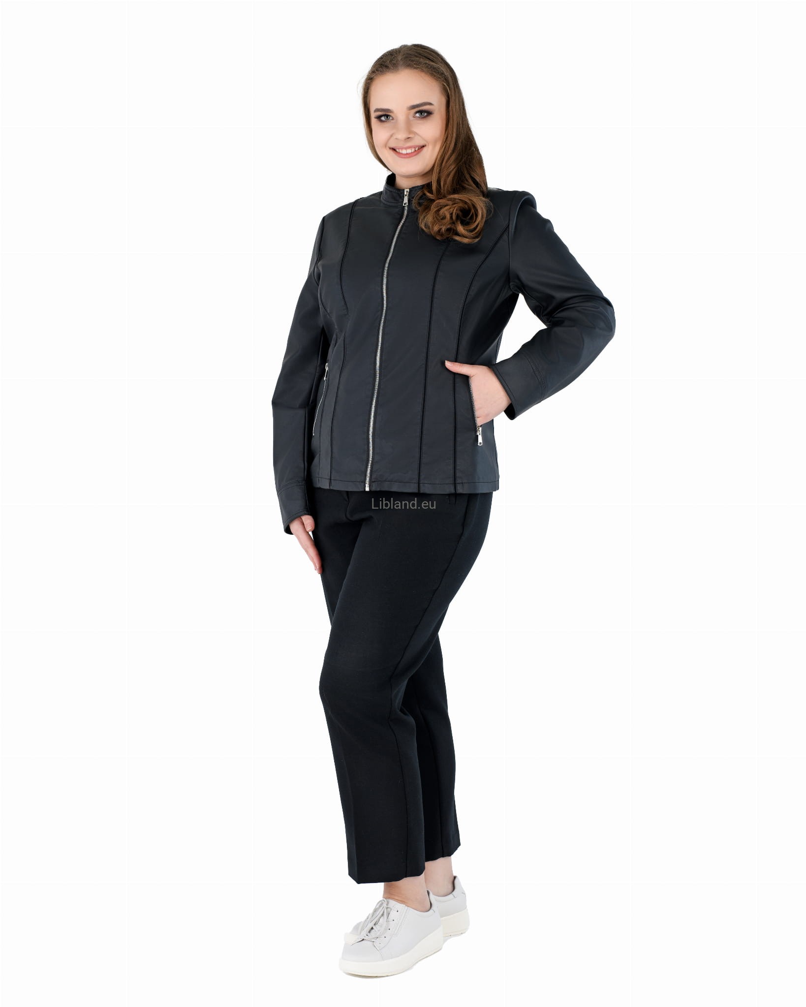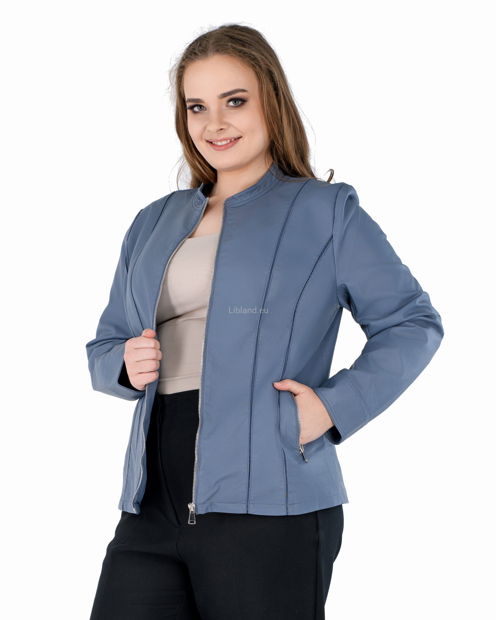 Kurtka z ekologicznej skóry zasuwana na suwak, ze stójką i pionowymi wstawkami z siateczki.