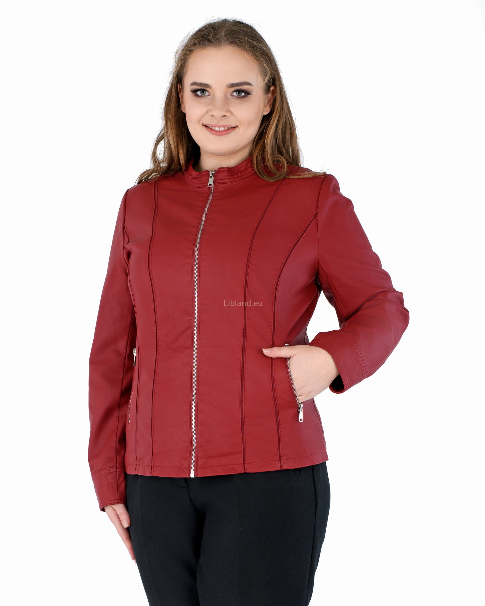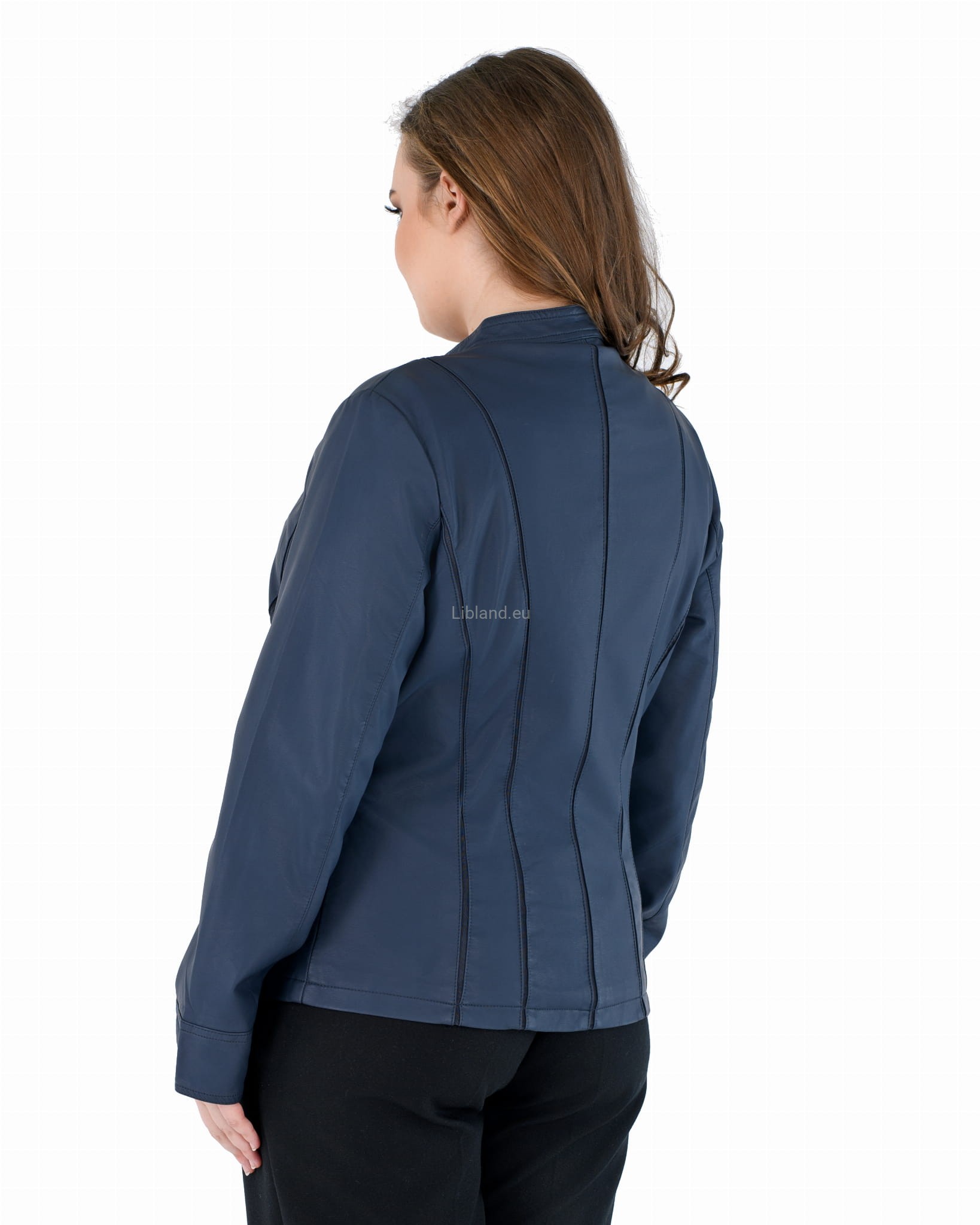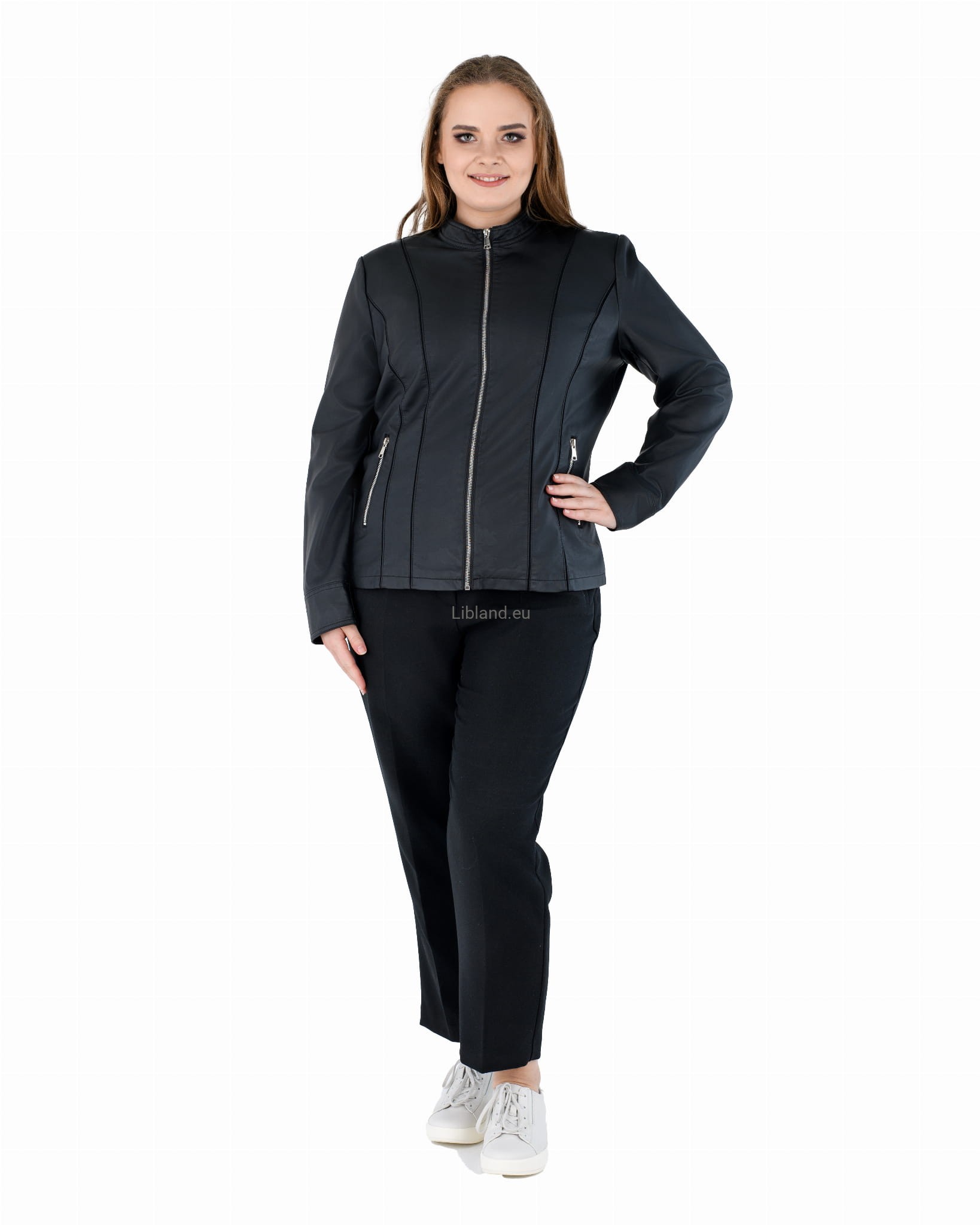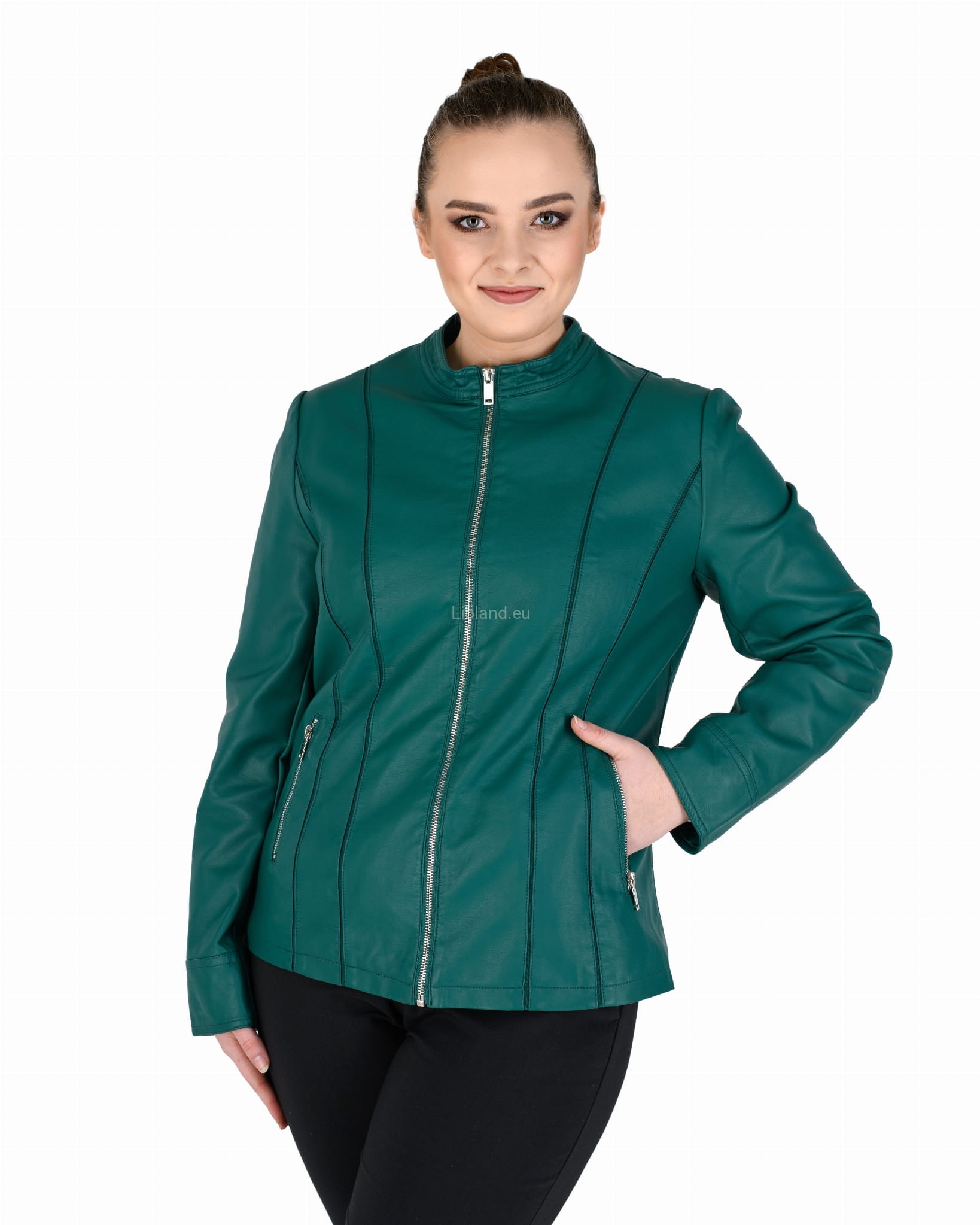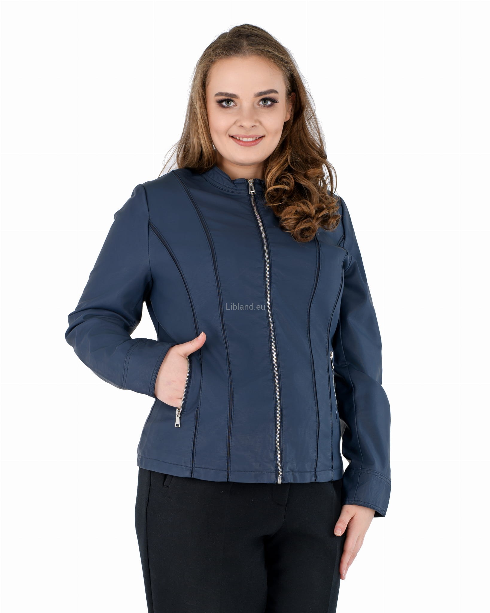 Kurtka z ekologicznej skóry zasuwana na suwak, ze stójką i pionowymi wstawkami z siateczki.