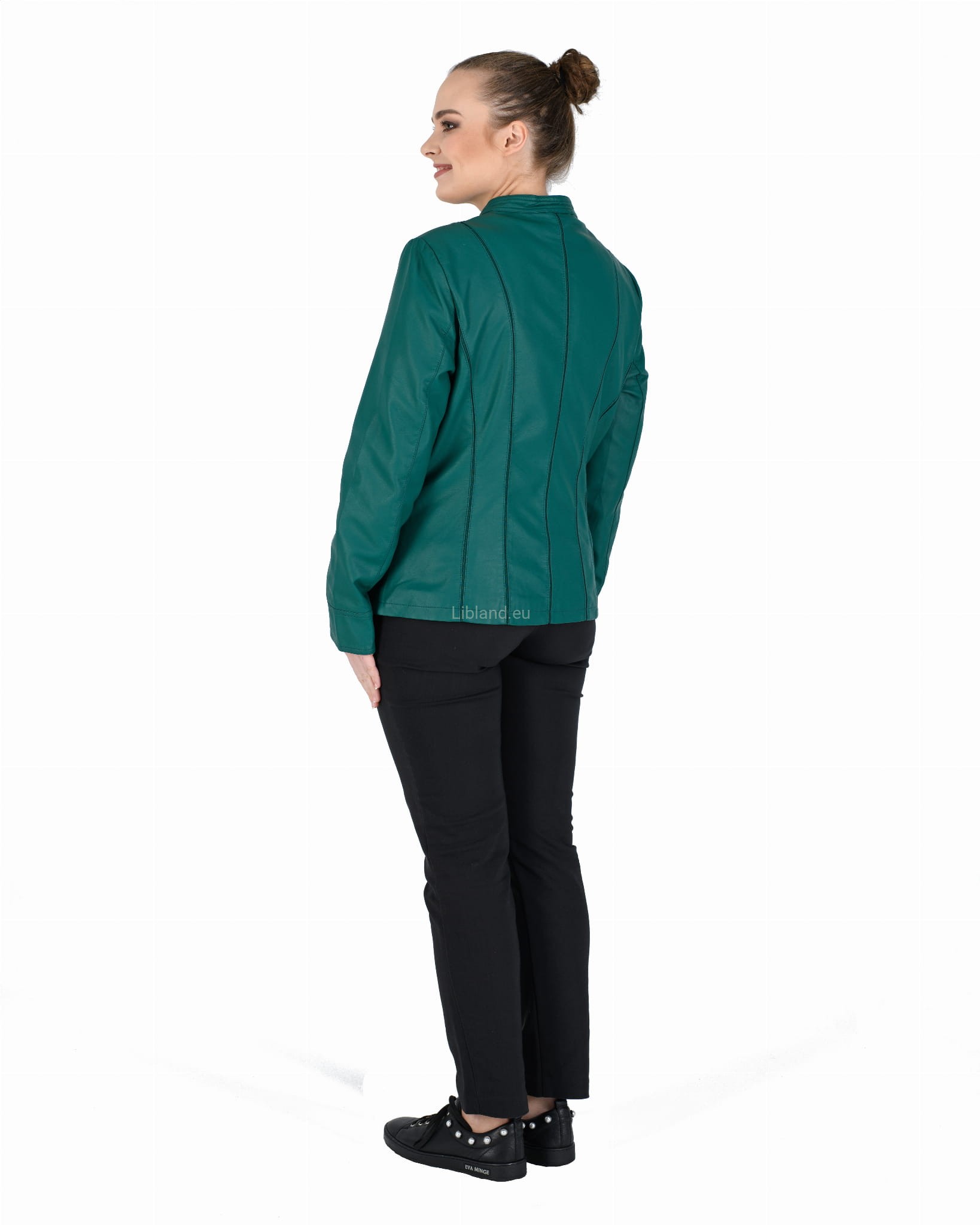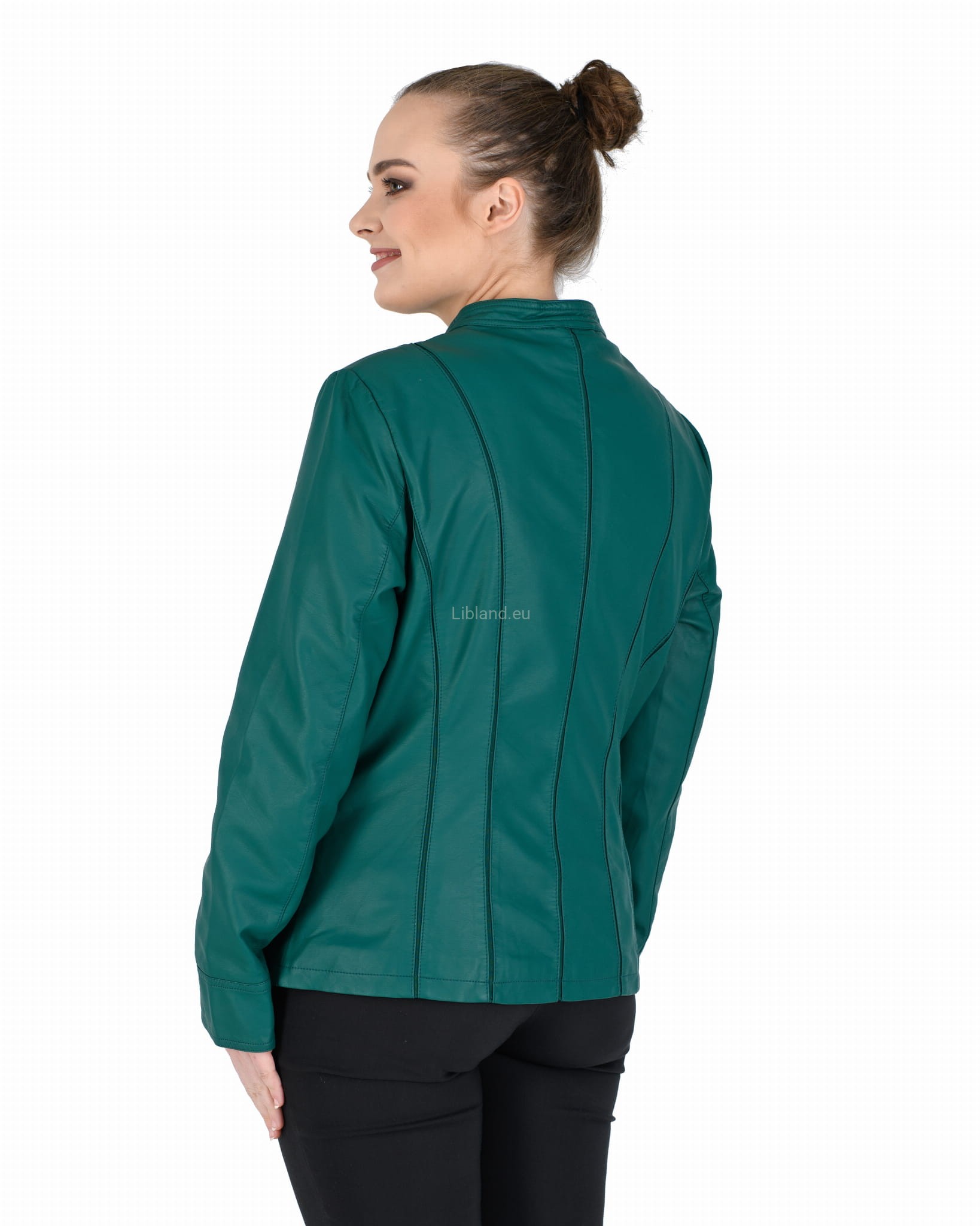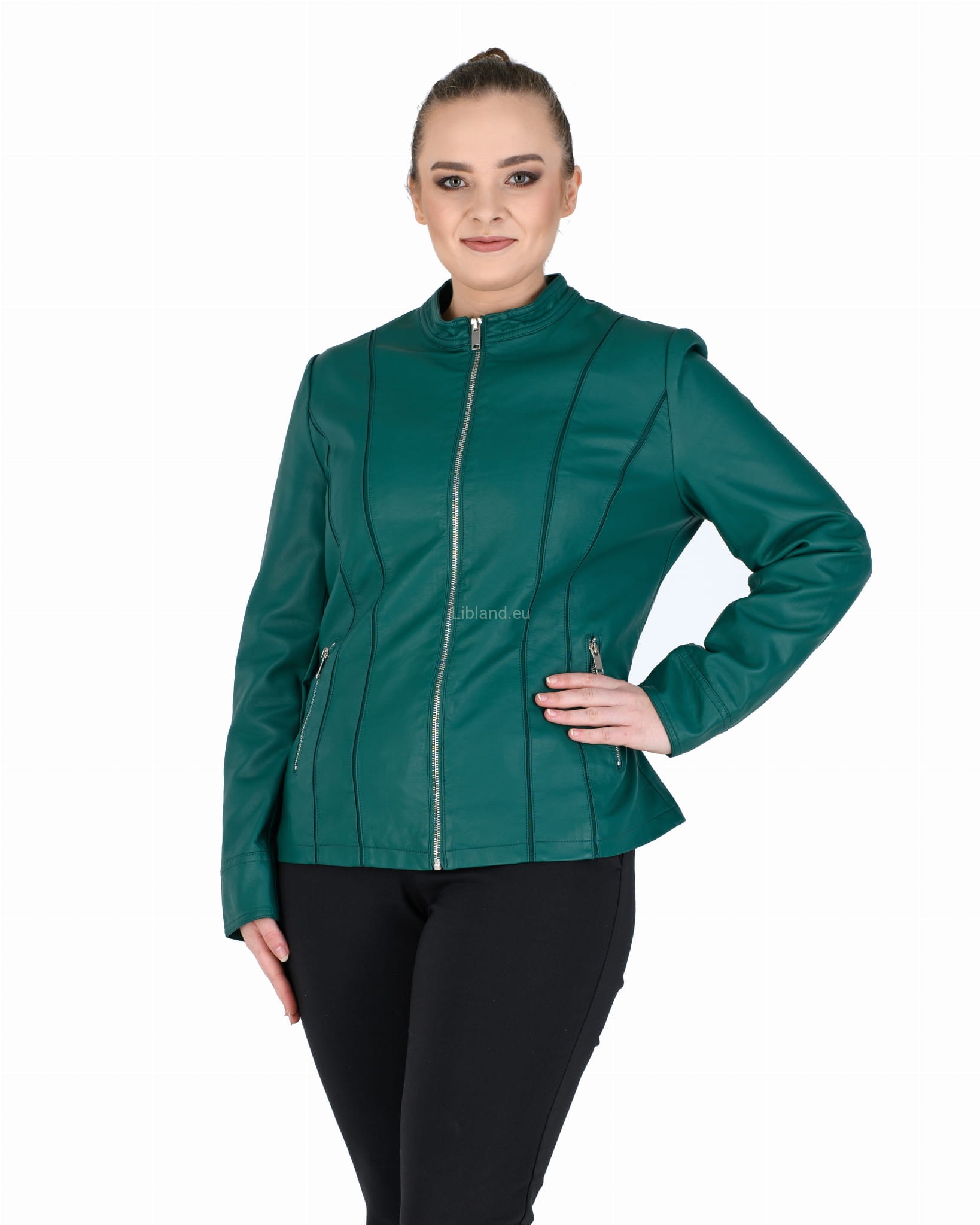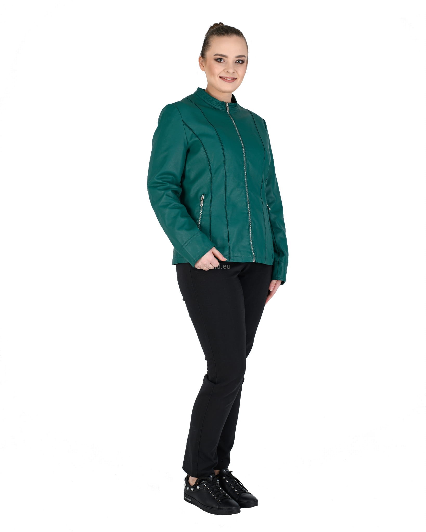 Kurtka z ekologicznej skóry zasuwana na suwak, ze stójką i pionowymi wstawkami z siateczki.