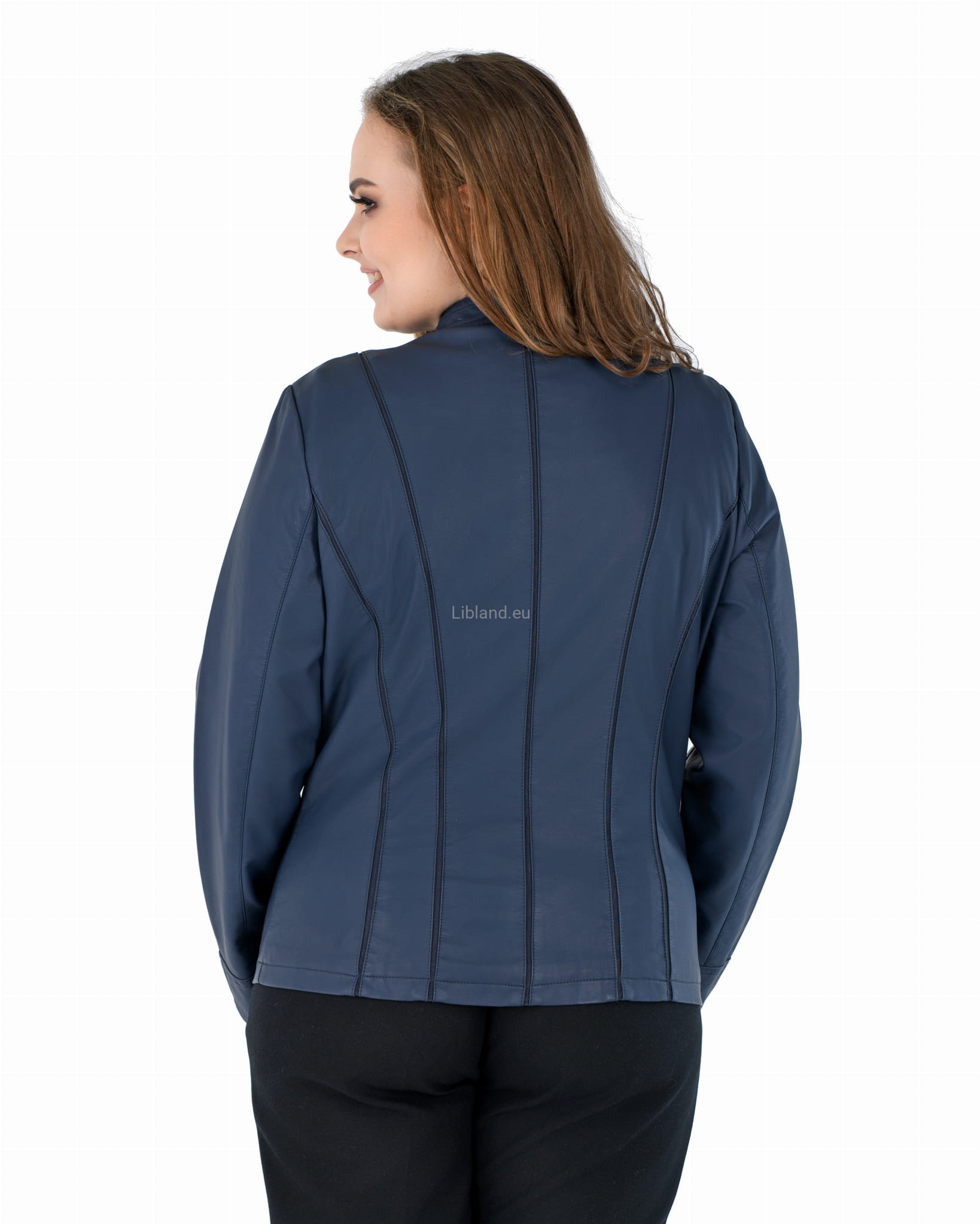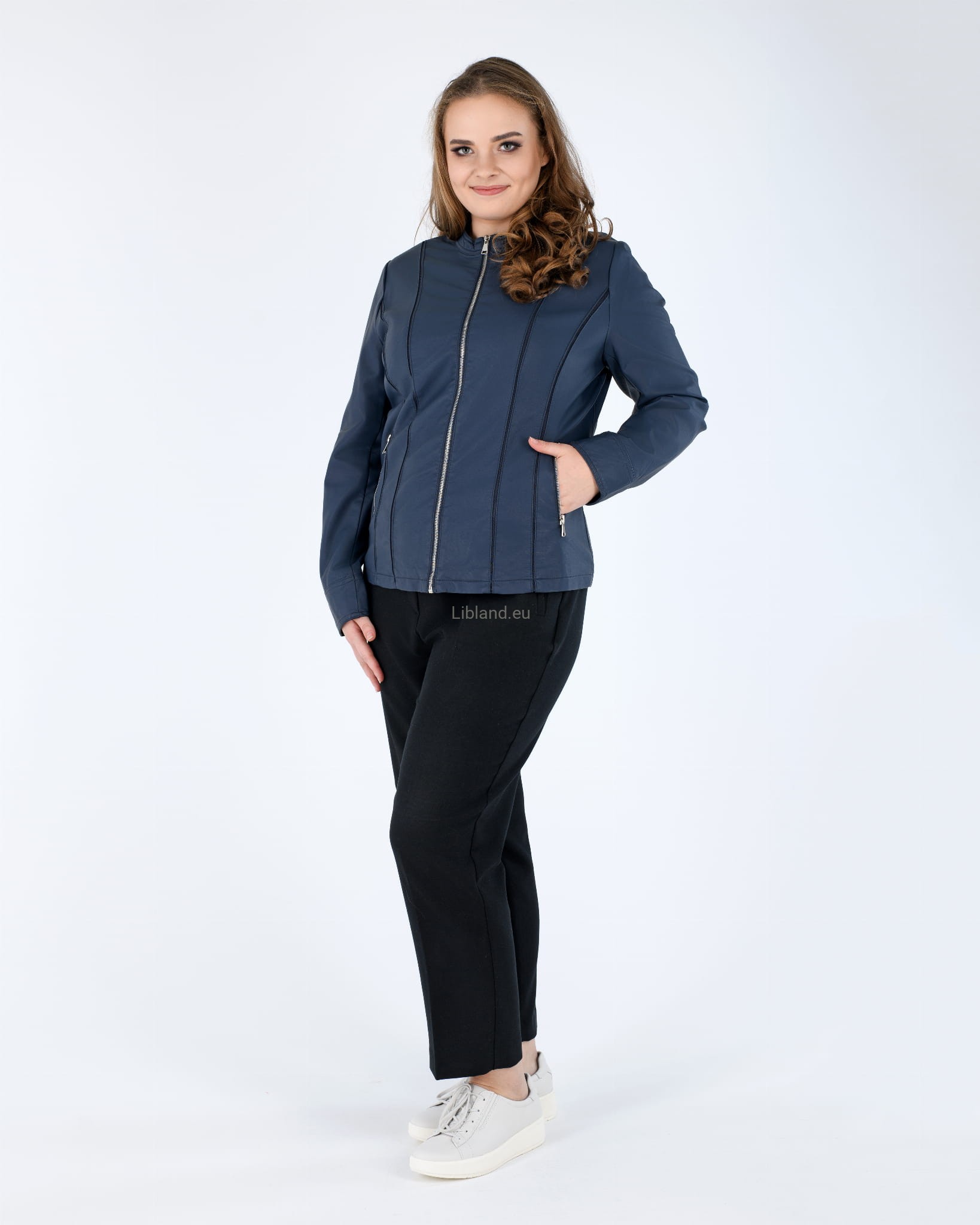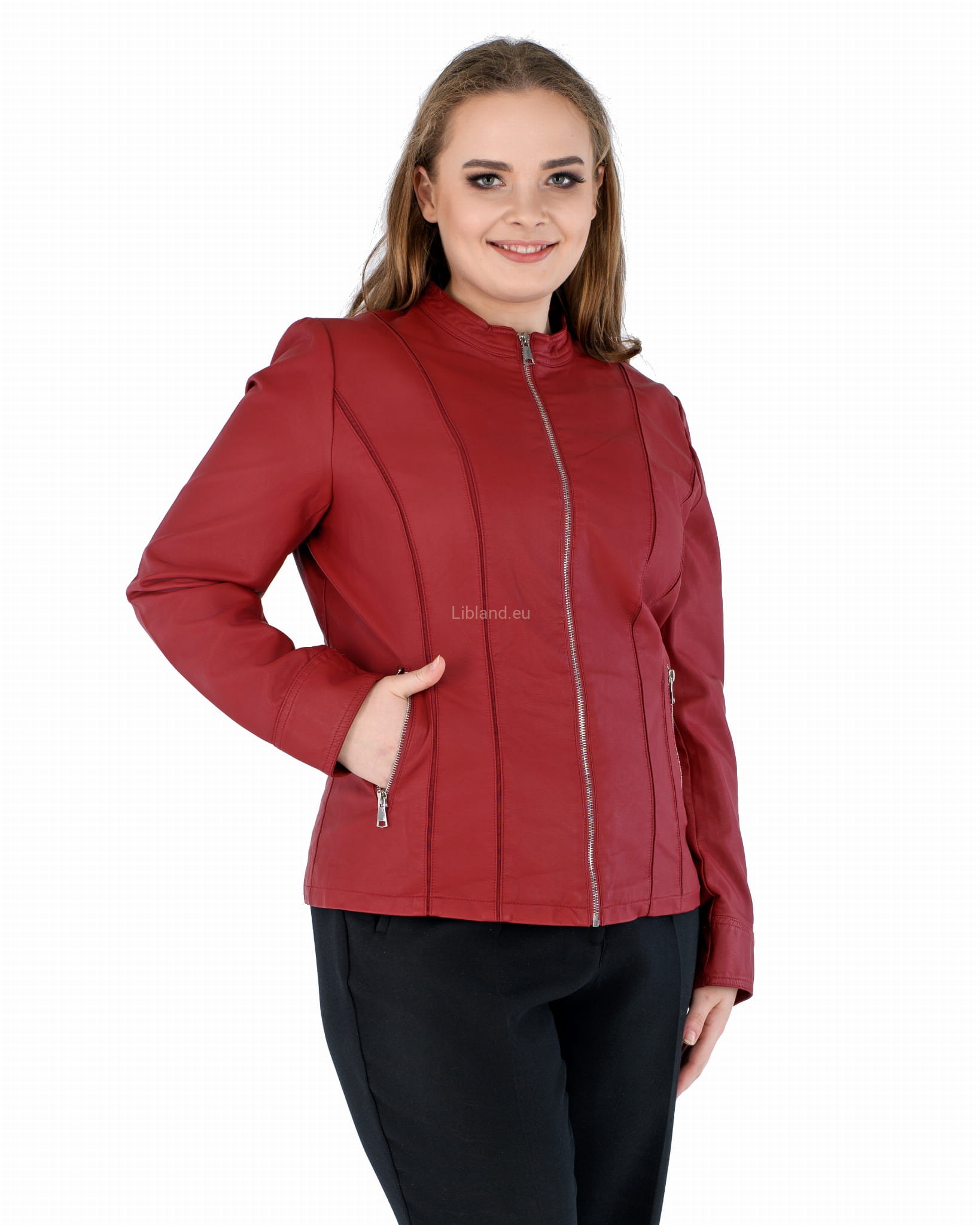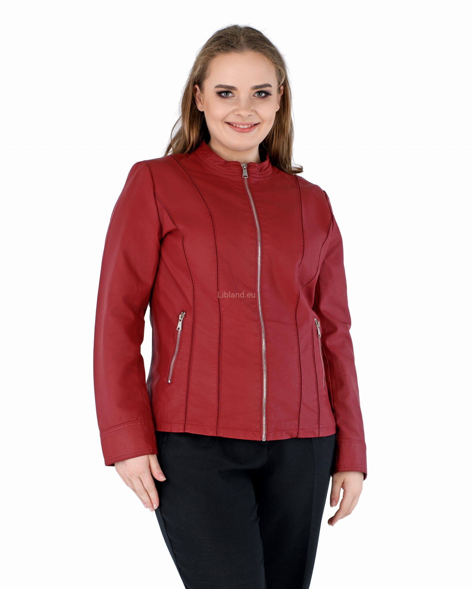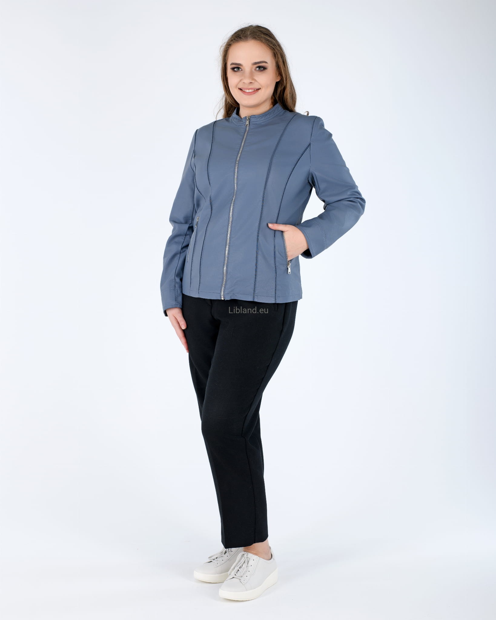Kurtka z ekologicznej skóry zasuwana na suwak, ze stójką i pionowymi wstawkami z siateczki.