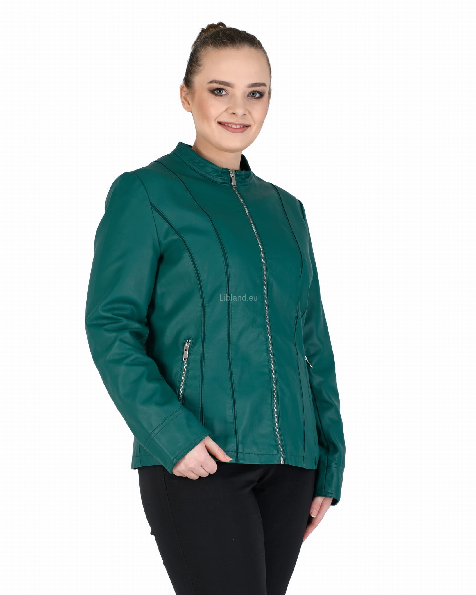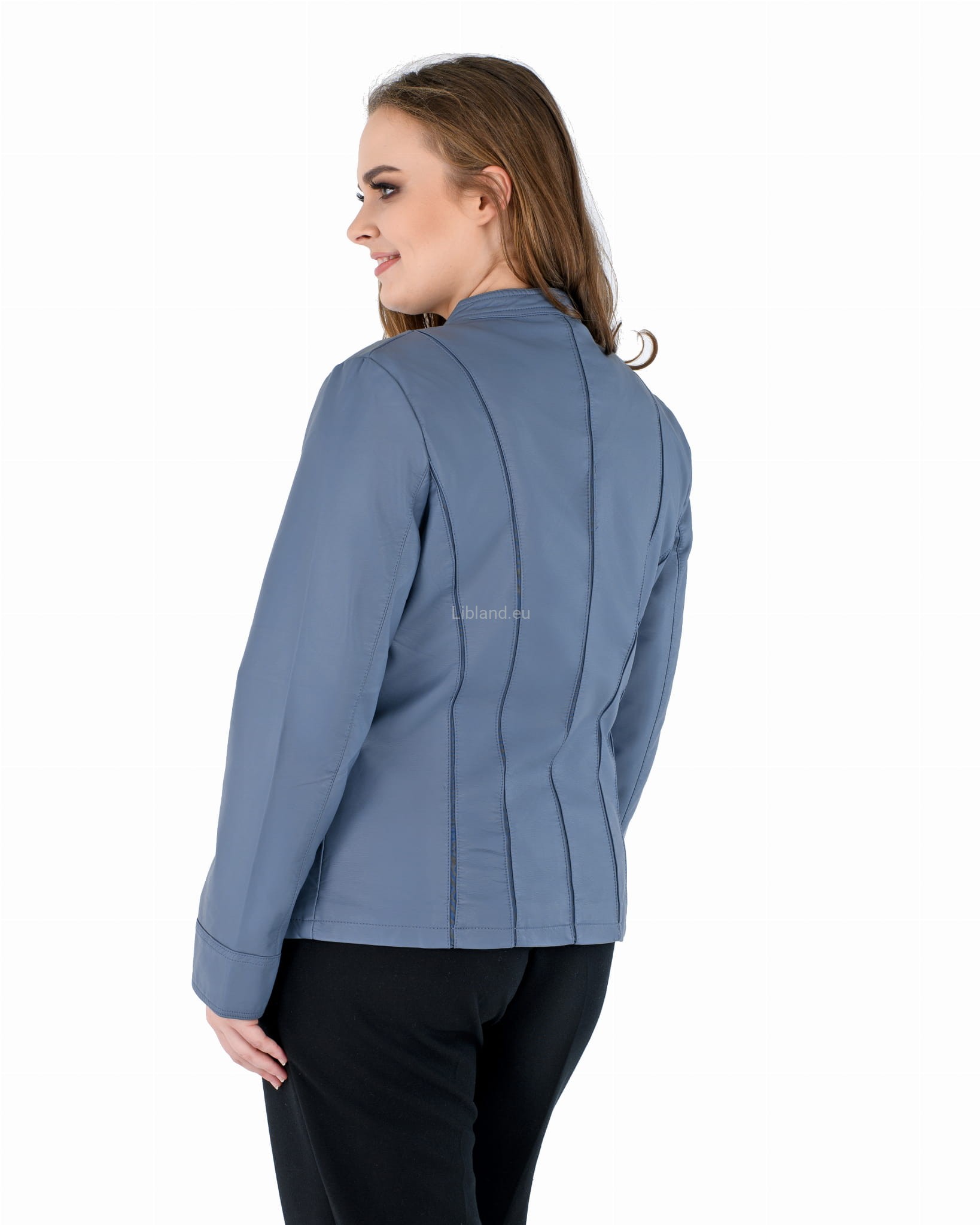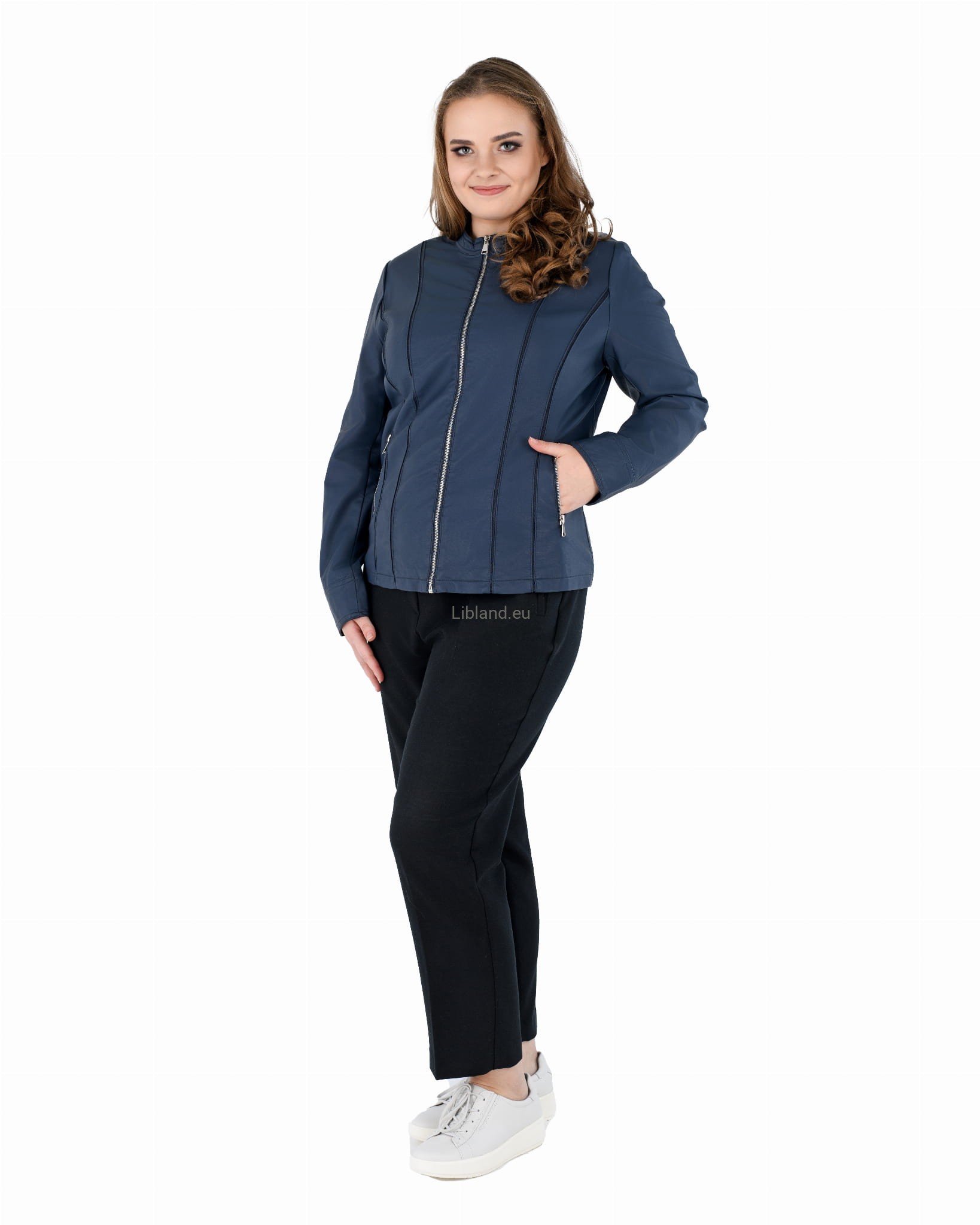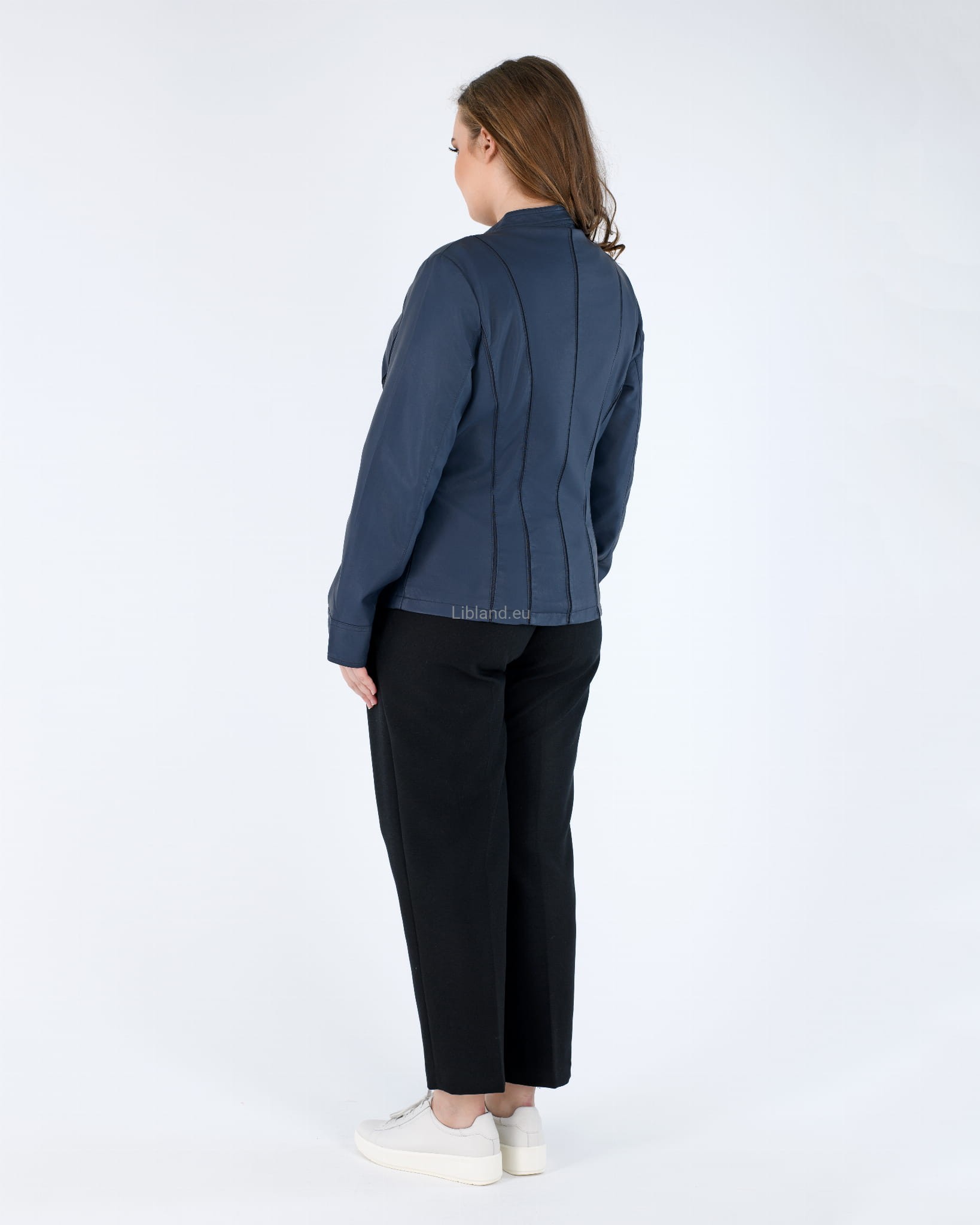 Kurtka z ekologicznej skóry zasuwana na suwak, ze stójką i pionowymi wstawkami z siateczki.