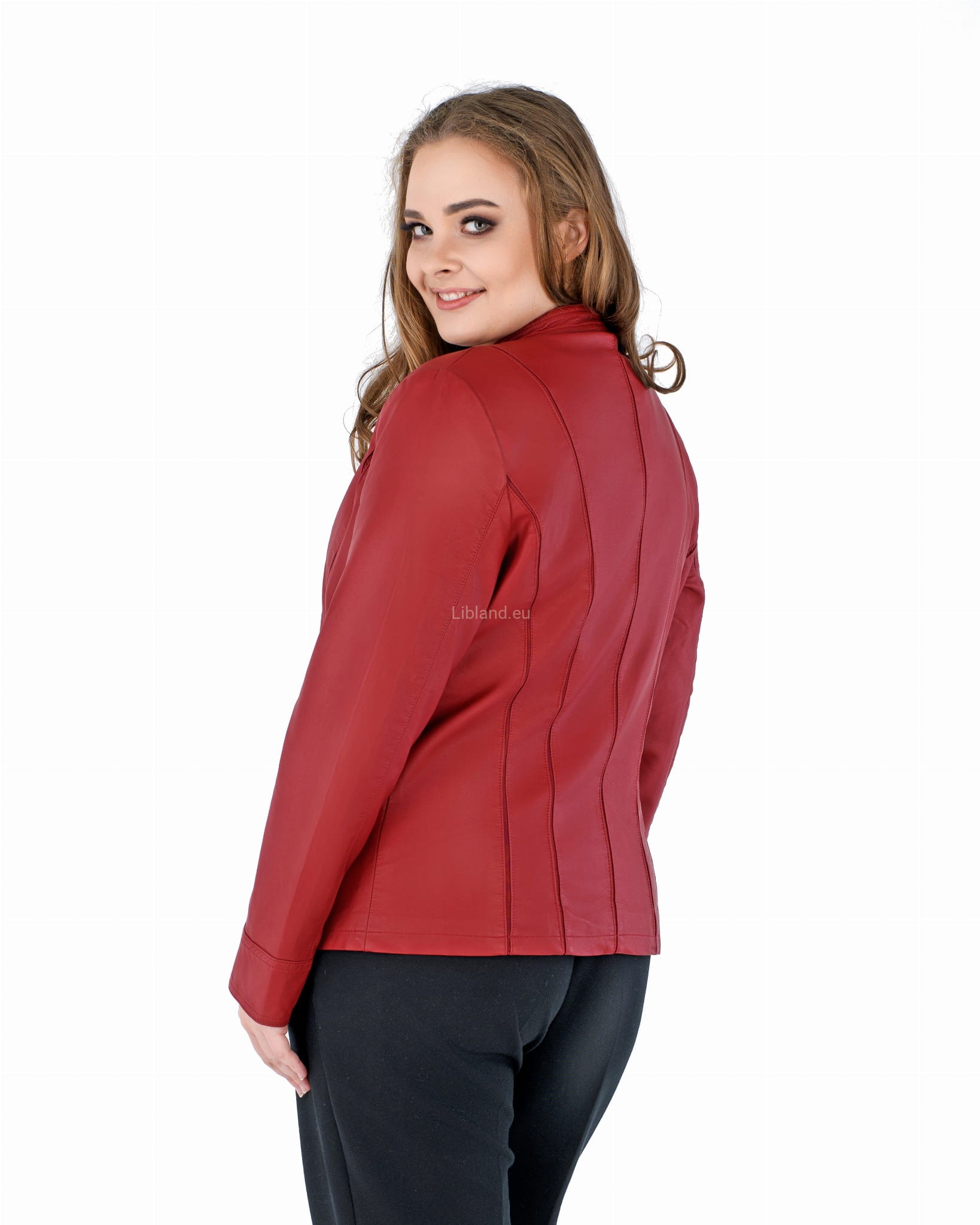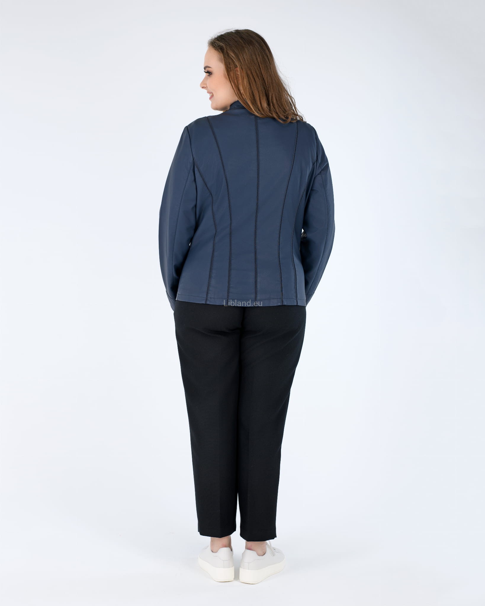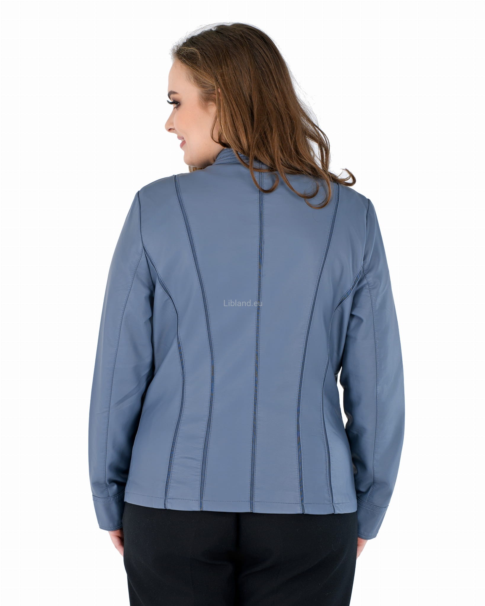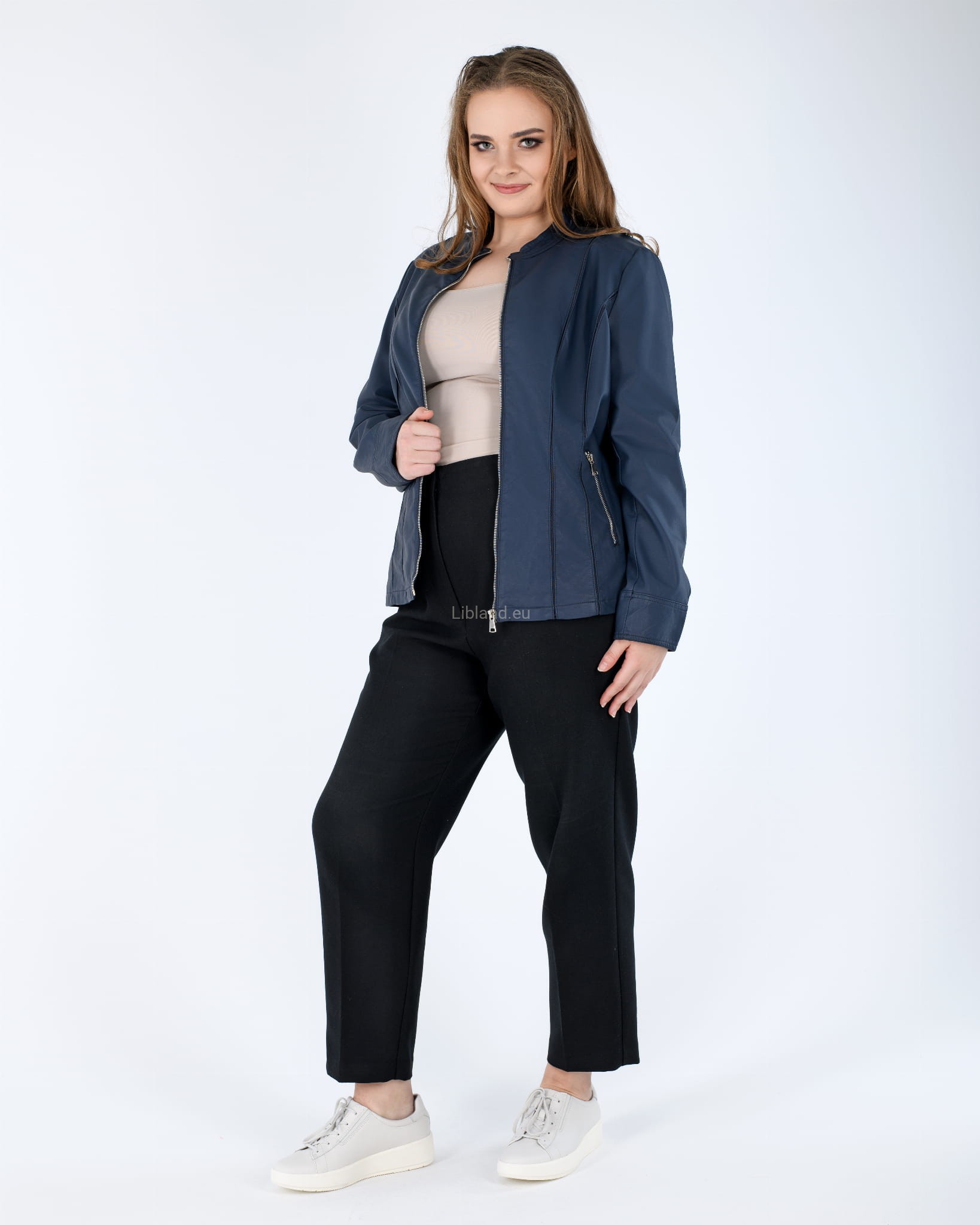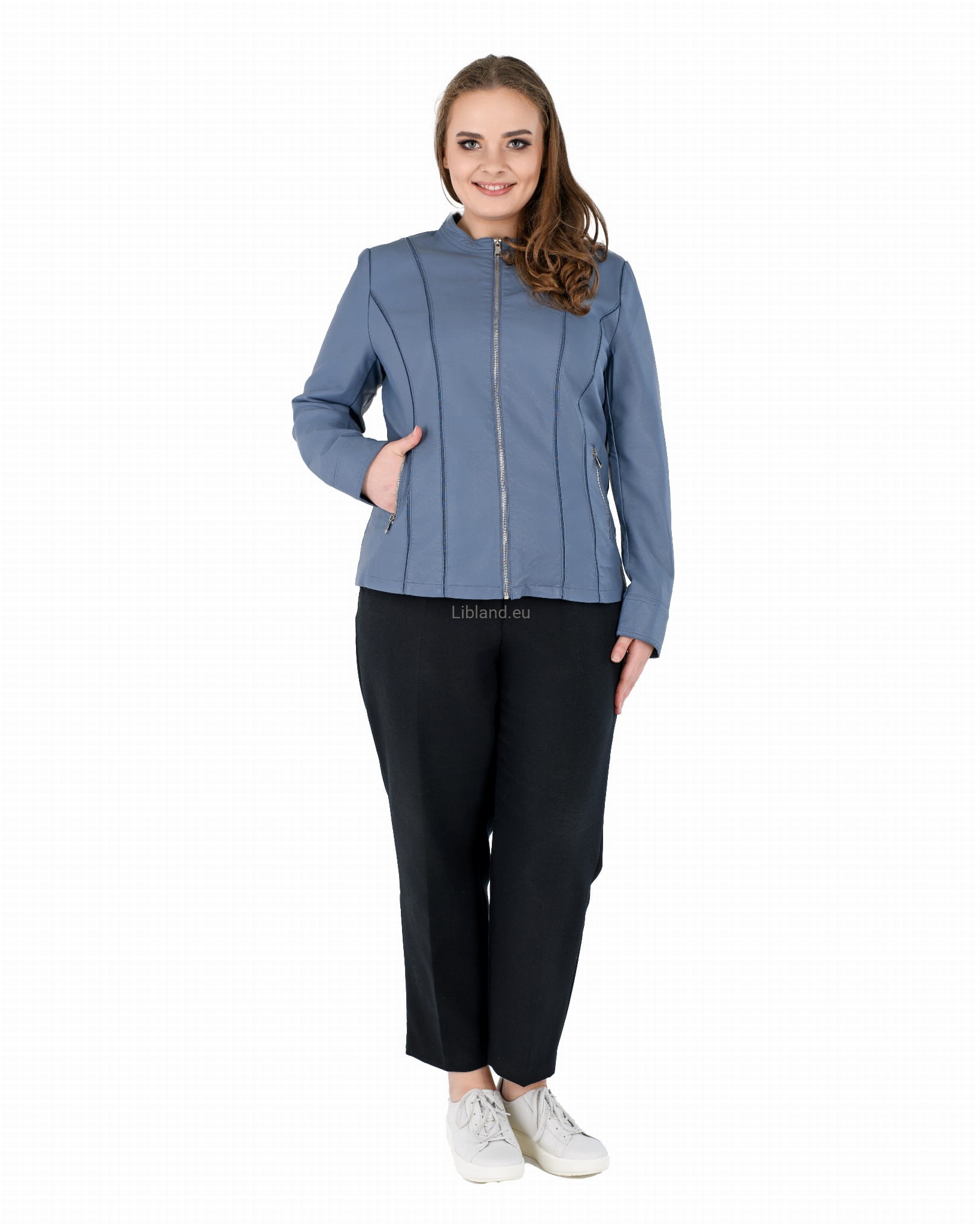 Kurtka z ekologicznej skóry zasuwana na suwak, ze stójką i pionowymi wstawkami z siateczki.