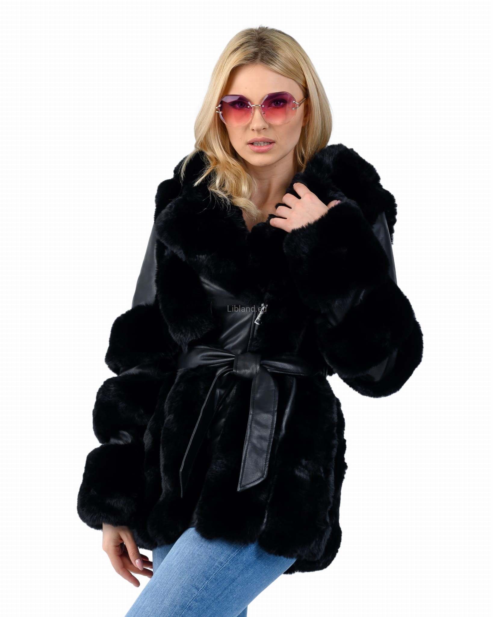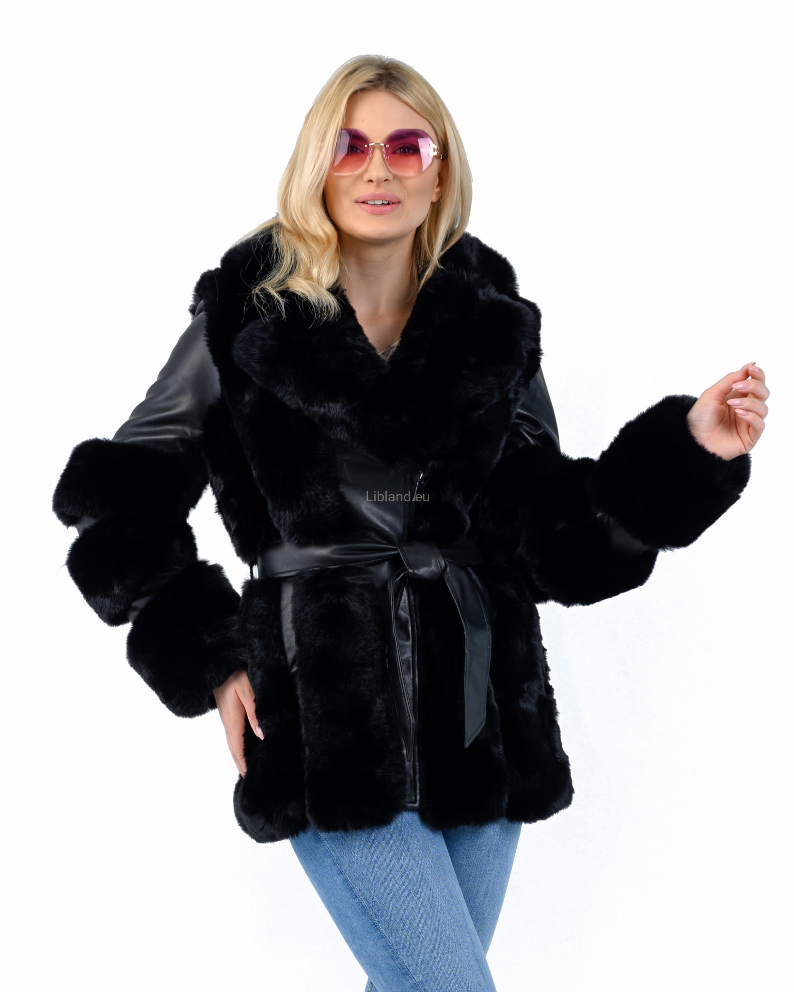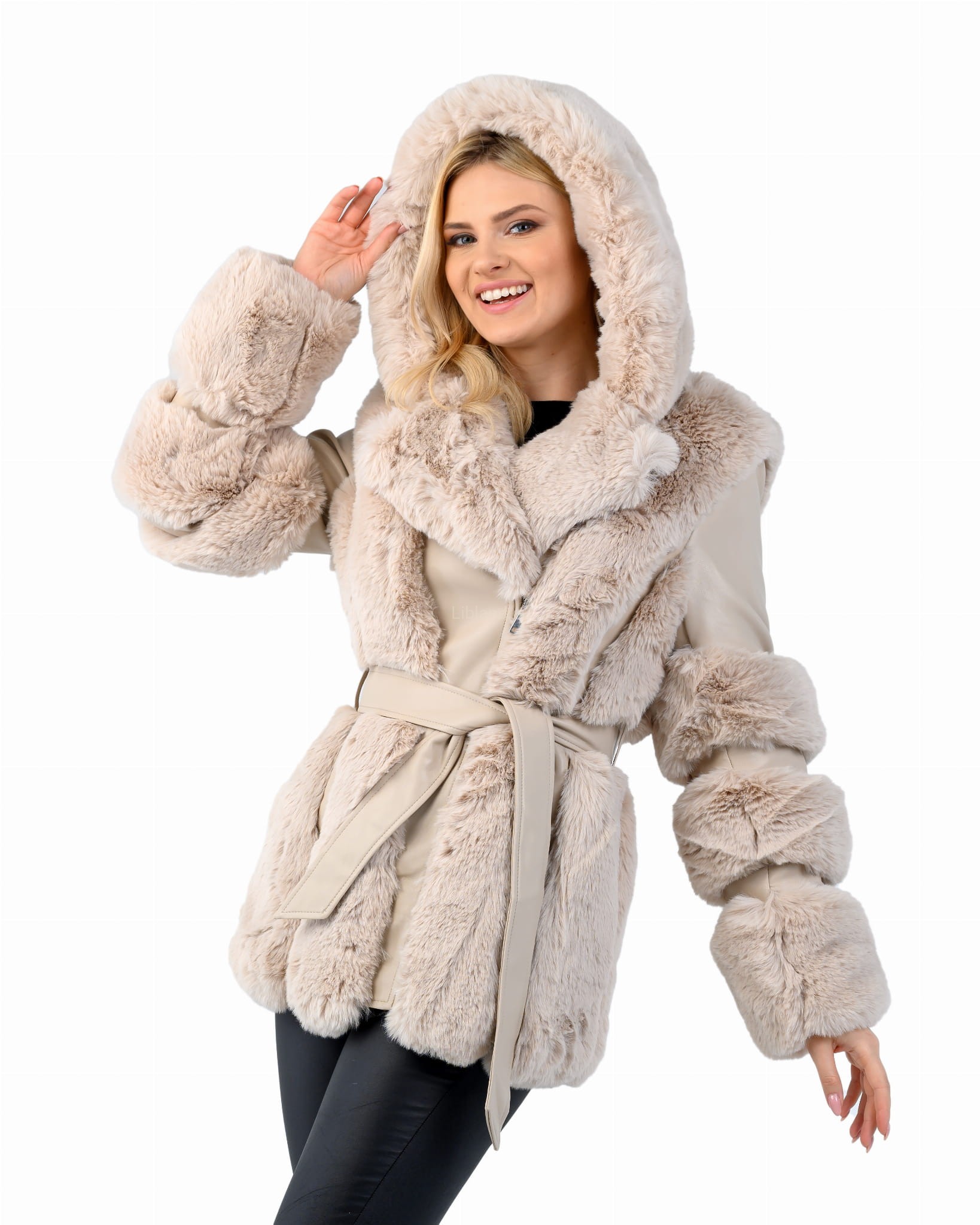 Zimowa kurtka damska z ekologicznej skóry i miłego sztucznego futra.