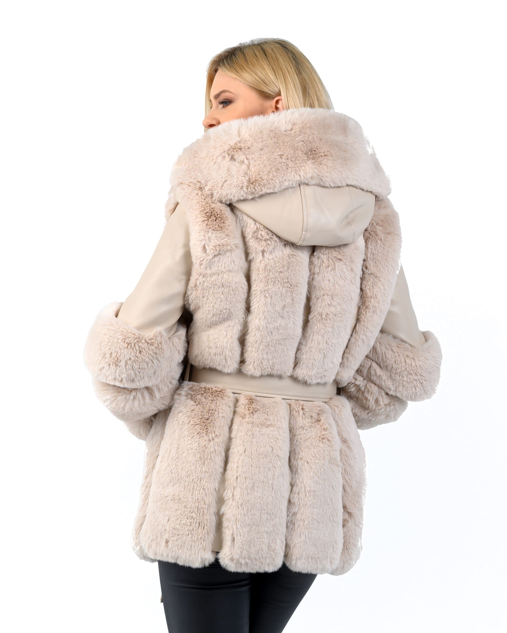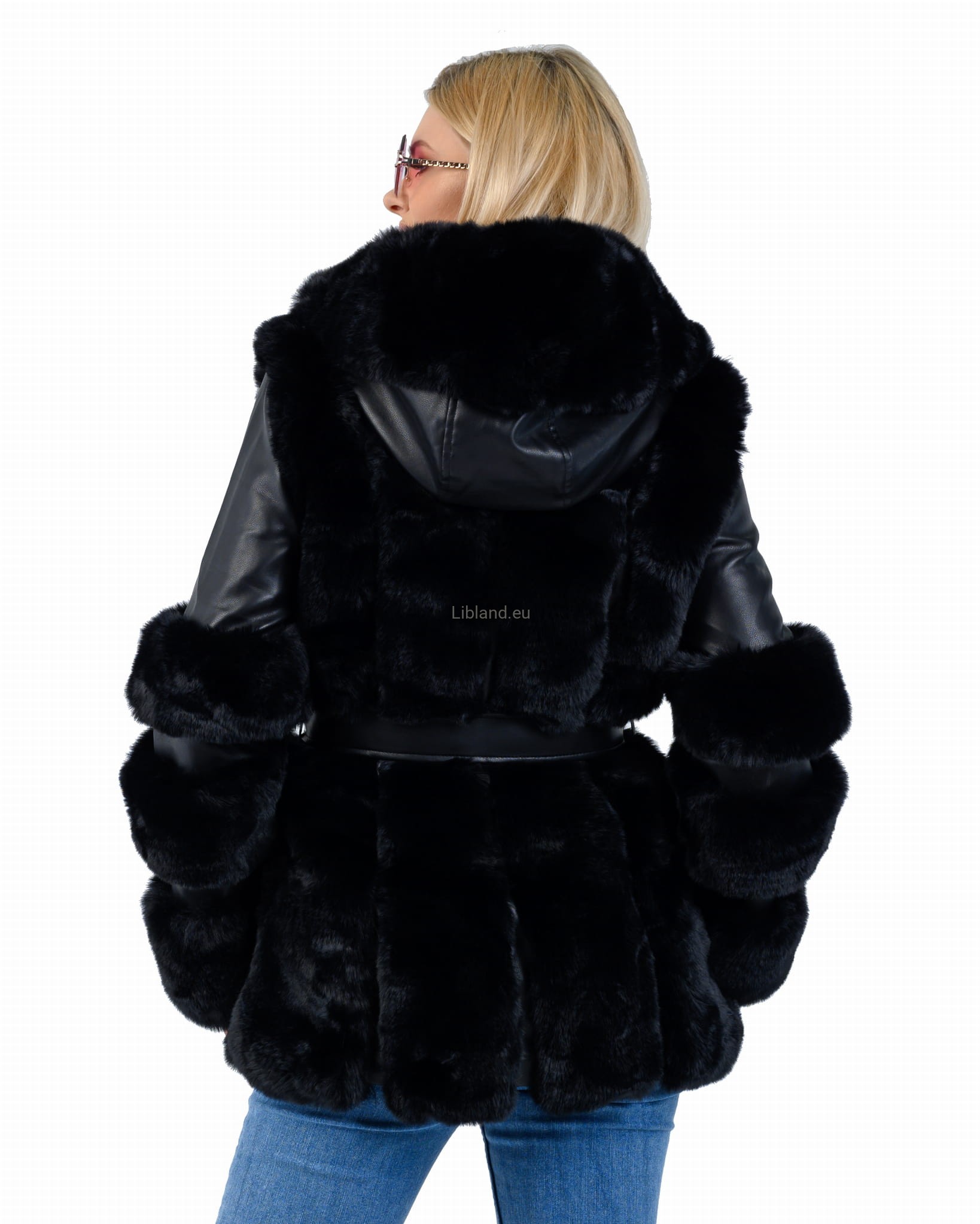 - w piękne naprzemienne pasy z eko-skóry i pięknego sztucznego futra;