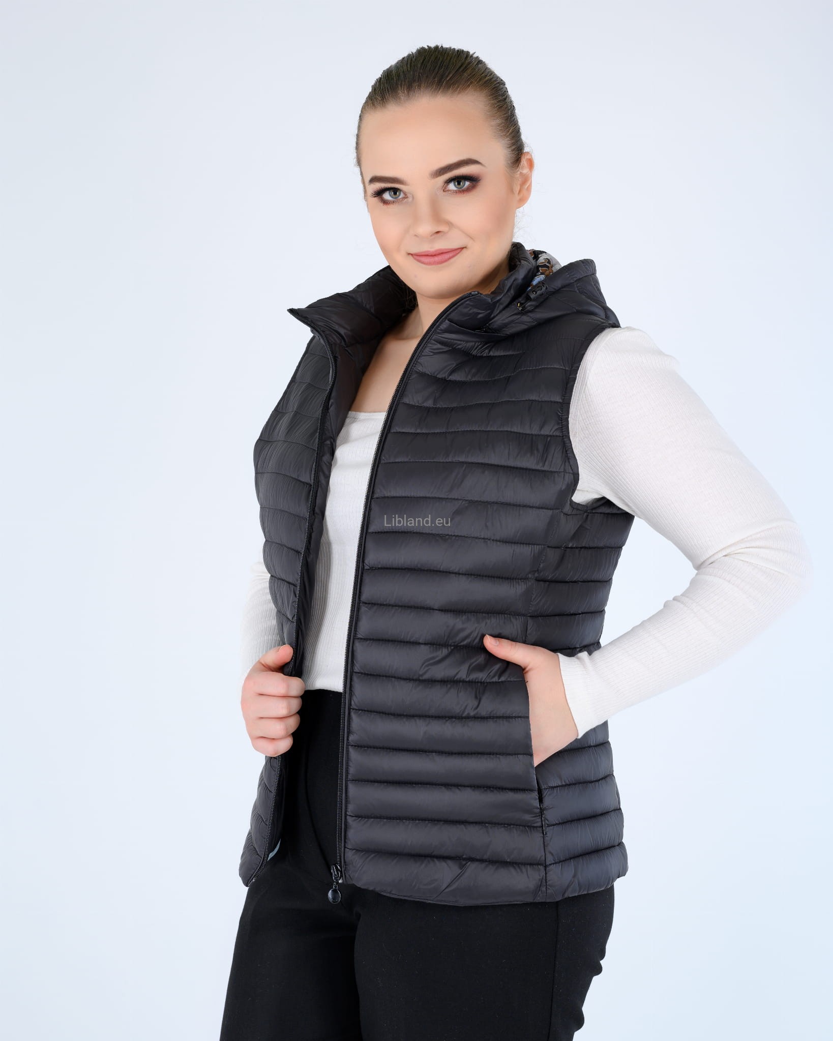 Damska kamizelka pikowany bezrękawnik z wzorzystą podszewką.