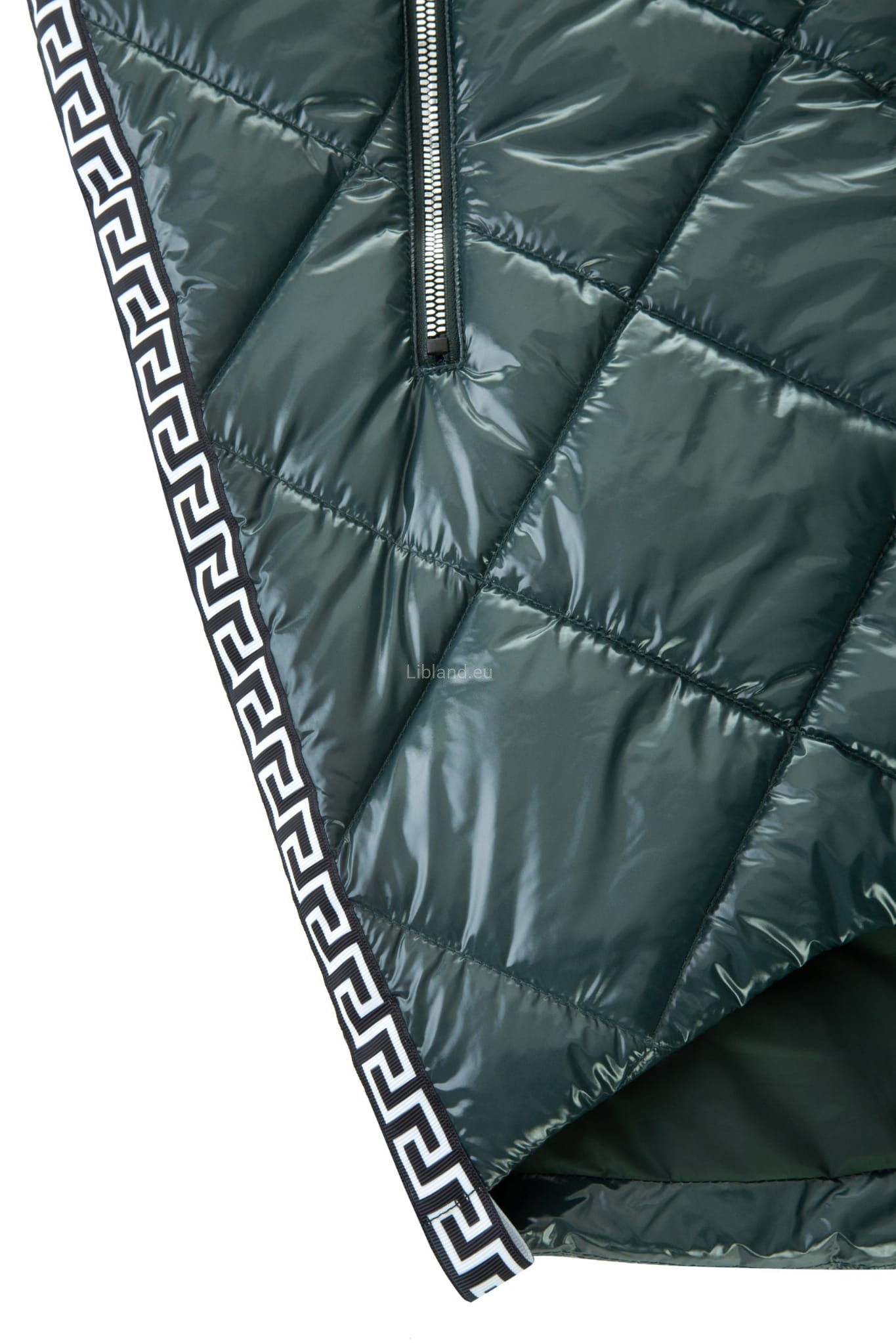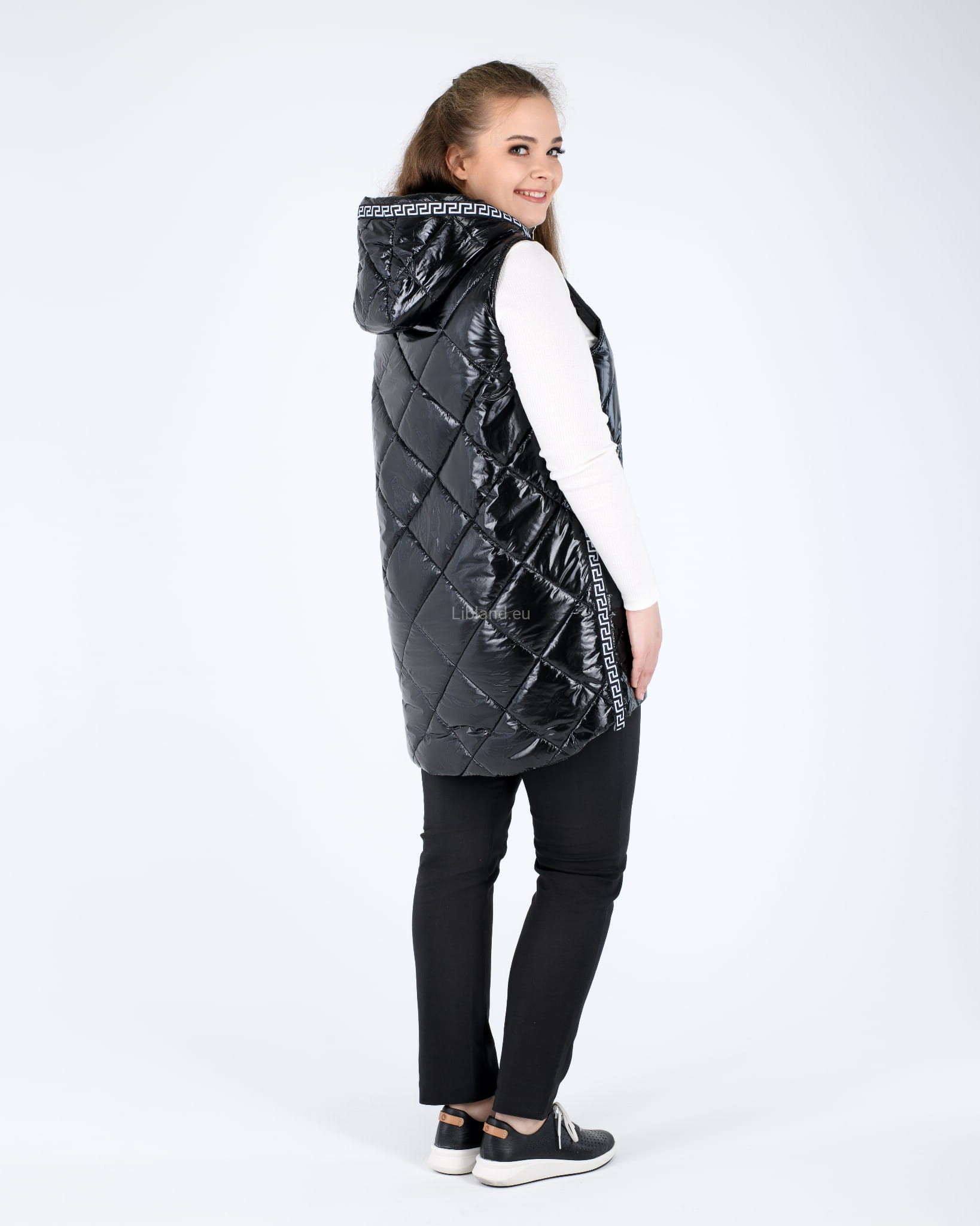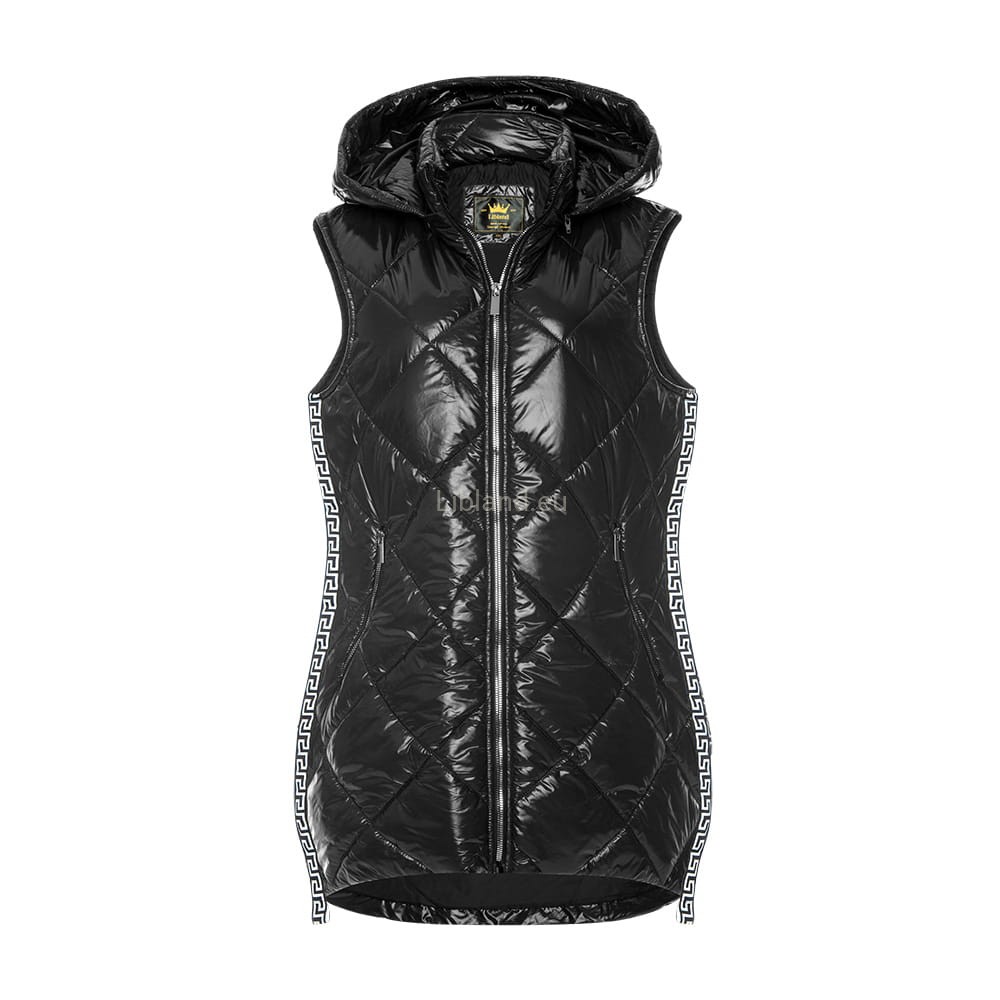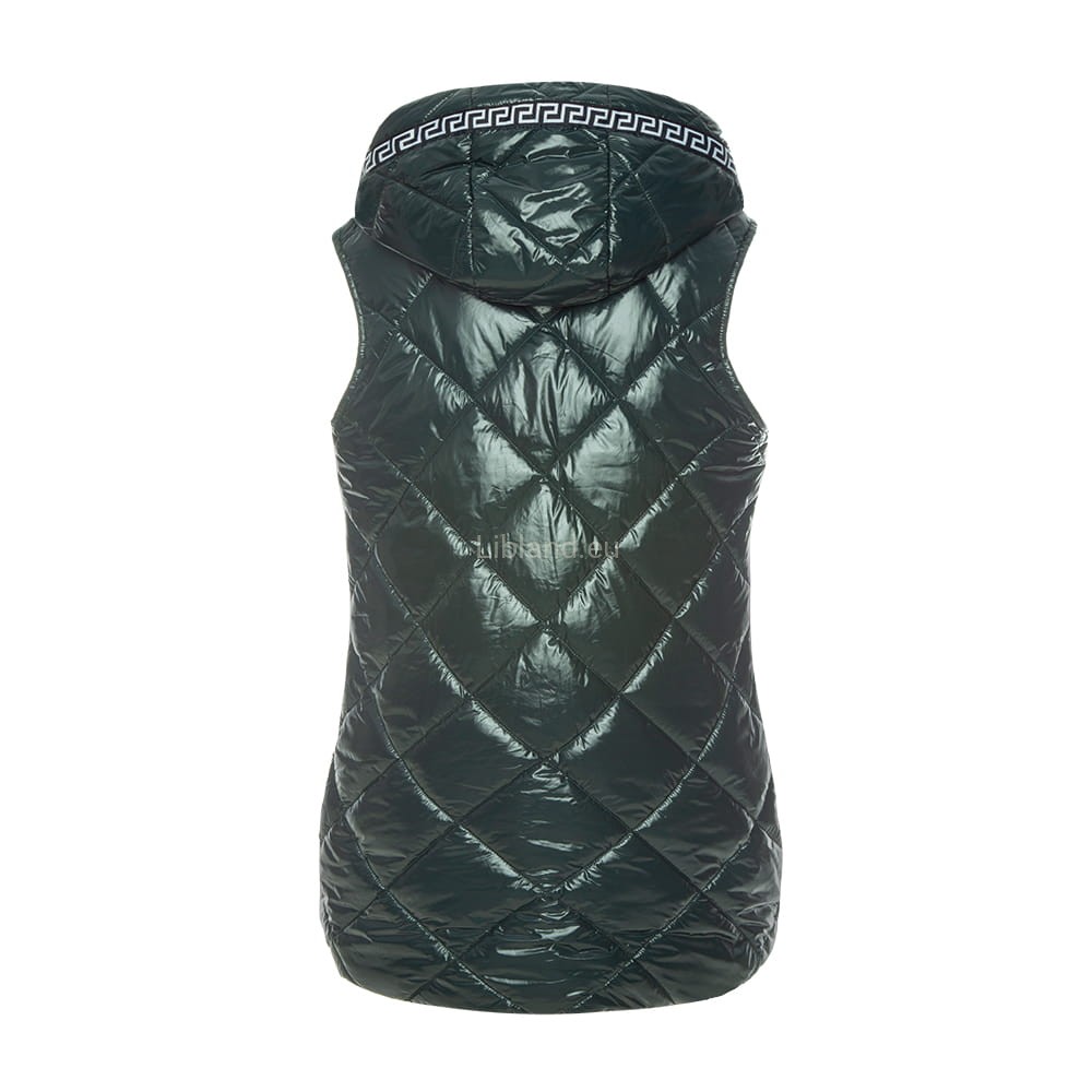 Pikowany bezrękawnik z błyszczącej tkaniny z metalowym suwakiem i odpinanym kapturem: