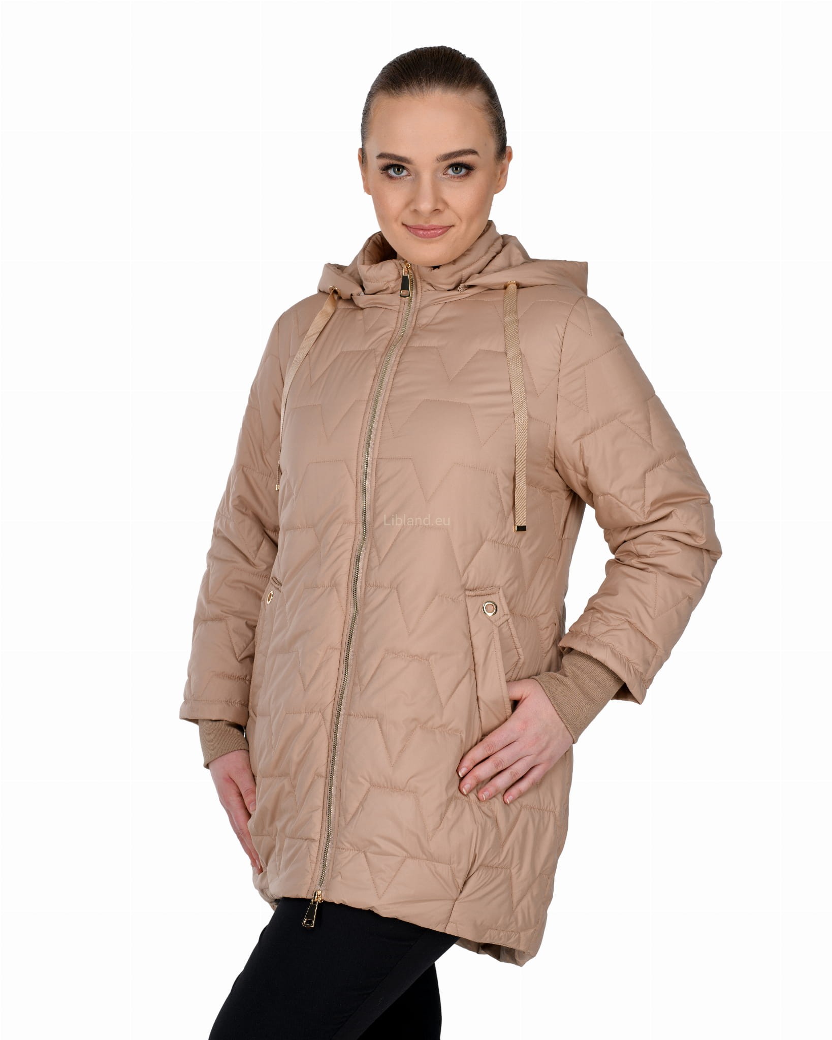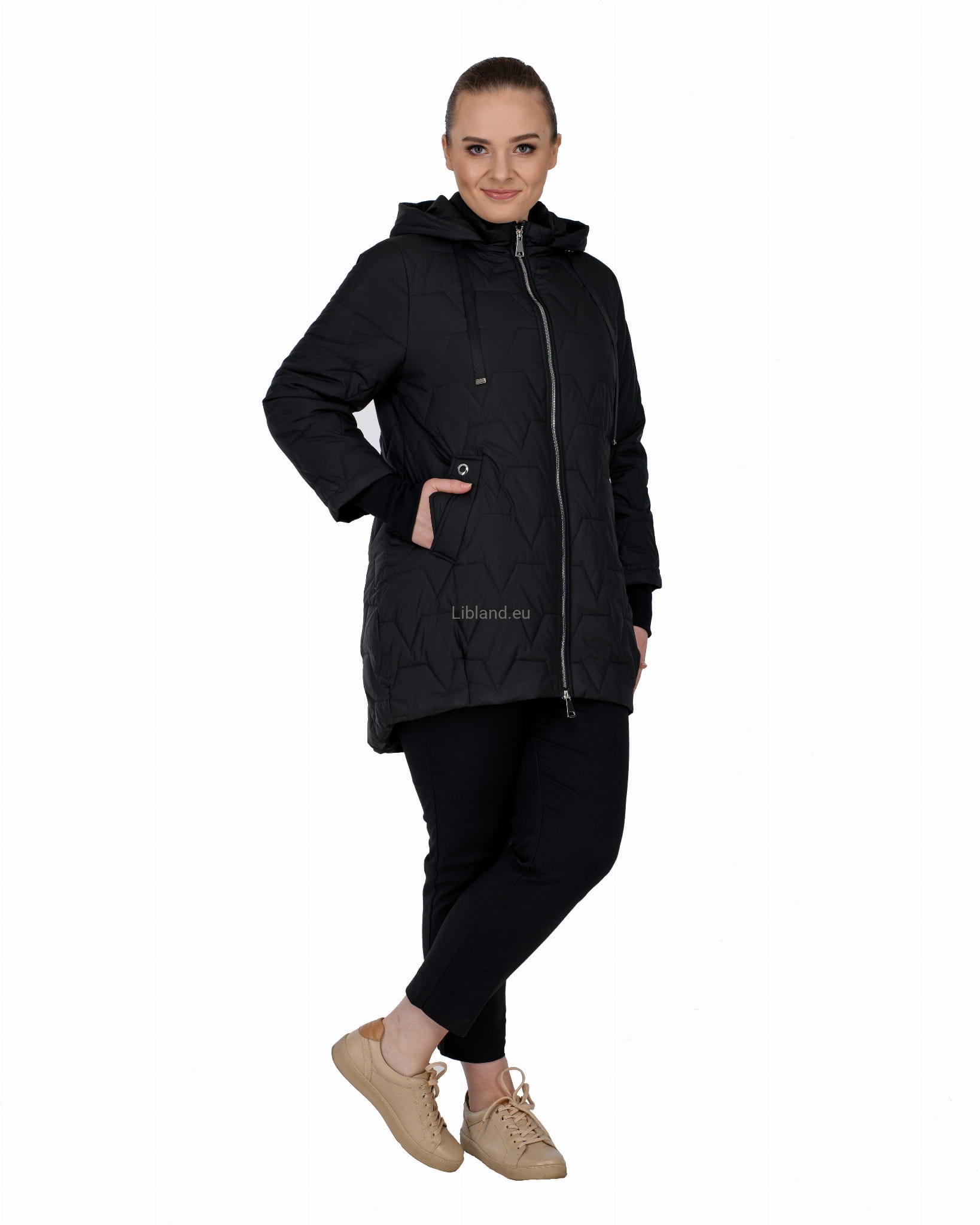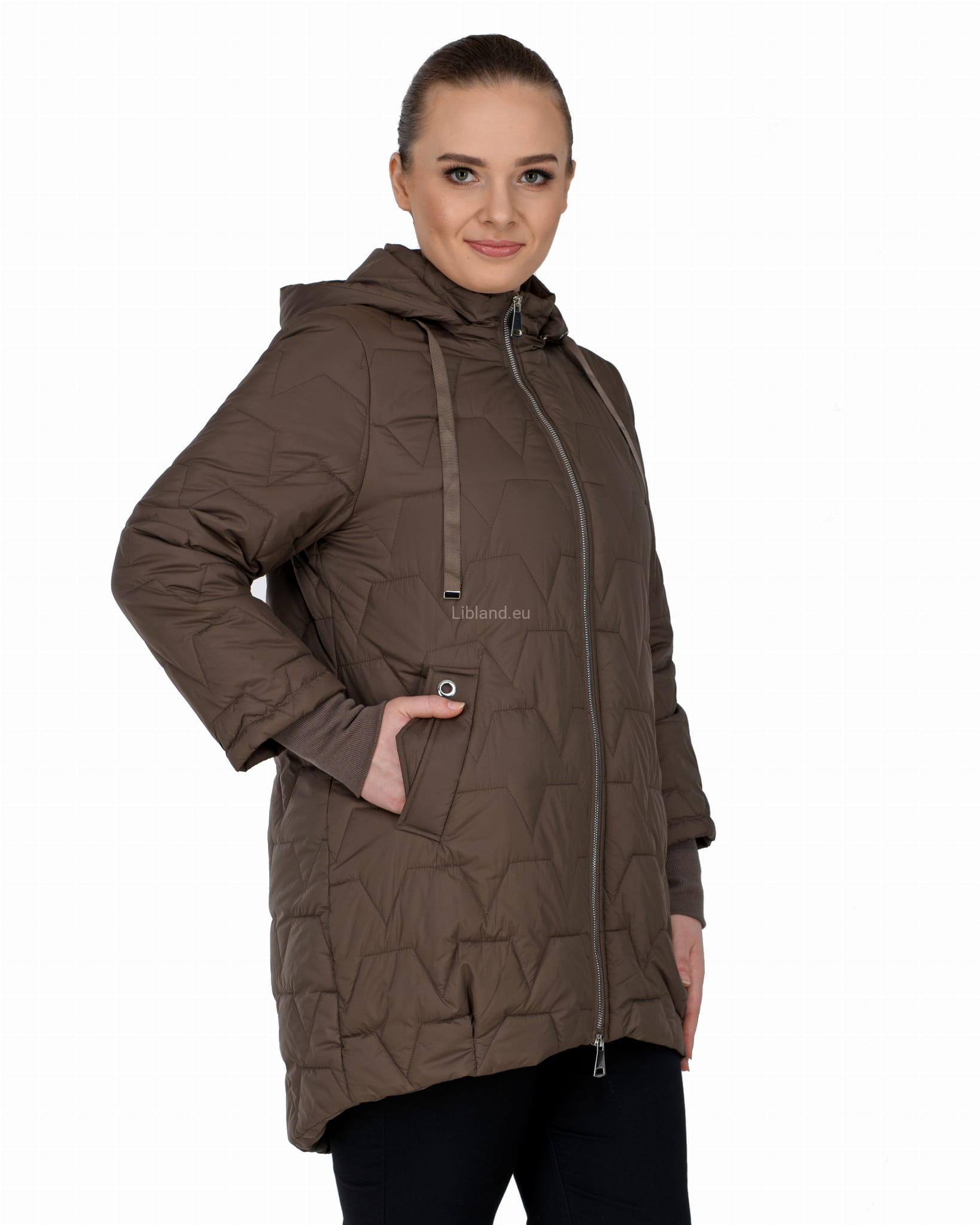 Pikowana kurtka damka z odpinanym kapturem i dłuższym tyłem.