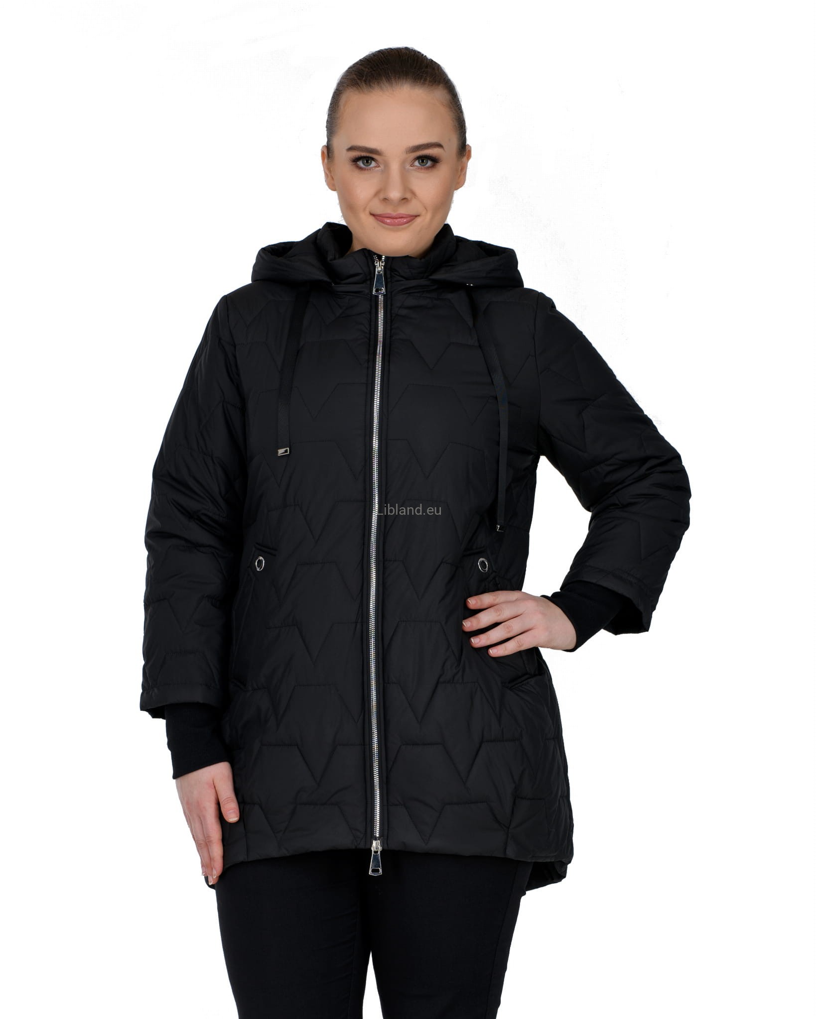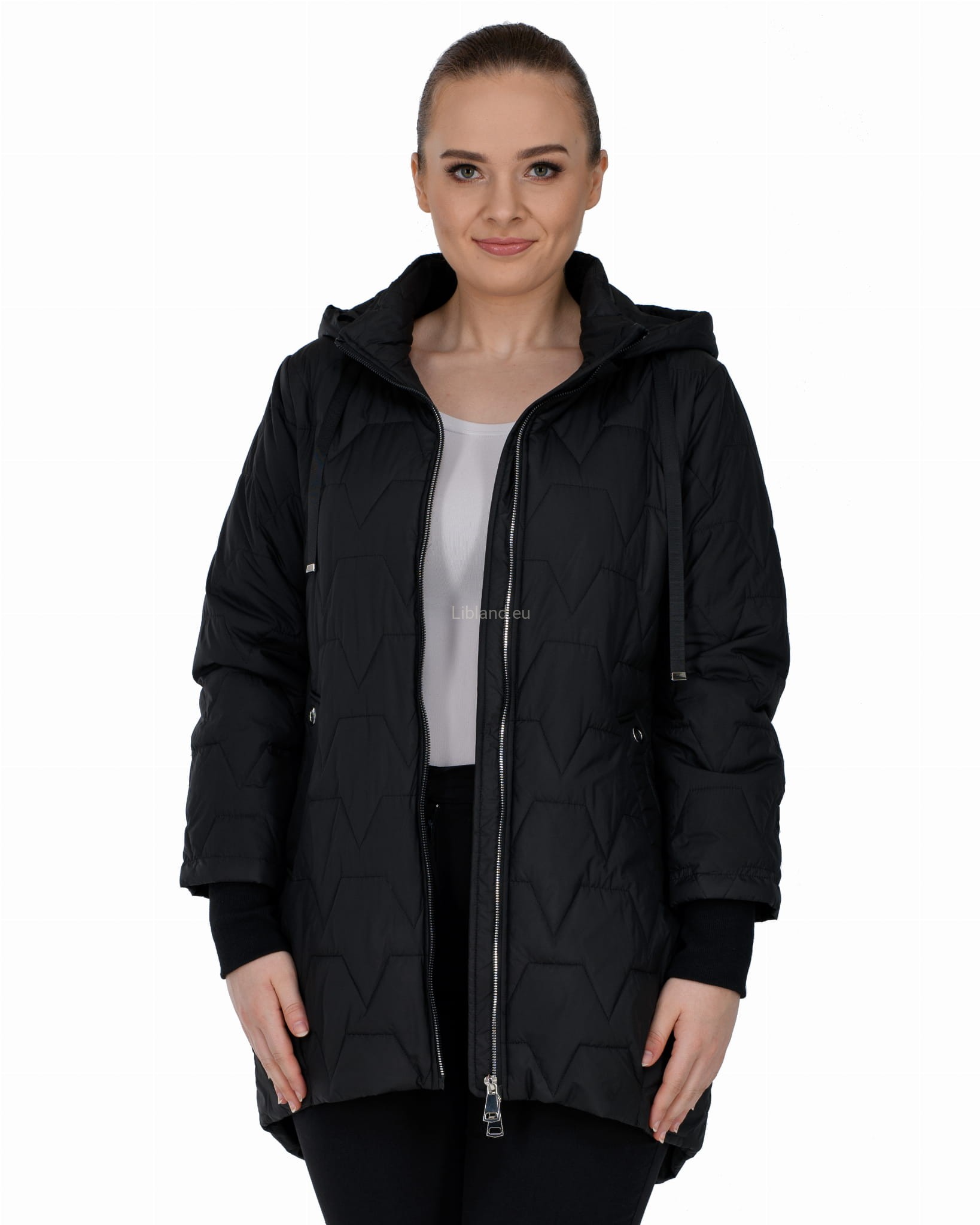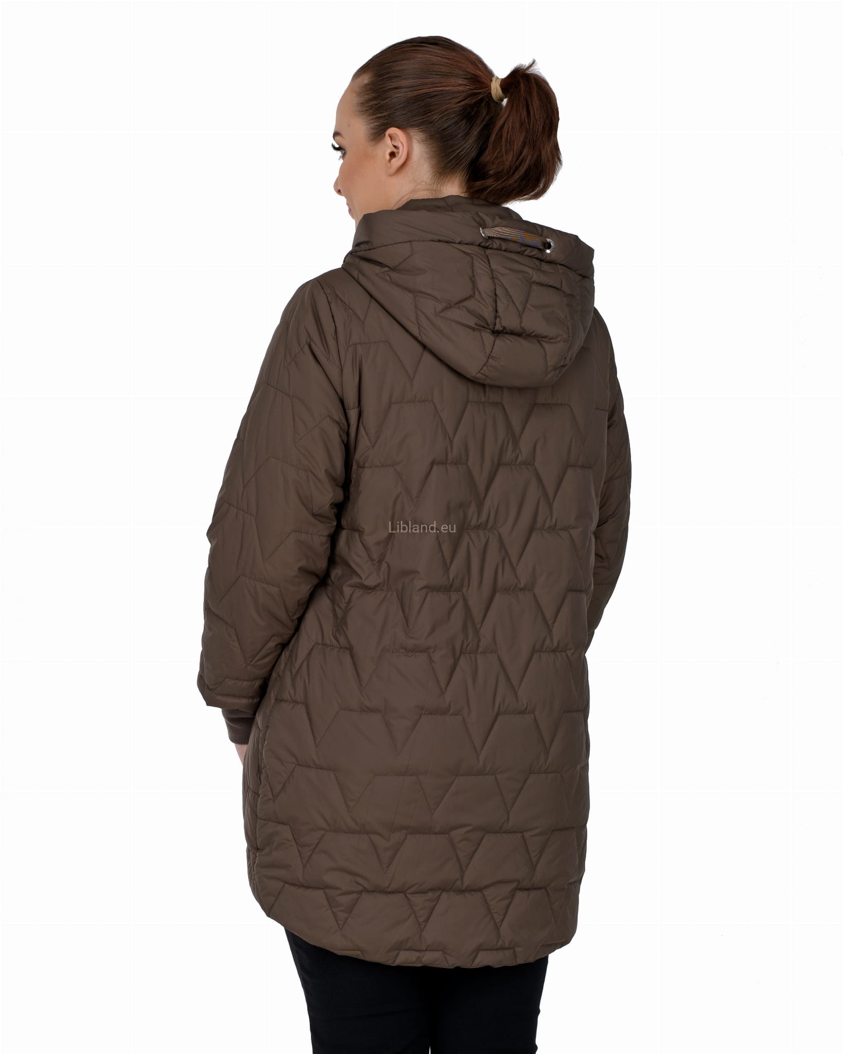 Pikowana kurtka damka z odpinanym kapturem i dłuższym tyłem.