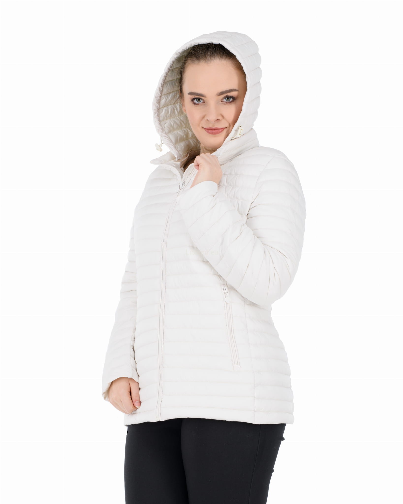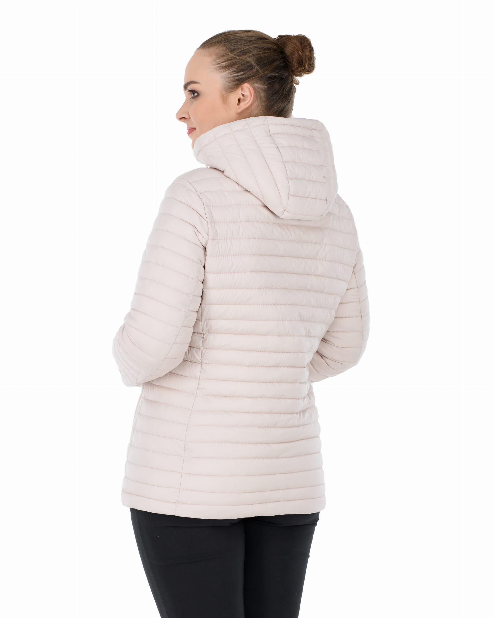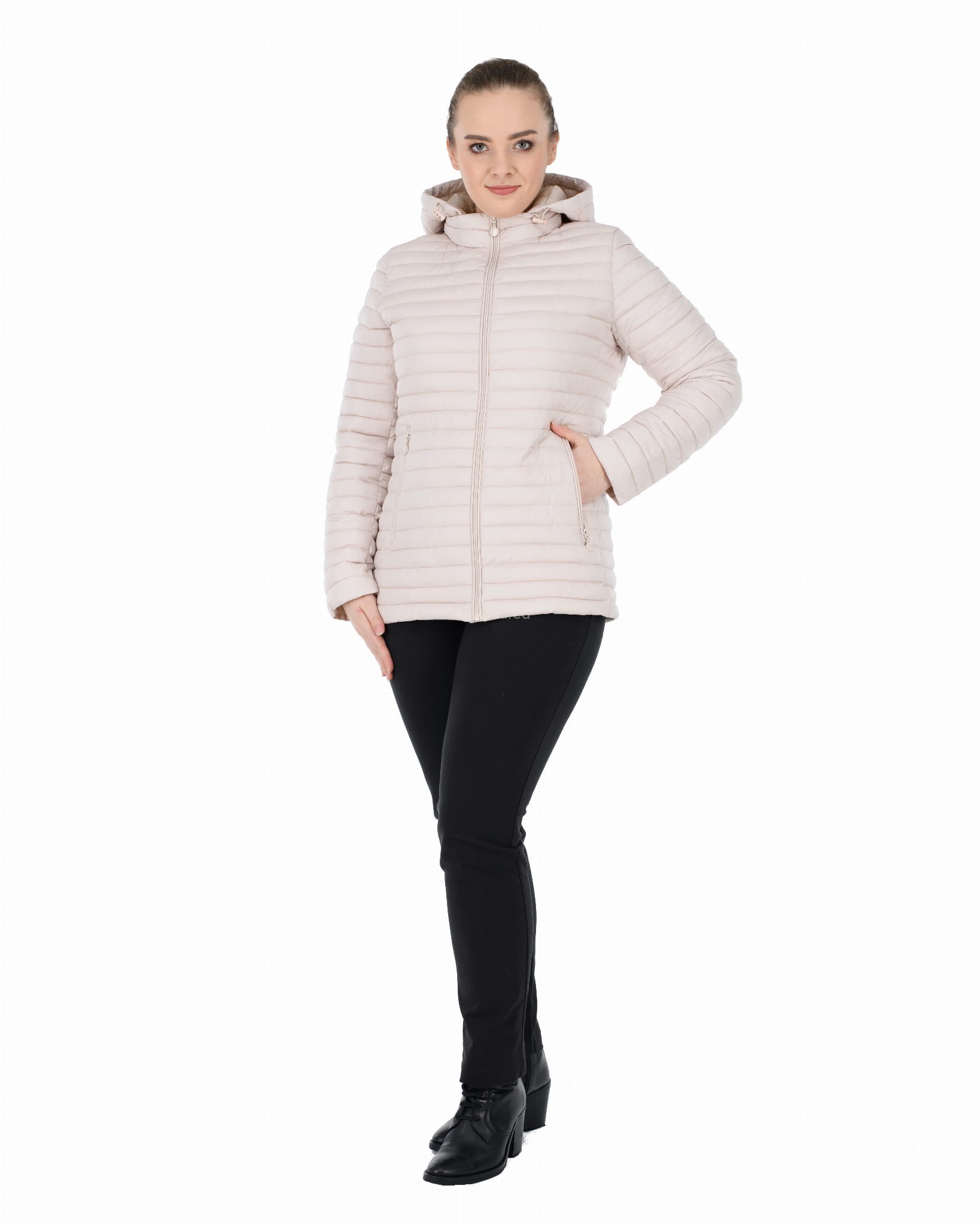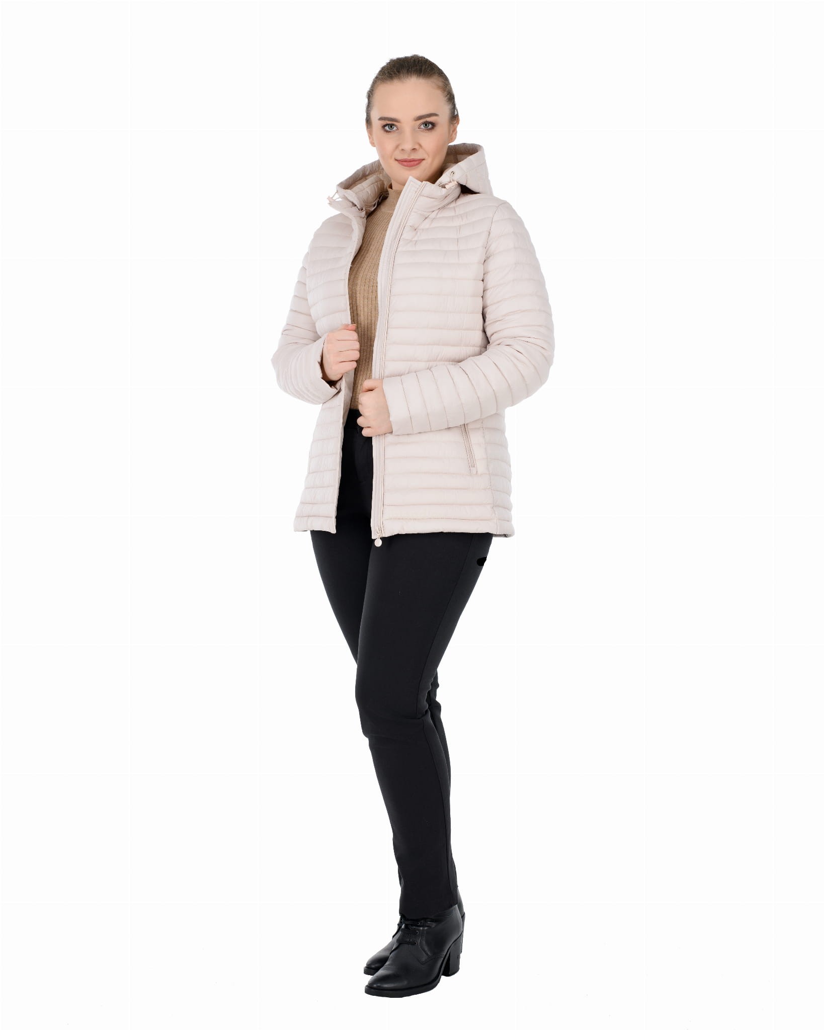- zasuwana na zamek błyskawiczny w kolorze kurtki, który można zasunąć do końca wysokiej stójki, aby chronić się przed wiatrem;