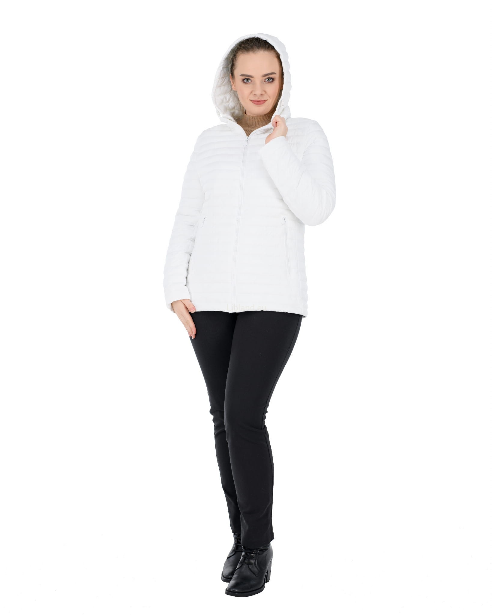 Wygodna kurtka przejściowa wykonana z miękkiego nylonu ze stójką i odpinanym kapturem: