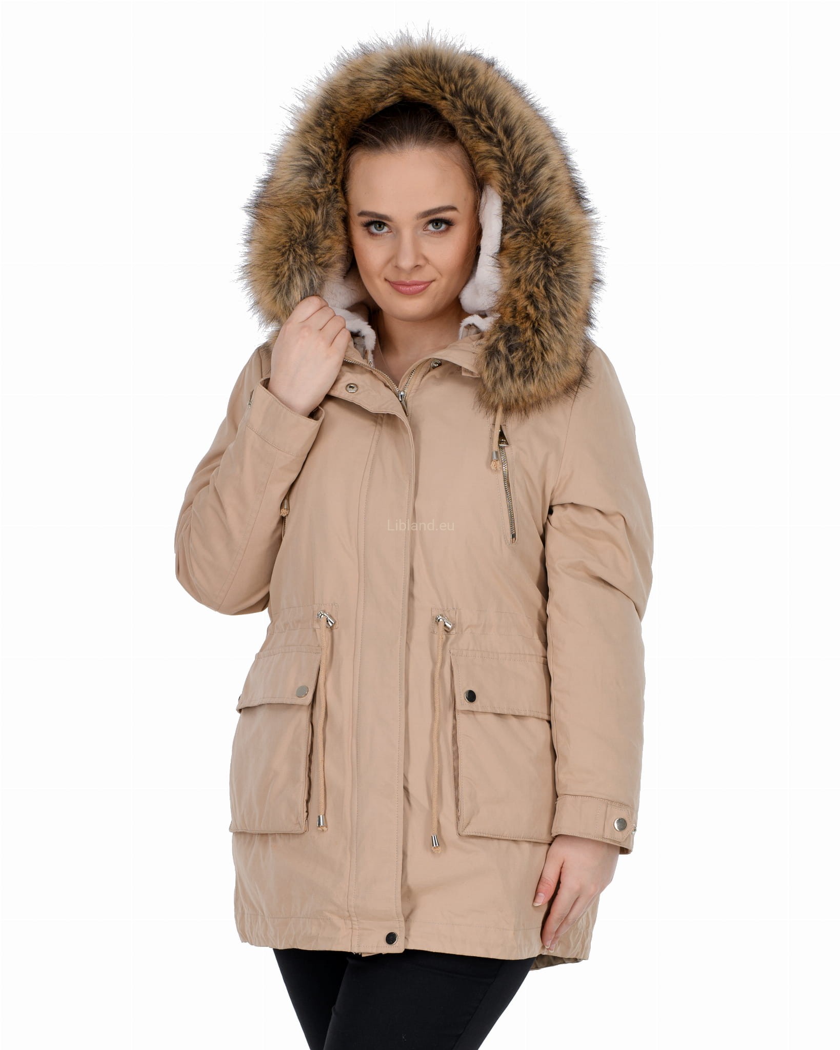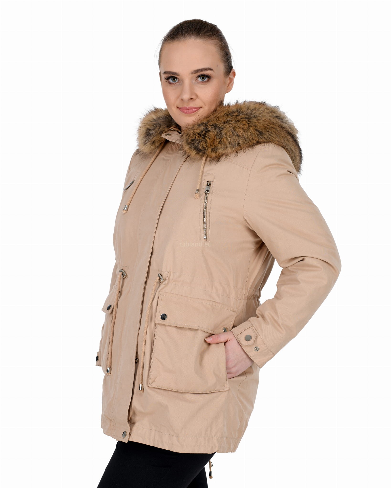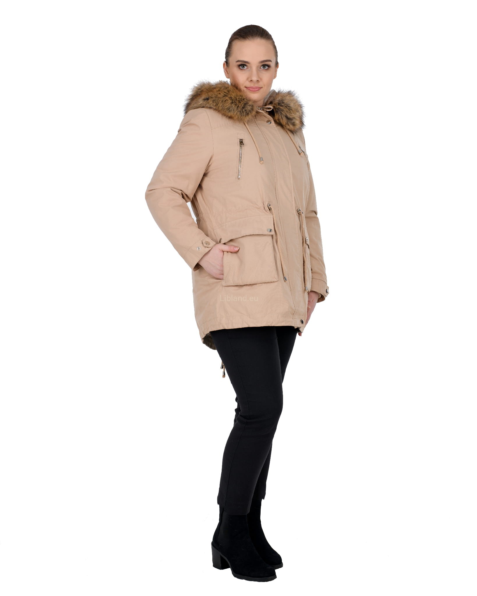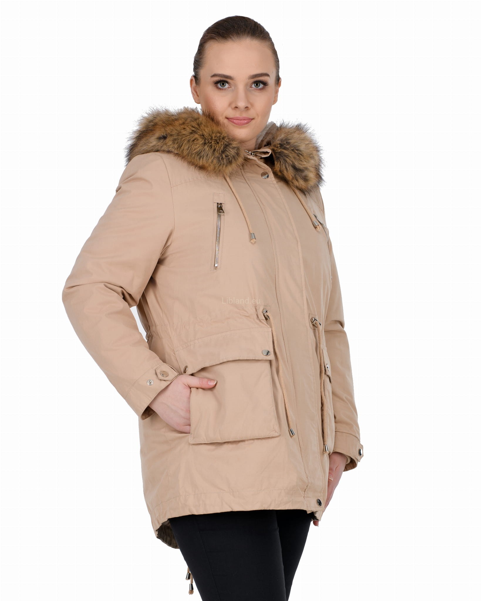 Zimowa kurtka damska parka z odpinaną podpinką z futra i kapturem (odpinana podpinka 2/1).