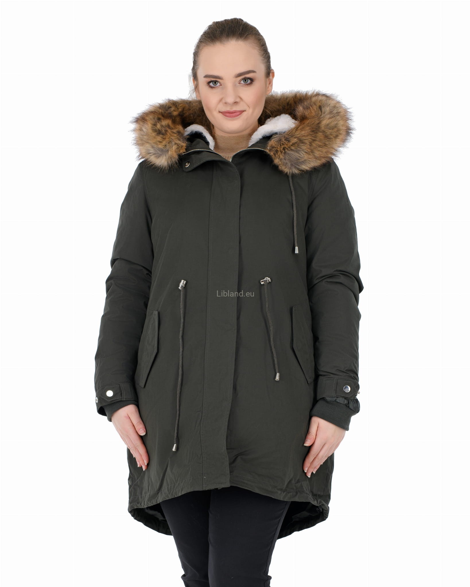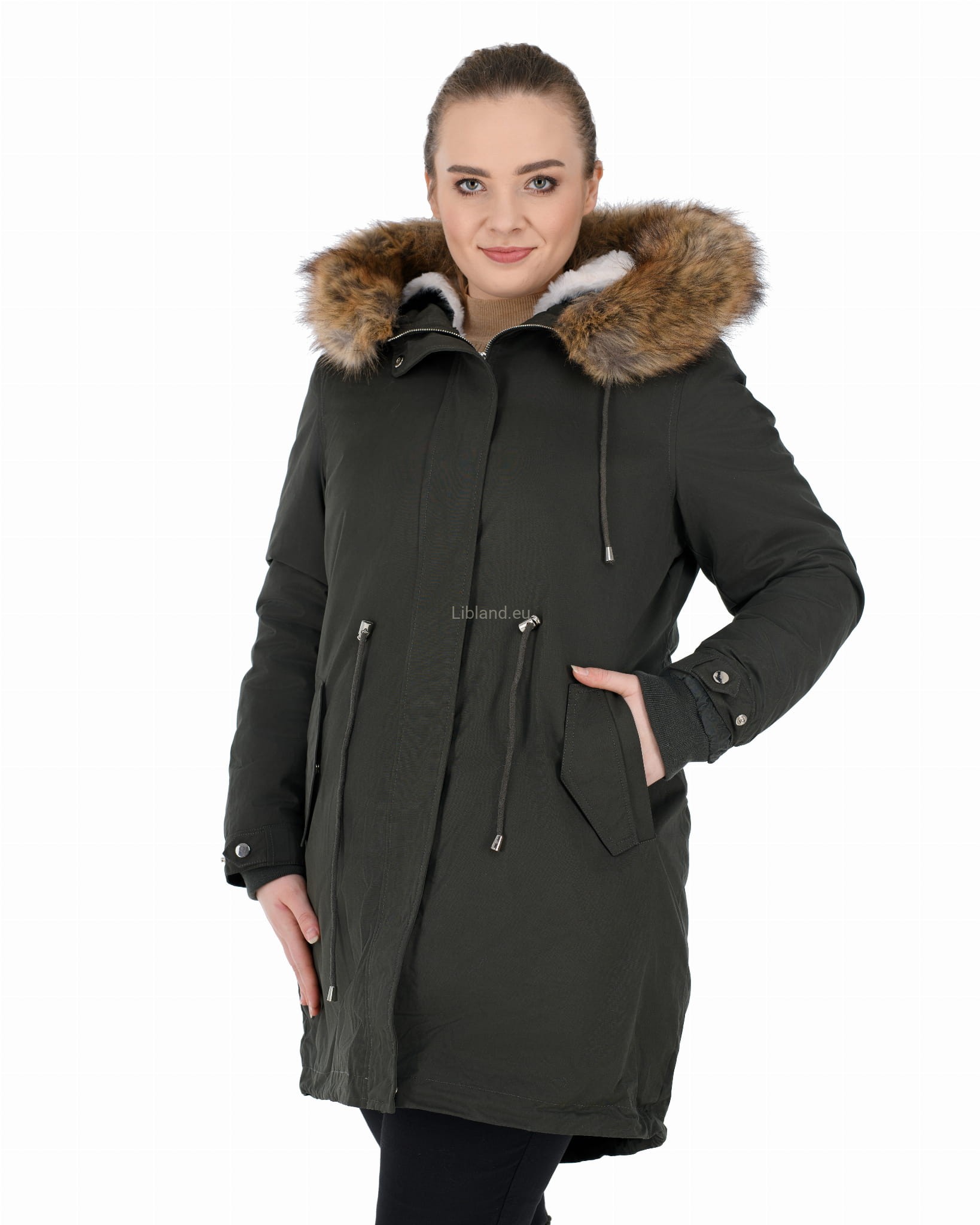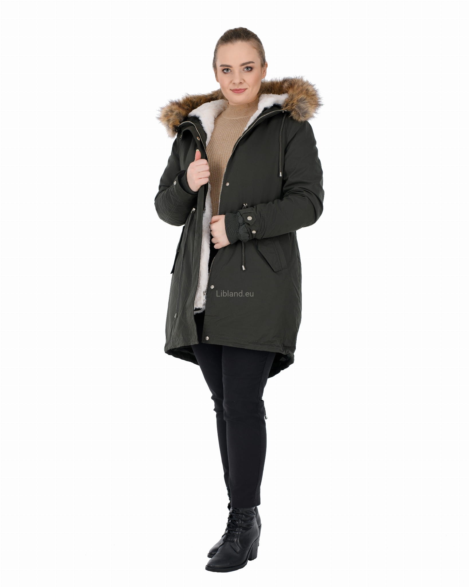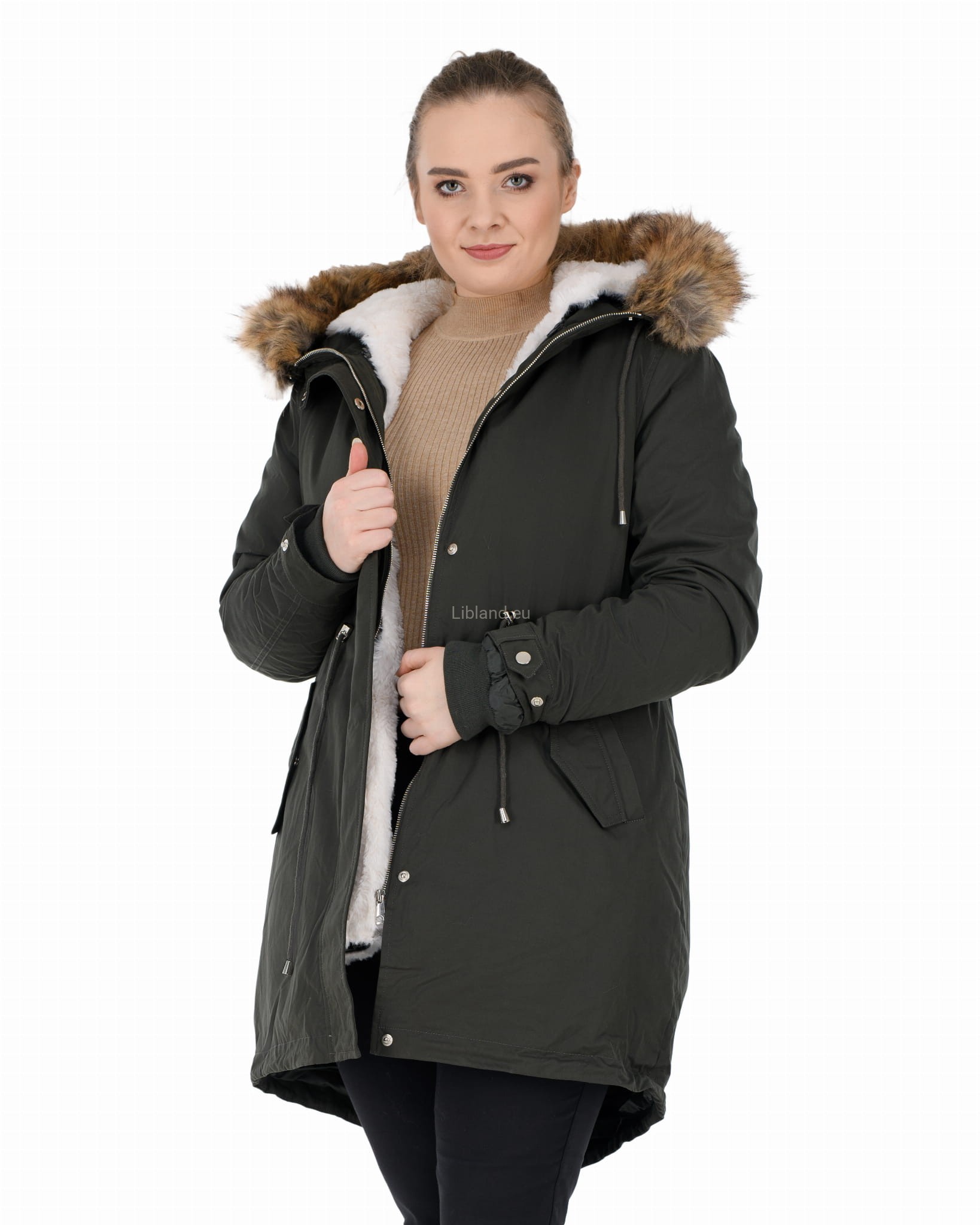 - kaptur z dopinanym sztucznym futerkiem, które można nosić z futrzana podszewką, jak i bez niej;