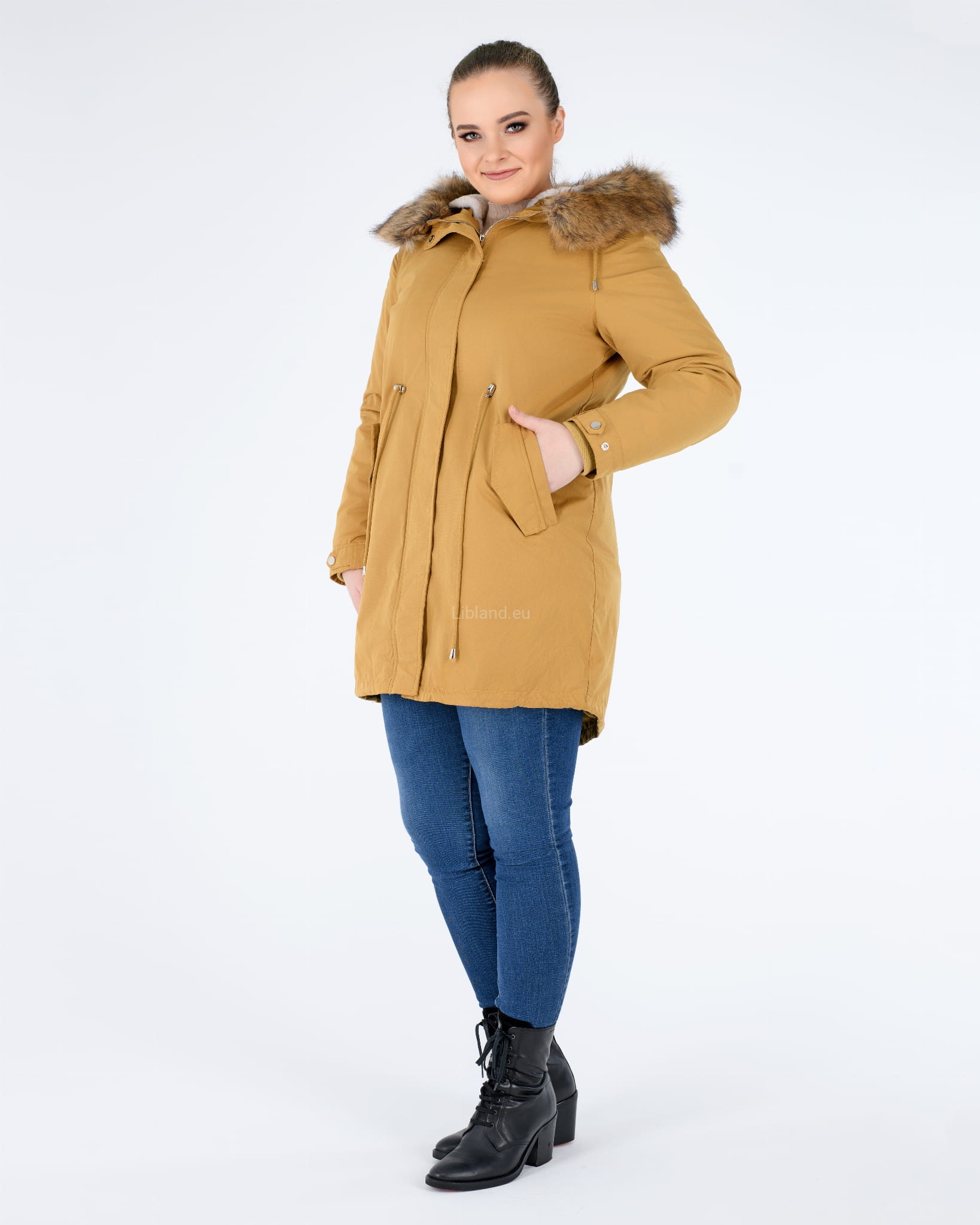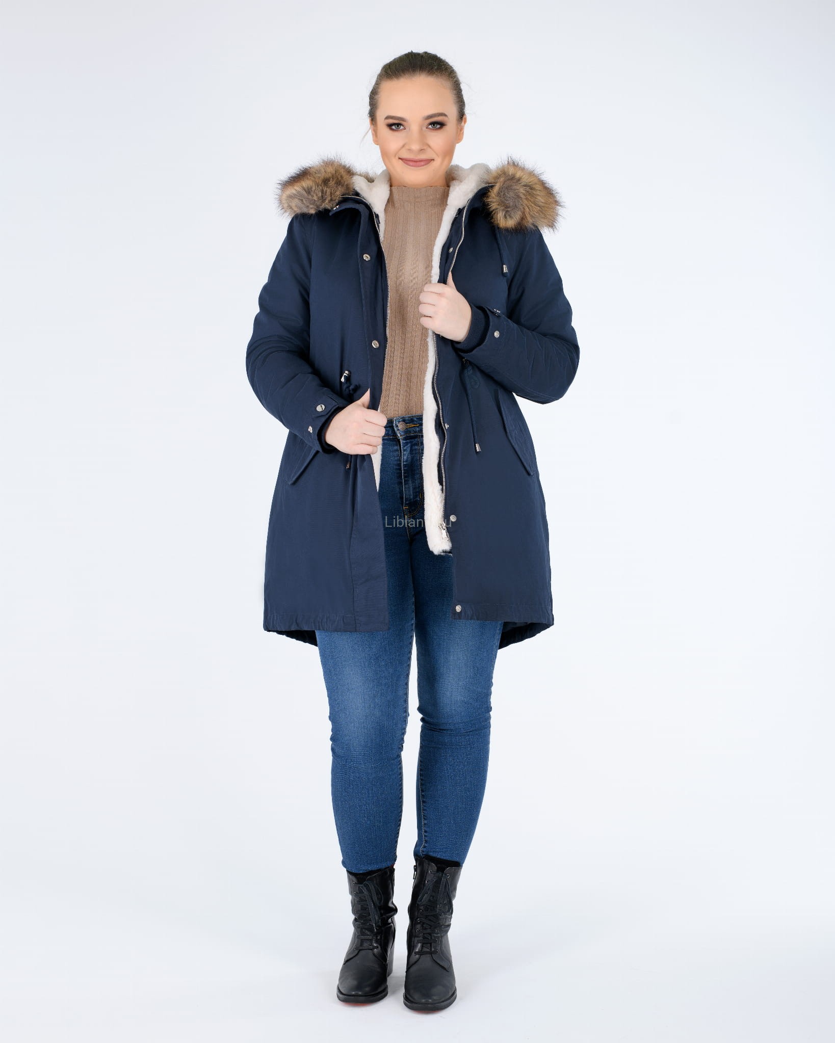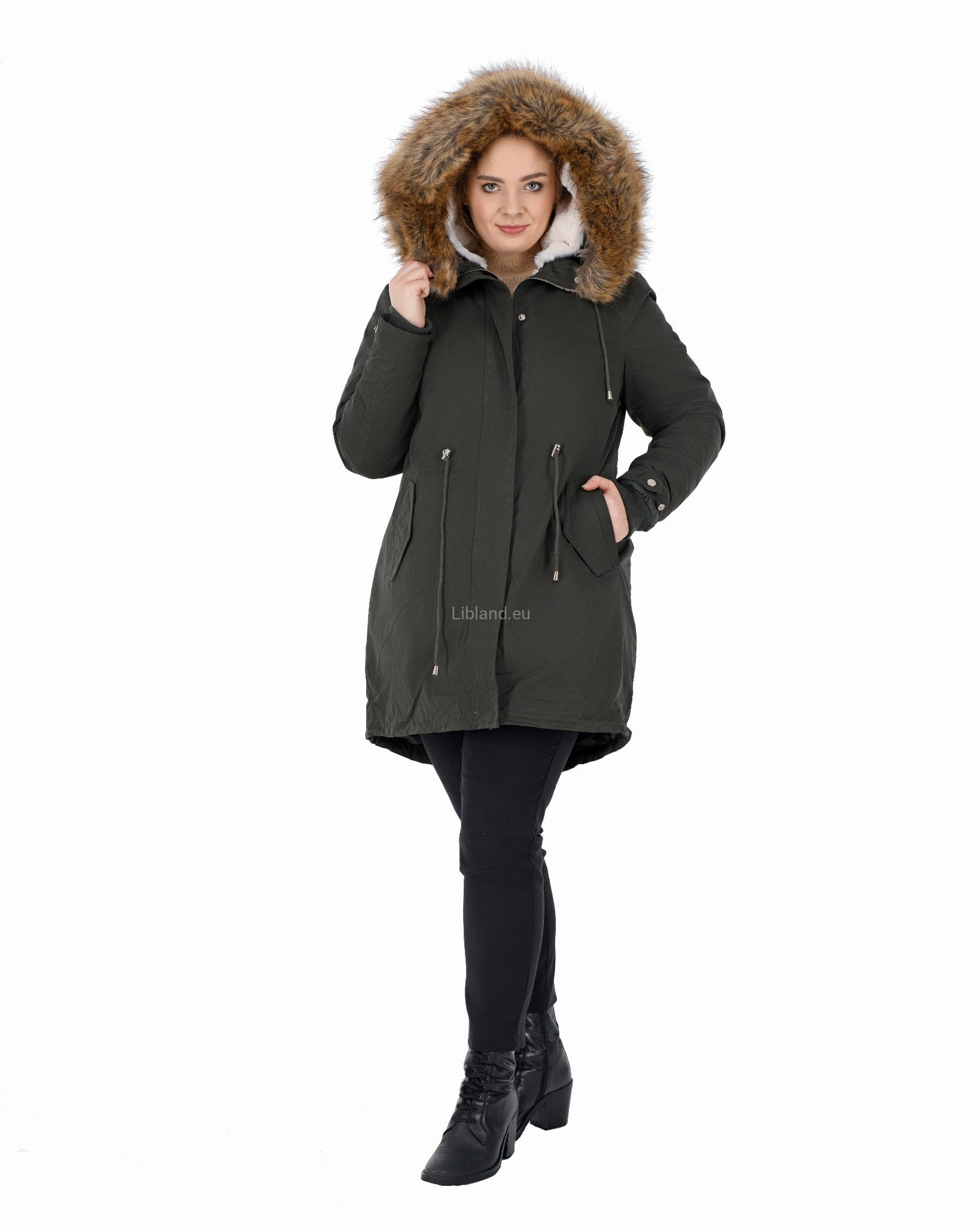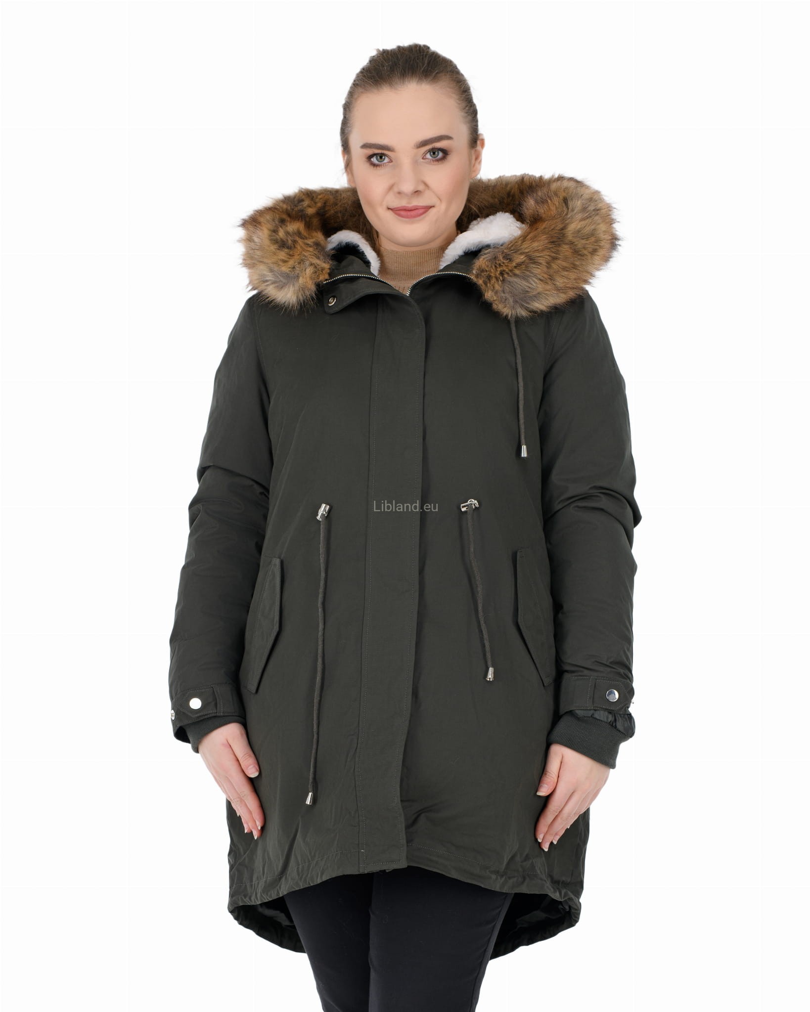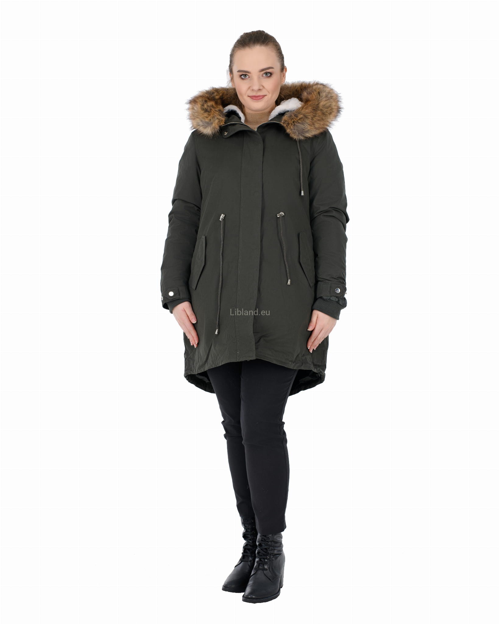- kaptur z dopinanym sztucznym futerkiem, które można nosić z futrzana podszewką, jak i bez niej;