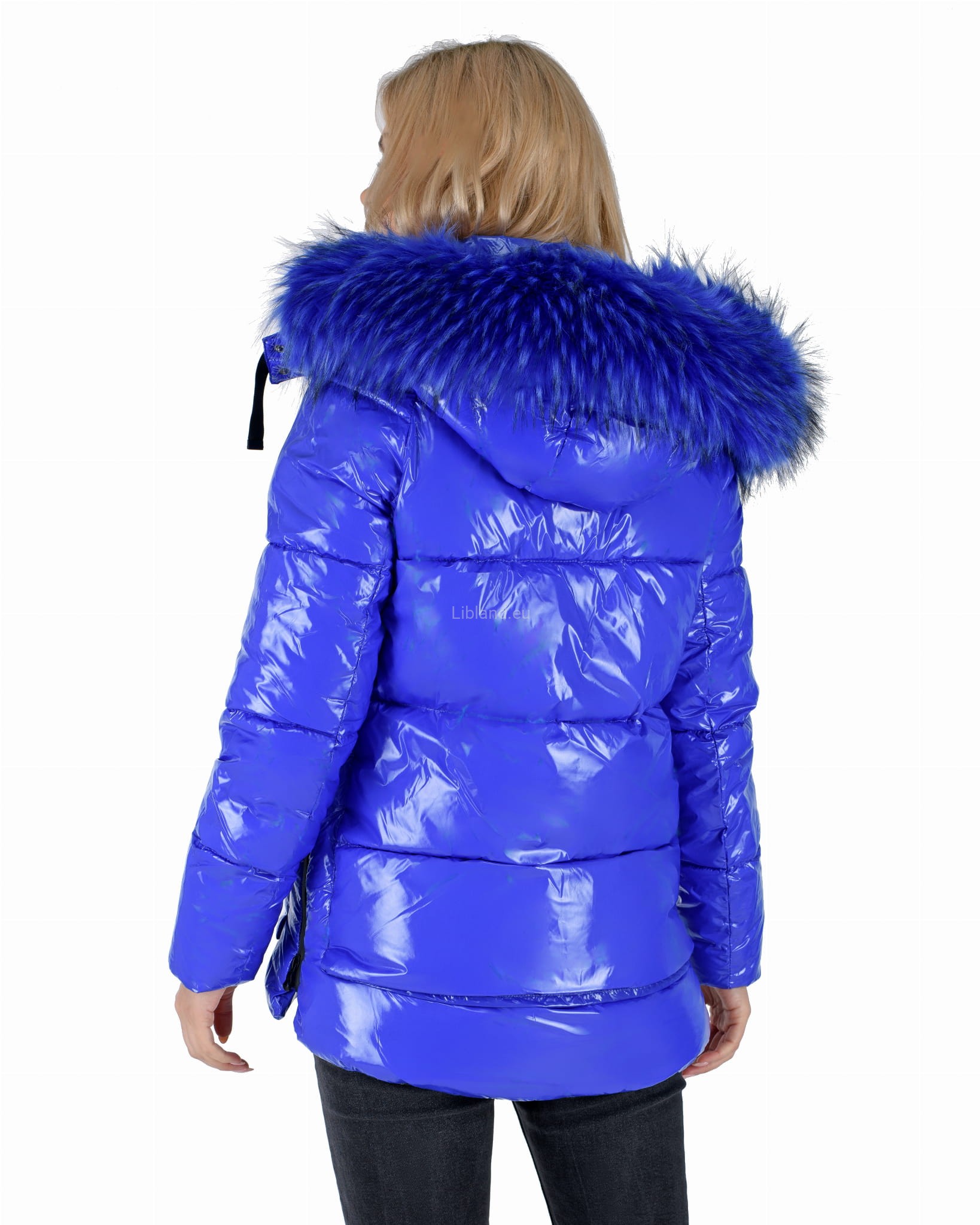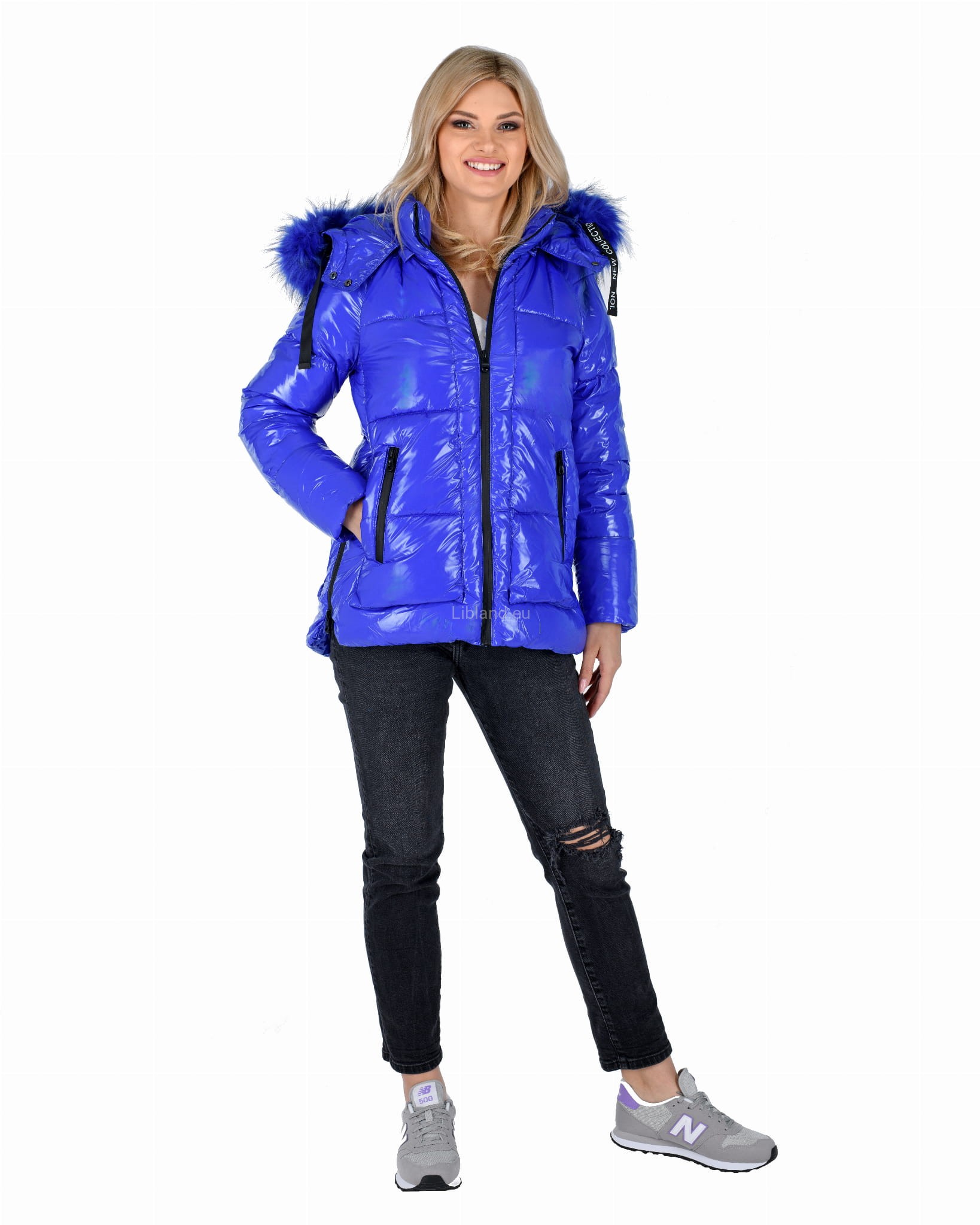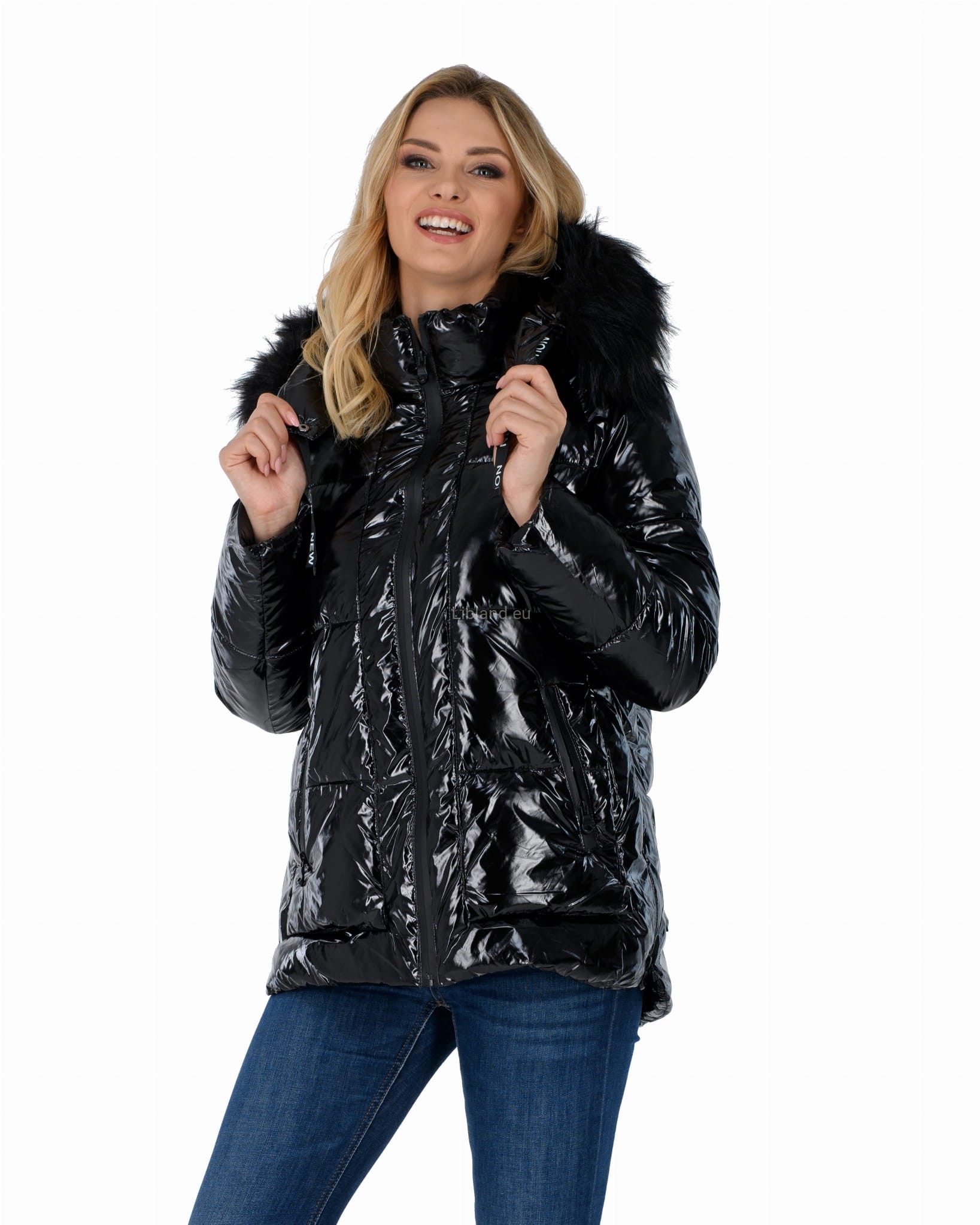 Wodoodporna pikowana kurtka damska z odpinanym kapturem i futerkiem.