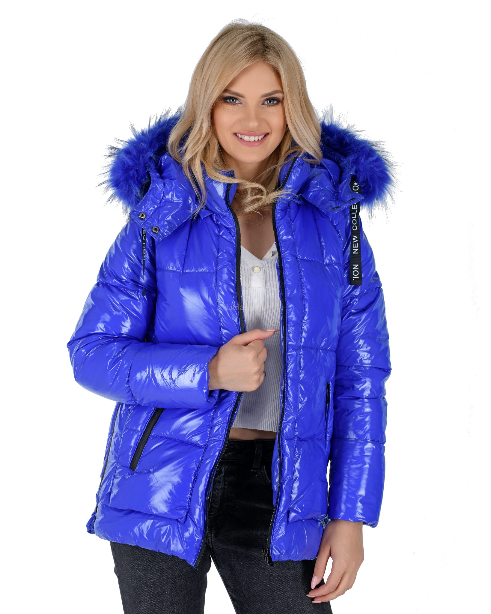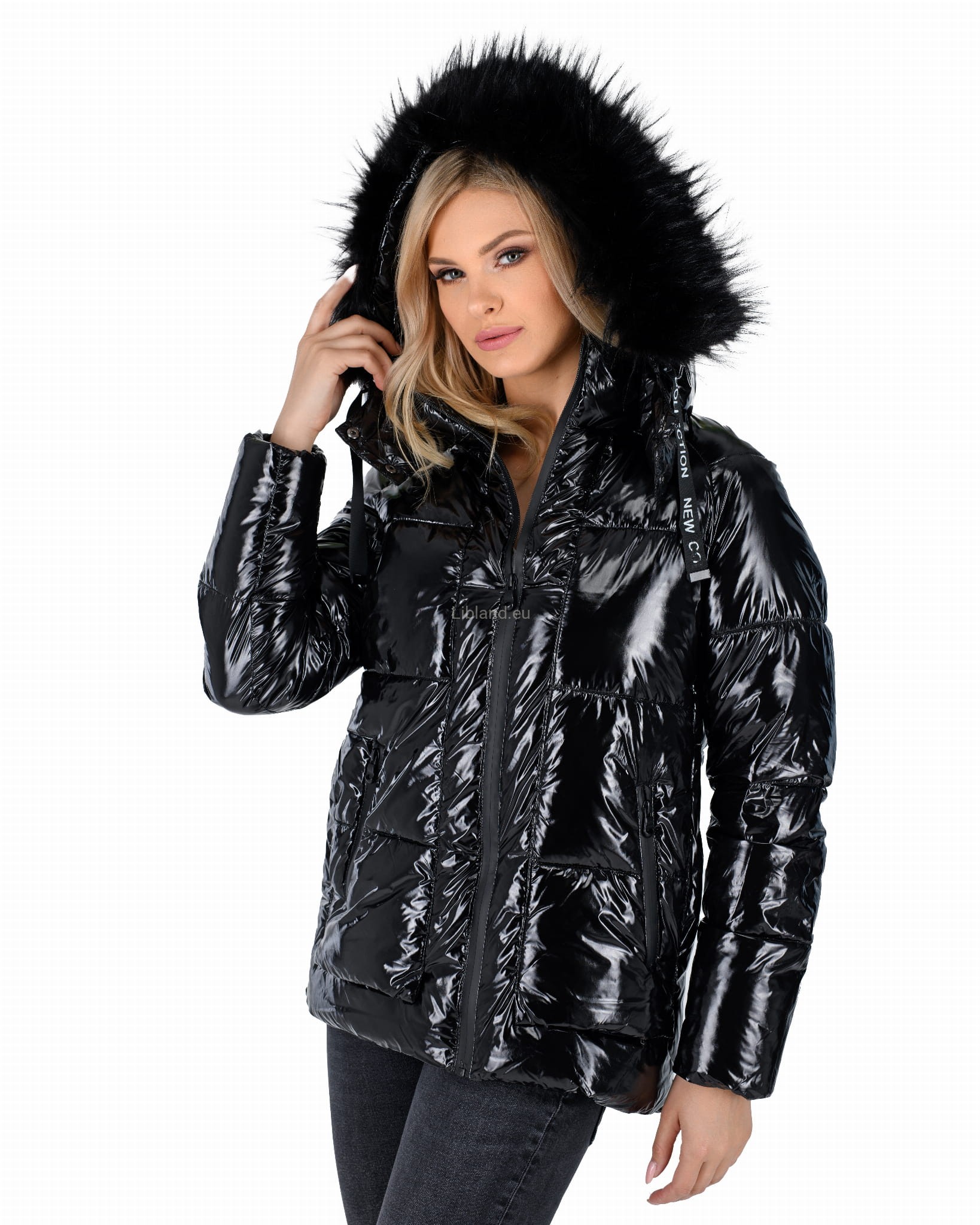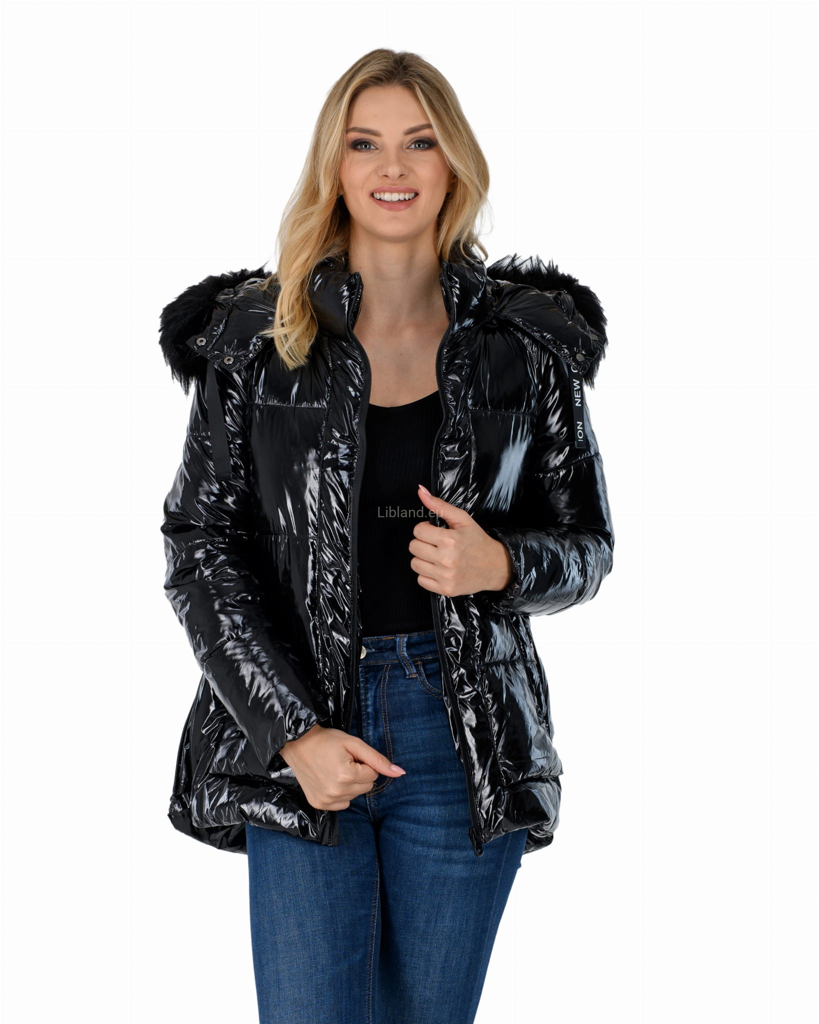 Wodoodporna pikowana kurtka damska z odpinanym kapturem i futerkiem.