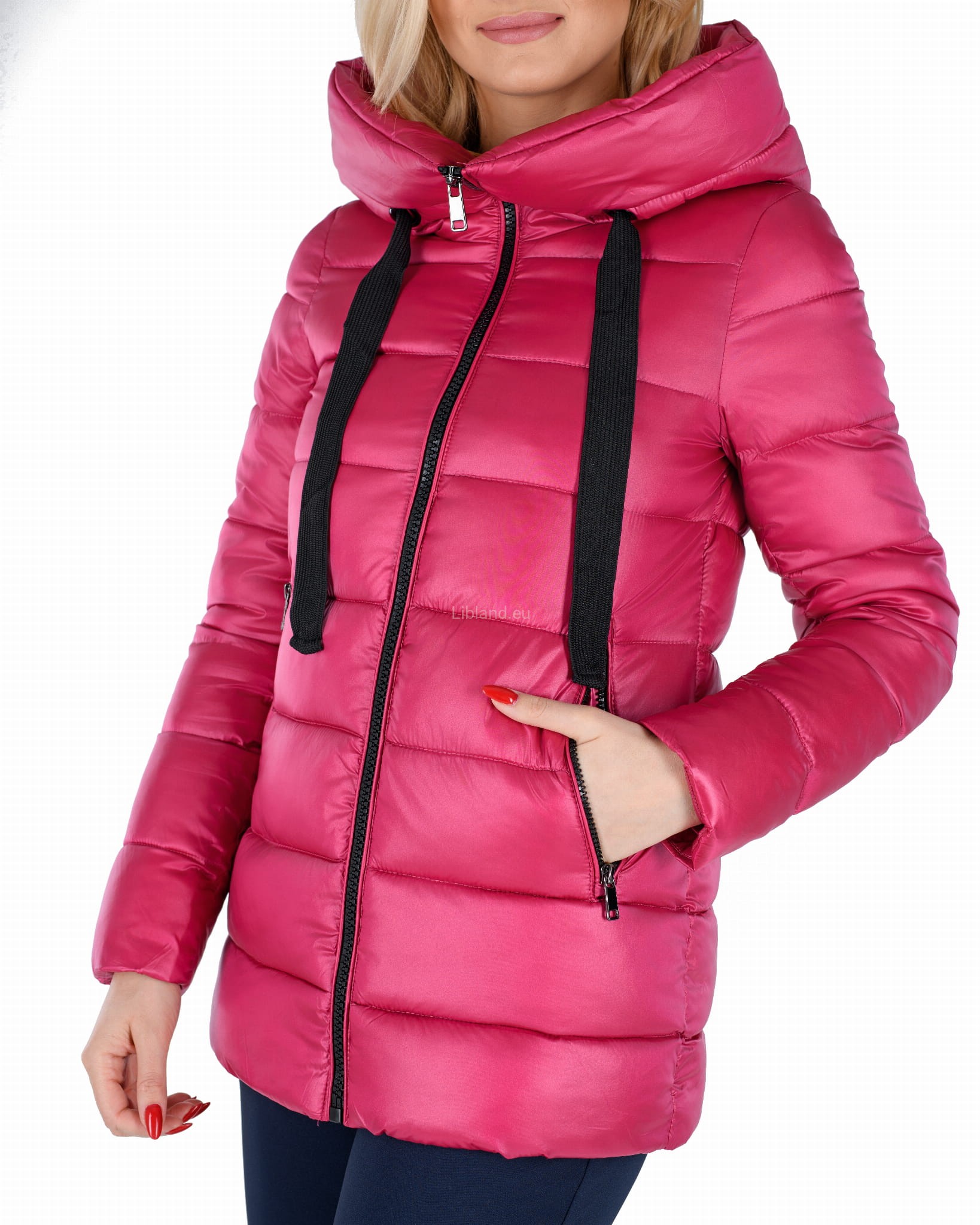 Pikowana kurtka damska z kapturem na ściąganej taśmą stójce.