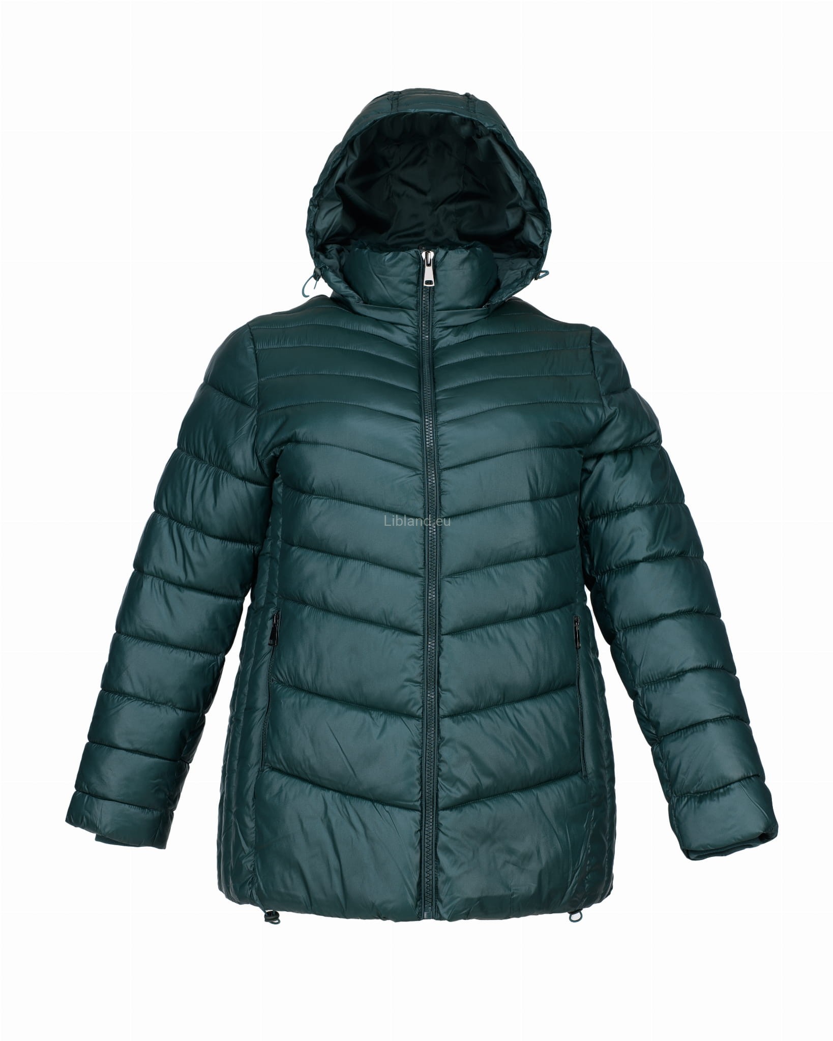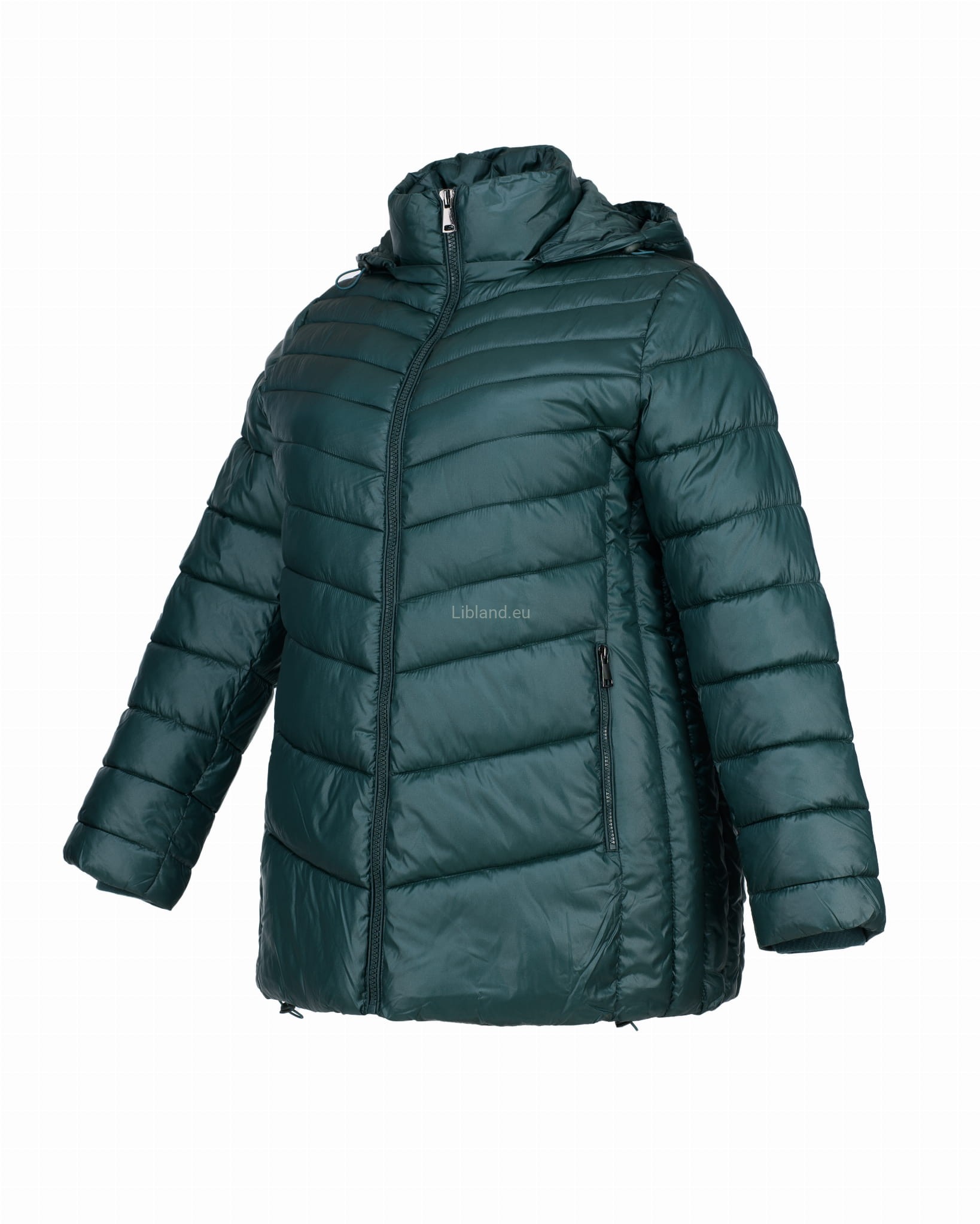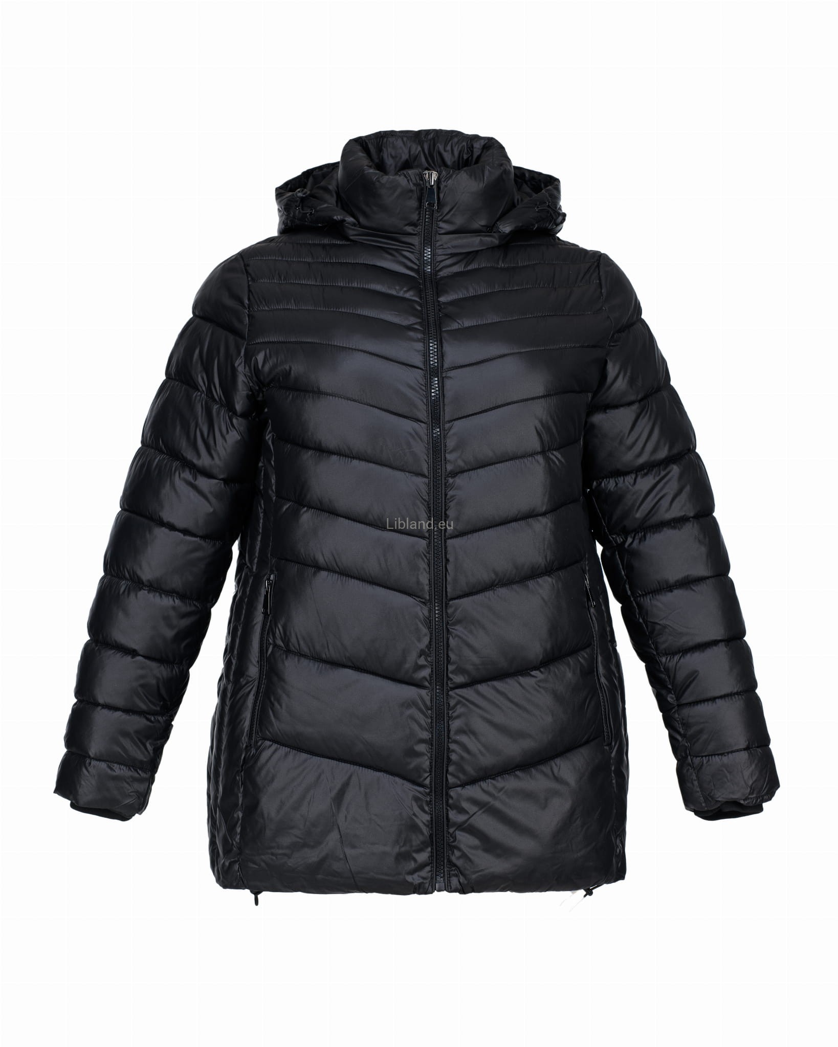 Zimowa kurtka damska o prostym kroju w dużych rozmiarach z odpinanym kapturem.