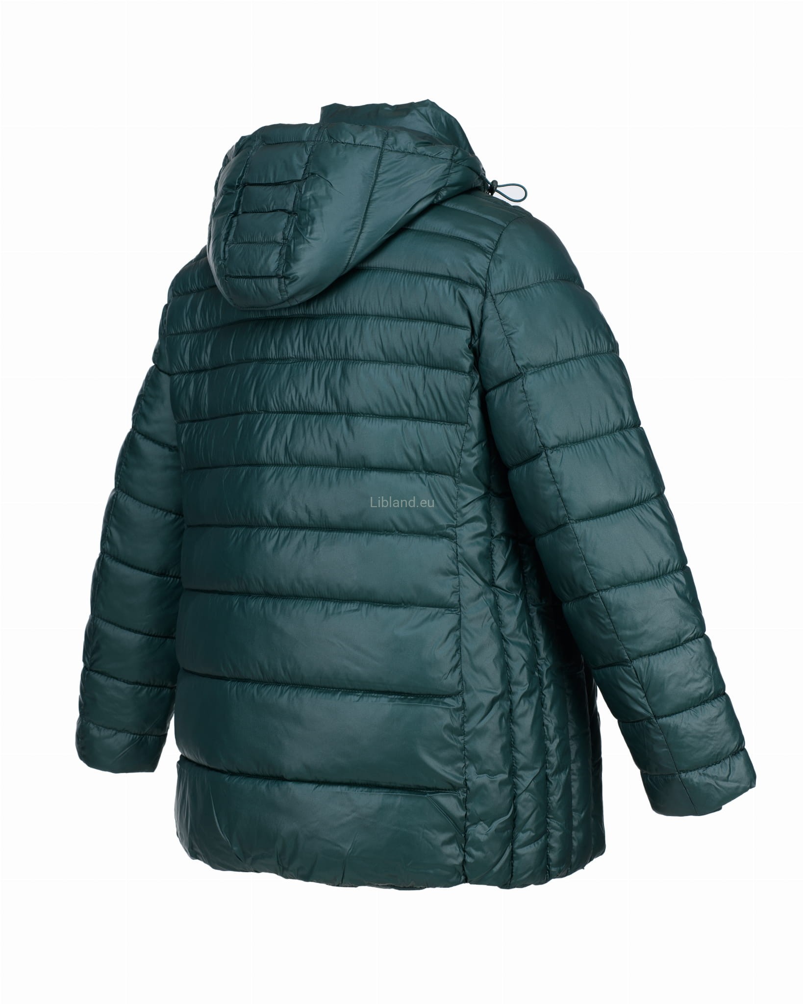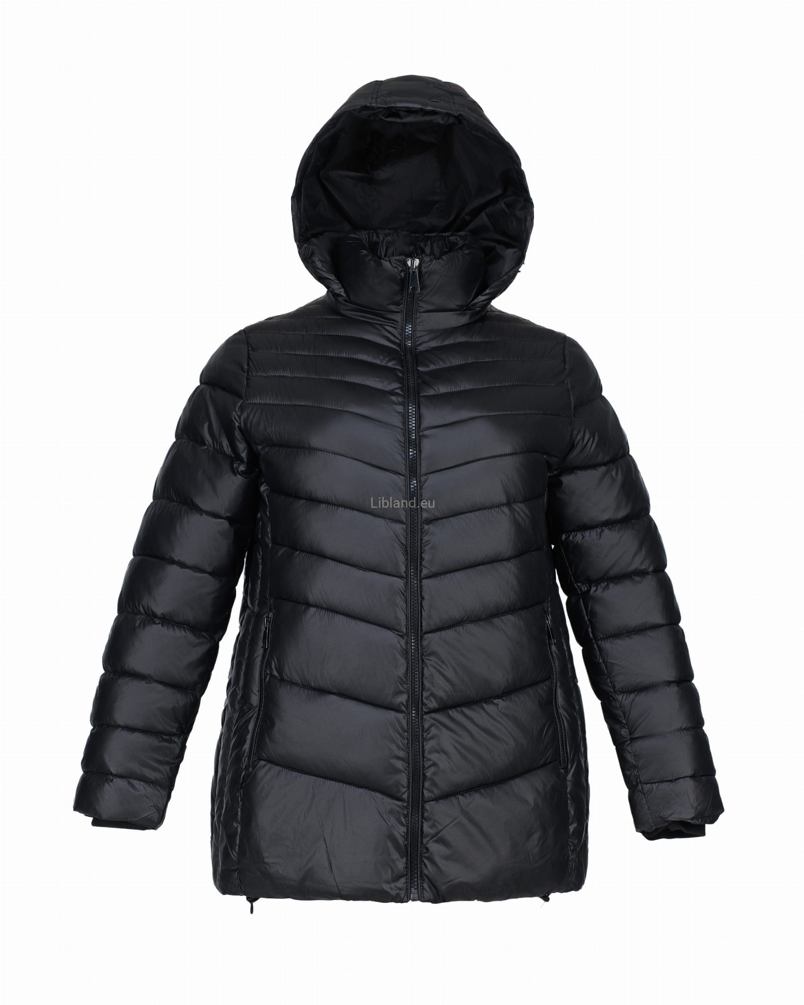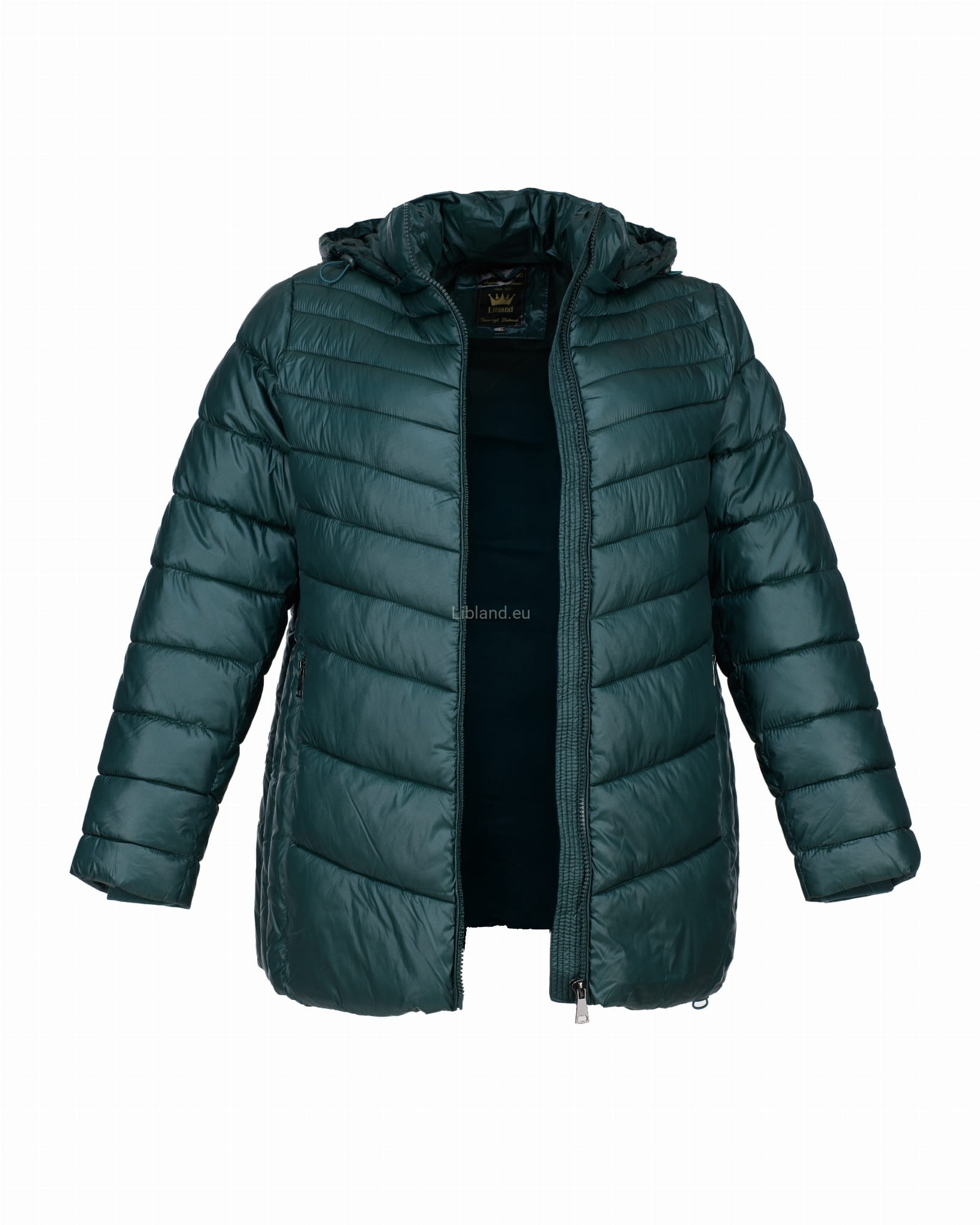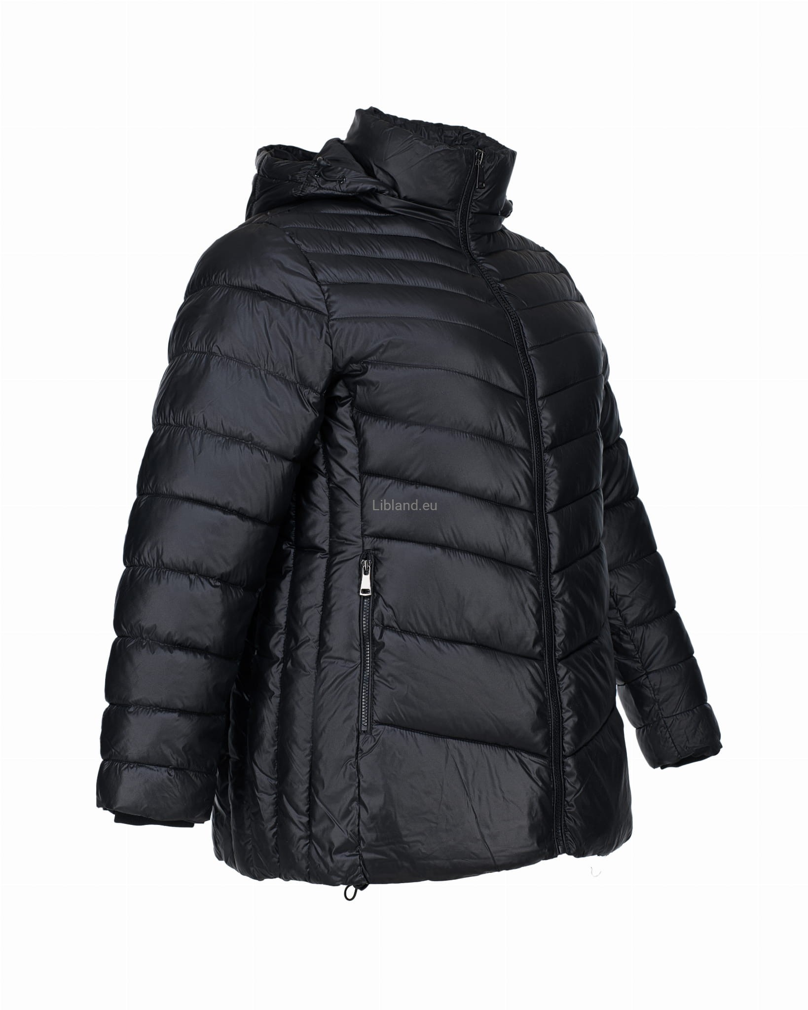 Zimowa kurtka damska o prostym kroju w dużych rozmiarach z odpinanym kapturem.