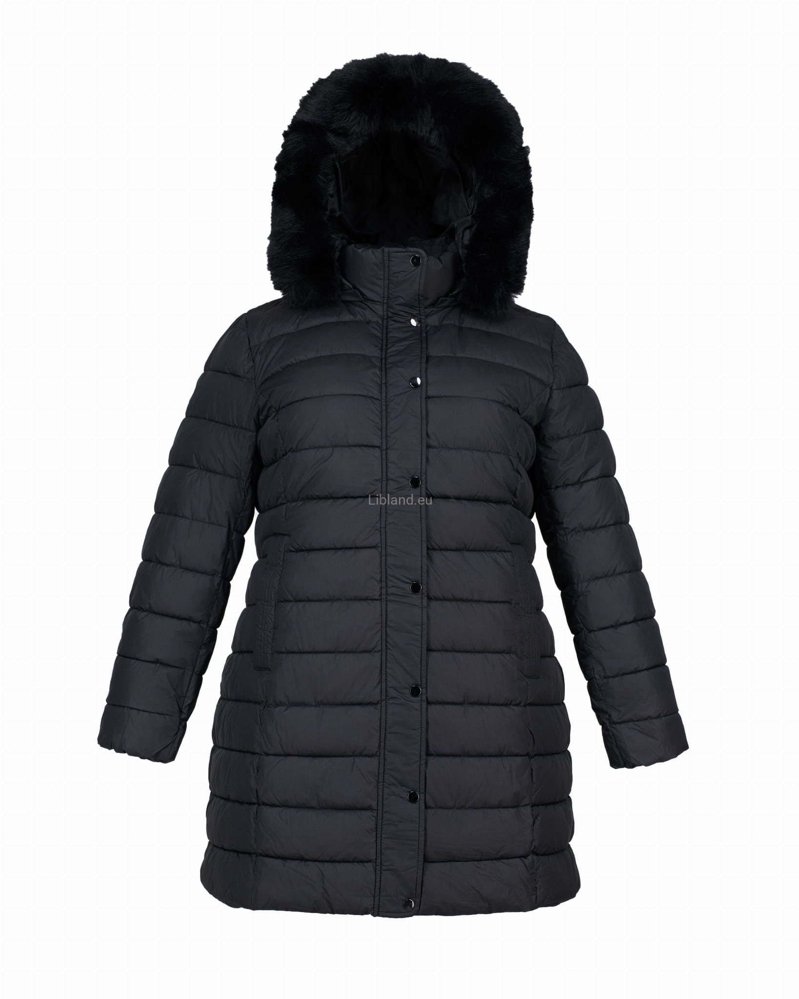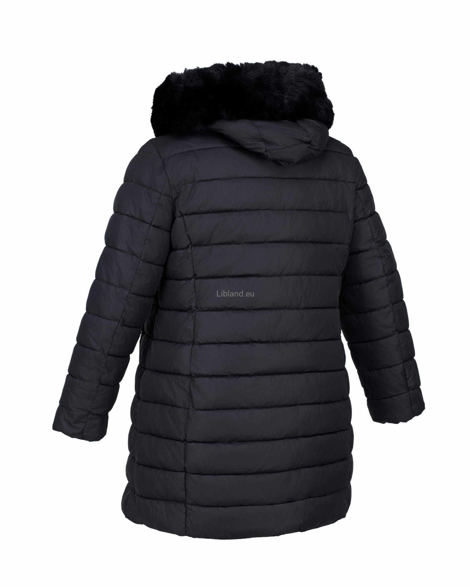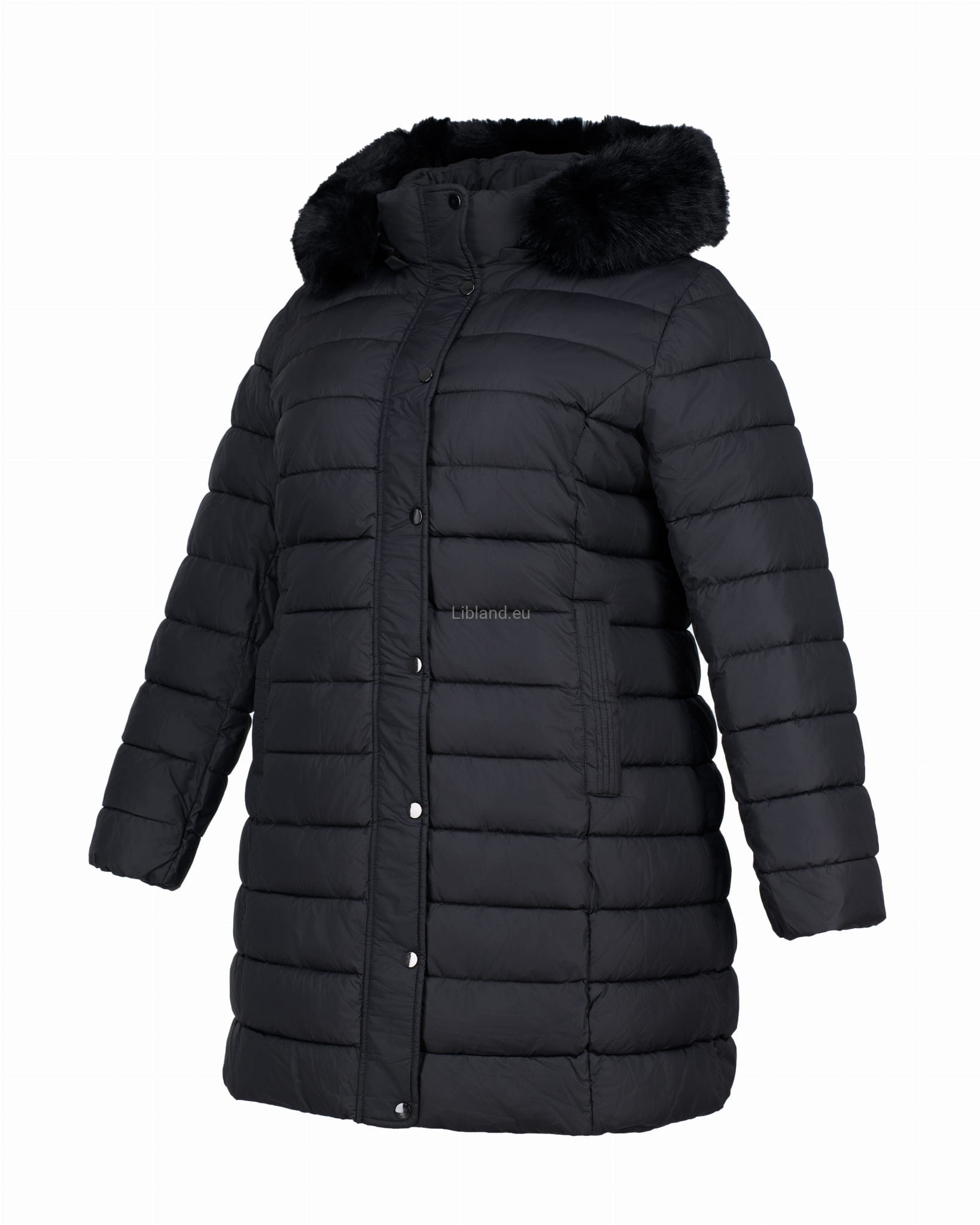 Ocieplany płaszcz w dużych rozmiarach z odpinanym kapturem i futrem.