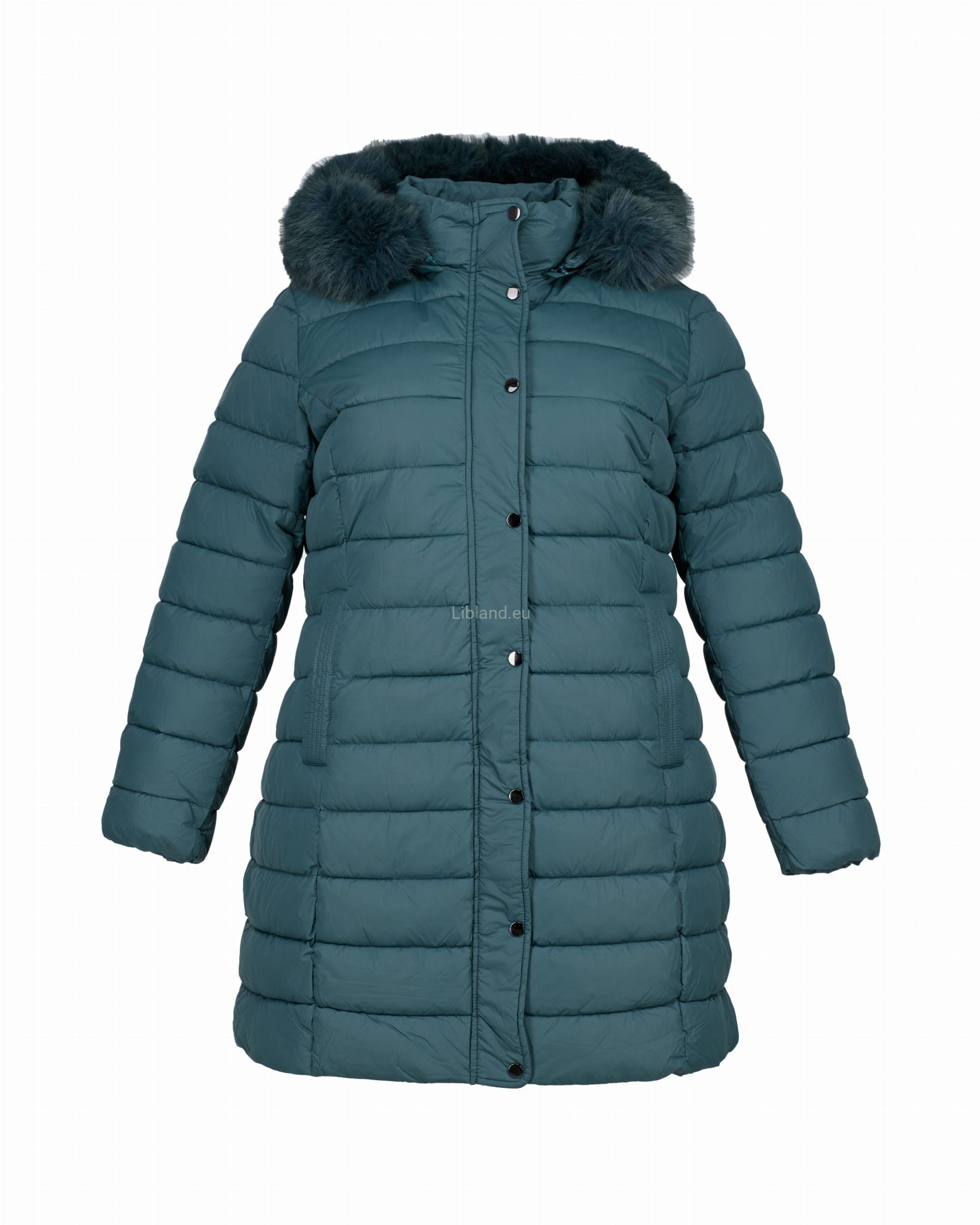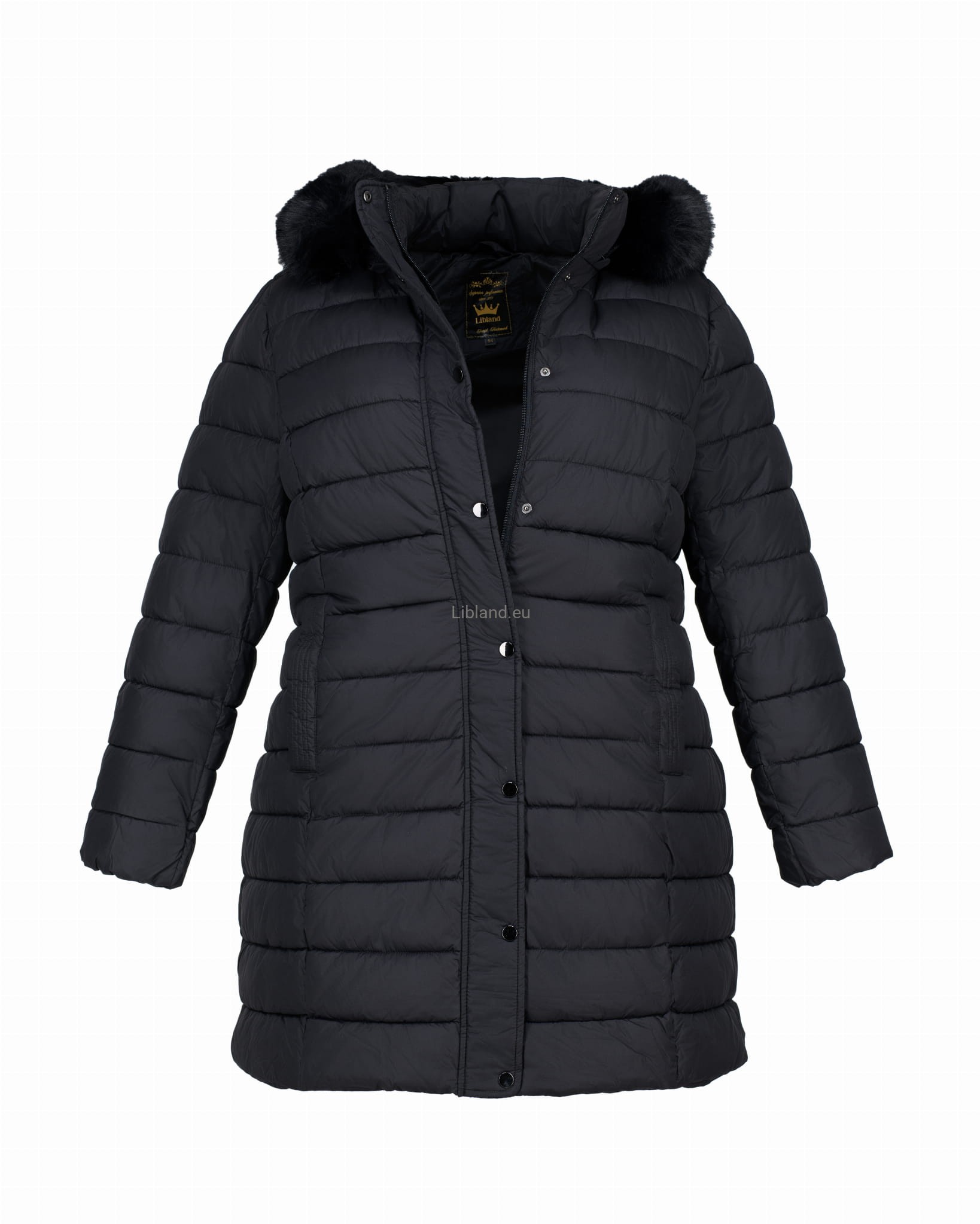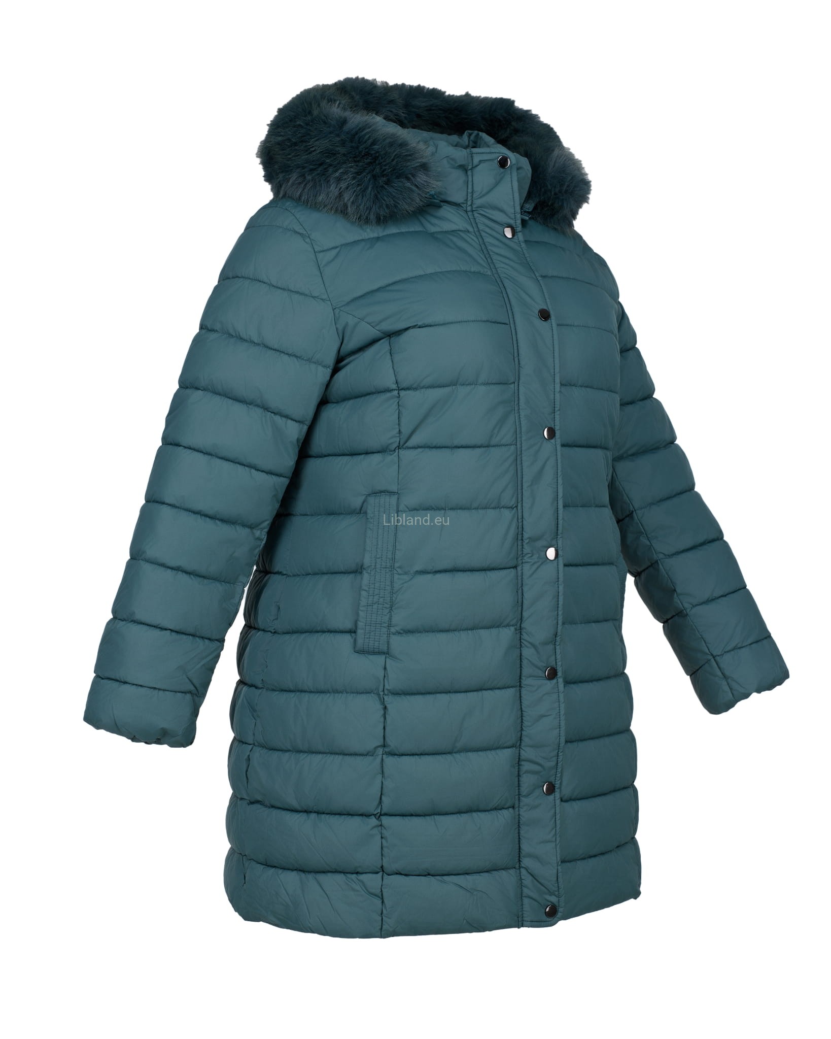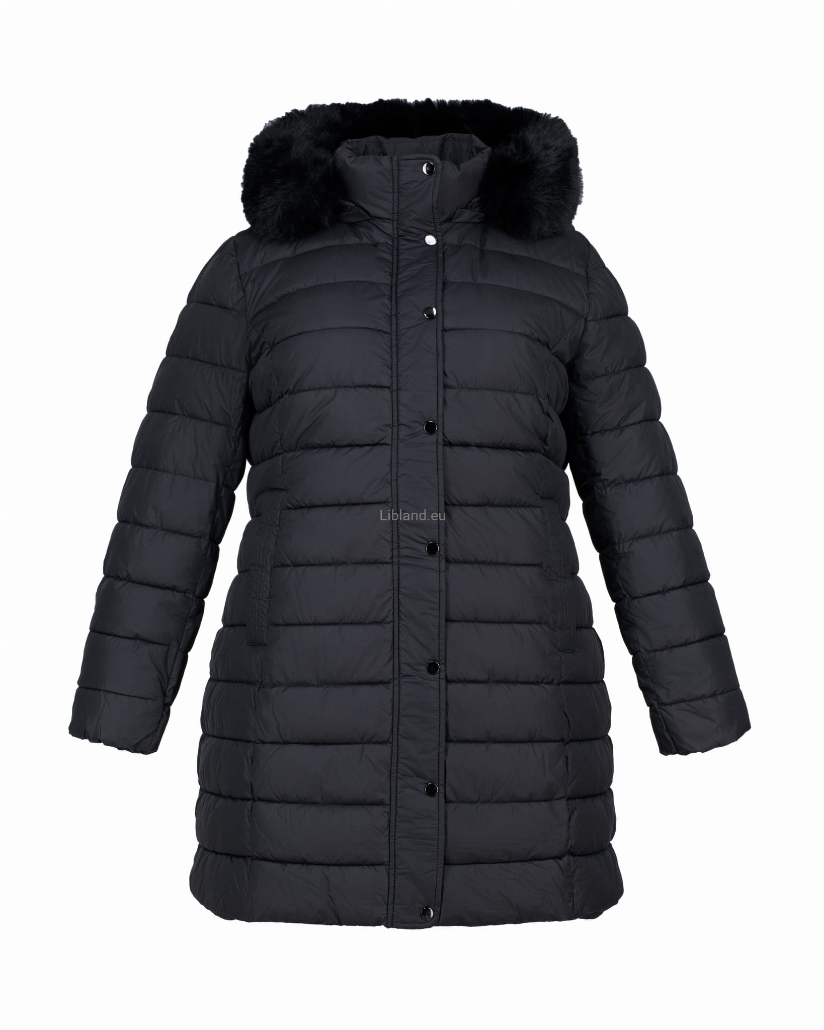 Ocieplany płaszcz w dużych rozmiarach z odpinanym kapturem i futrem.