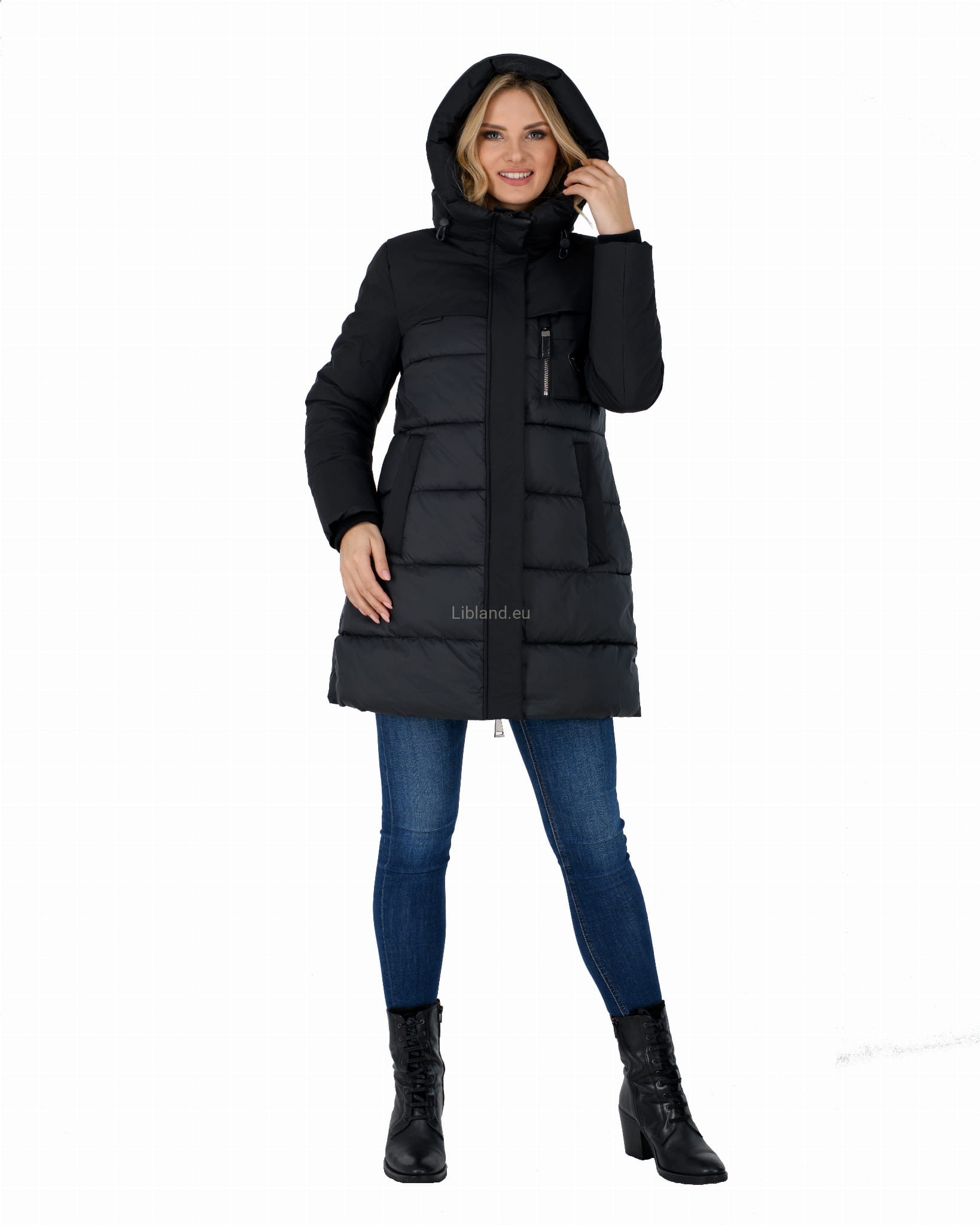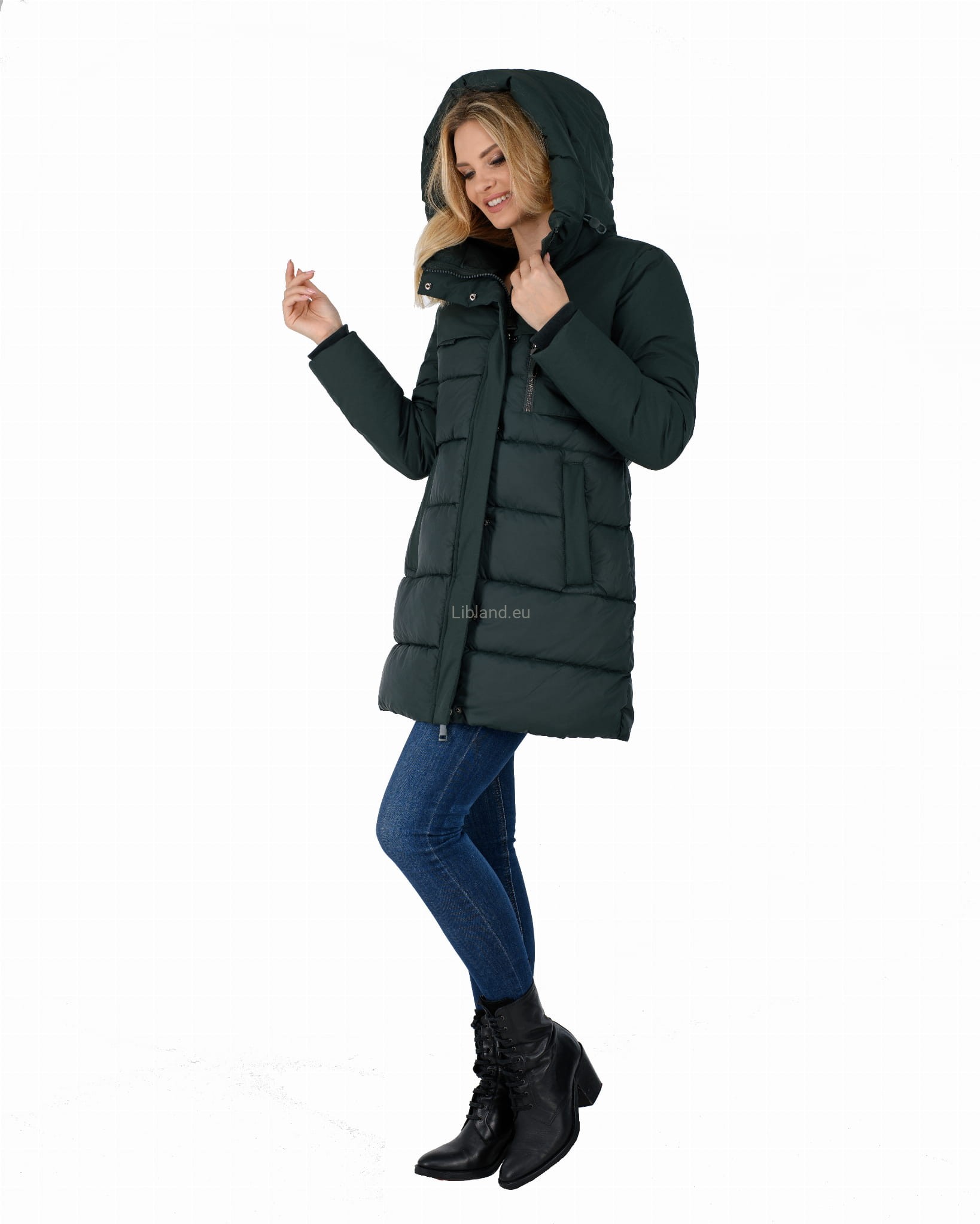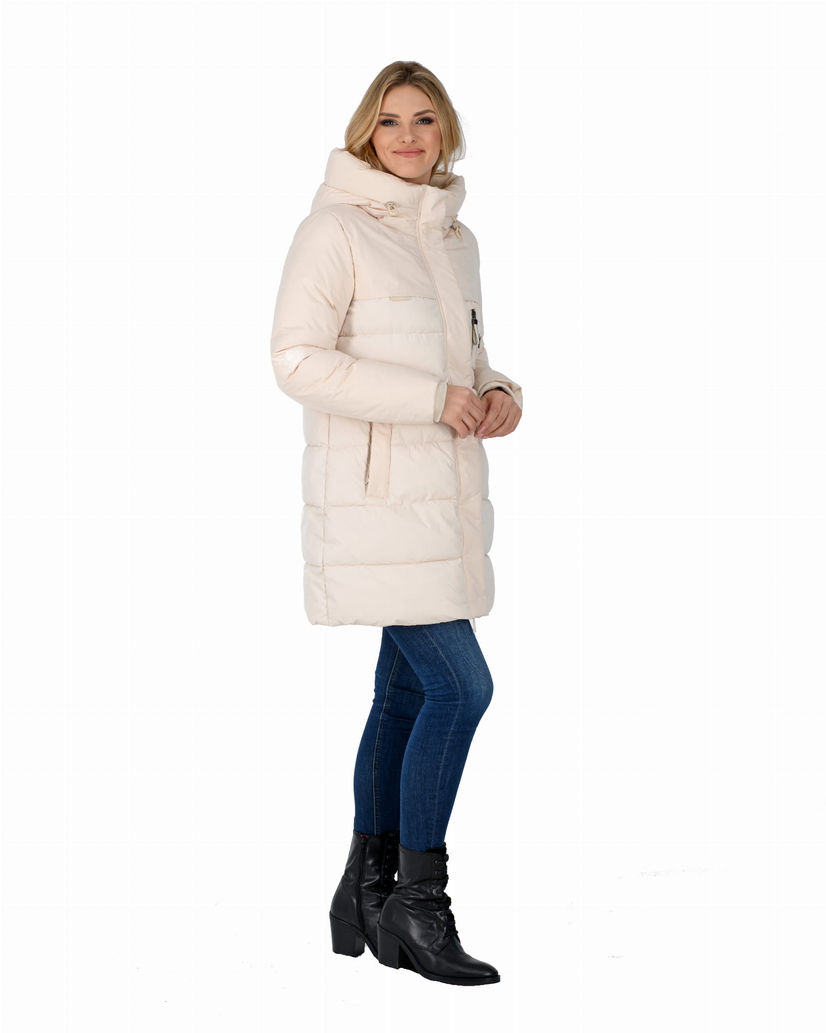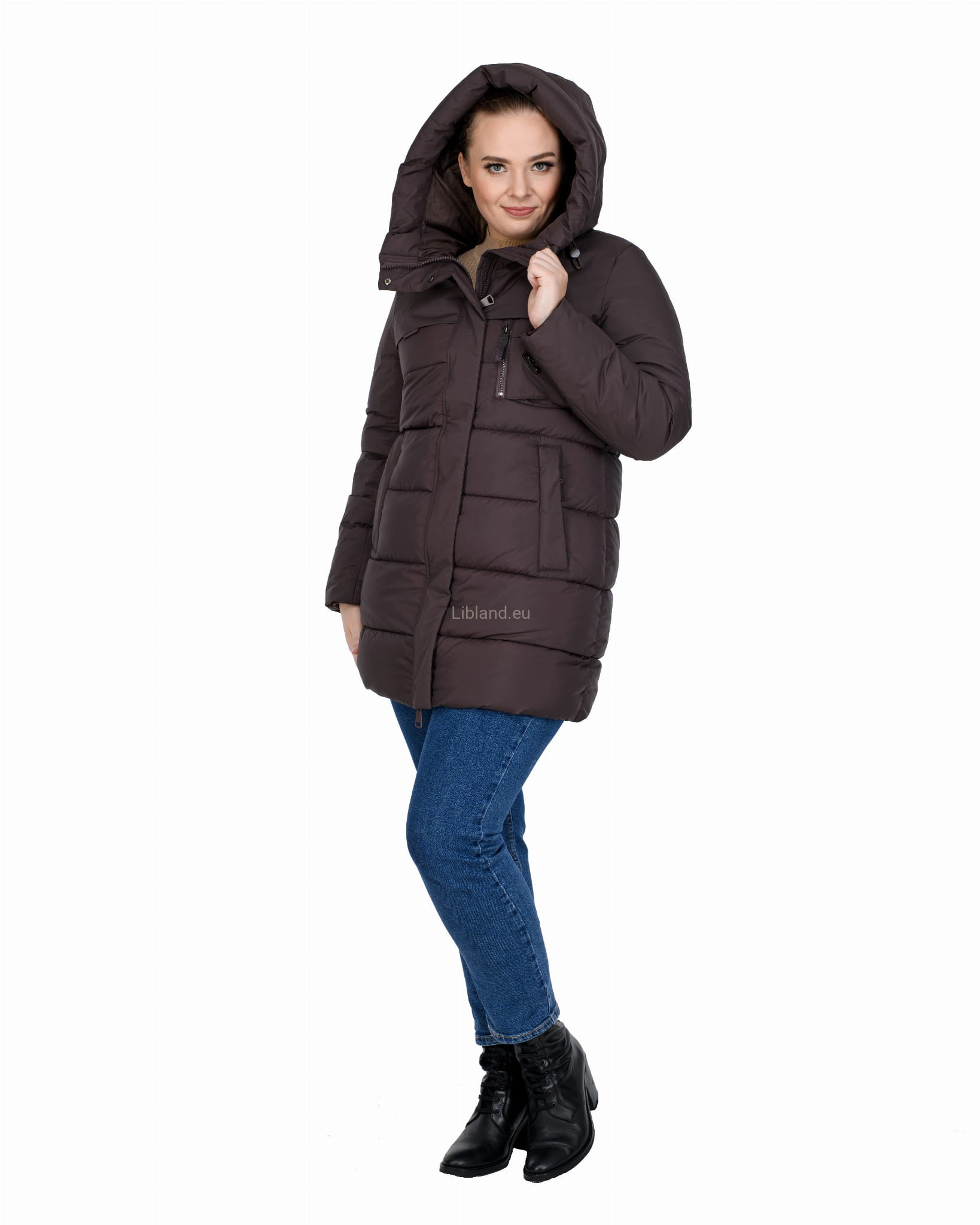 - ocieplany głęboki kaptur z dopinanym sztucznym futrem;