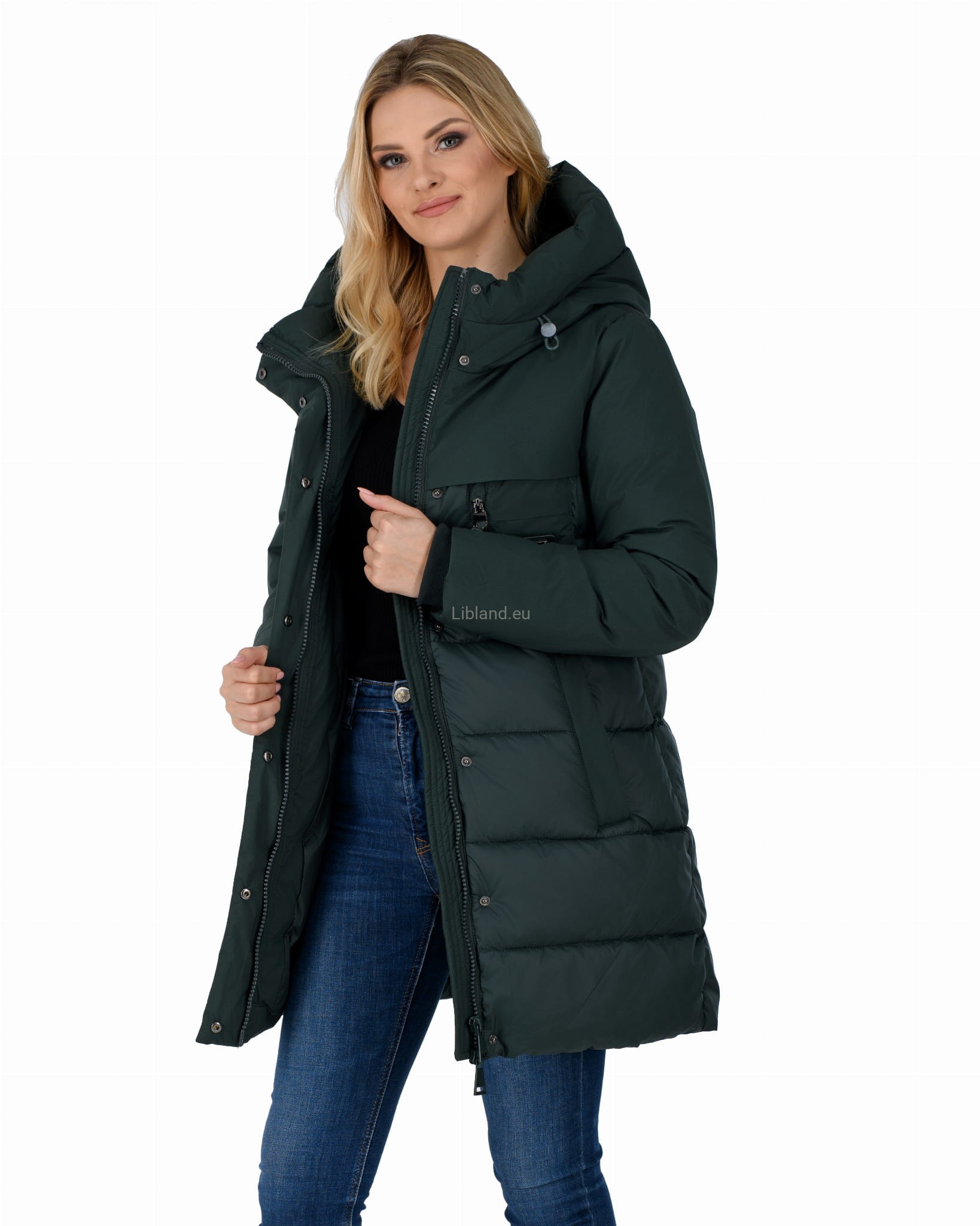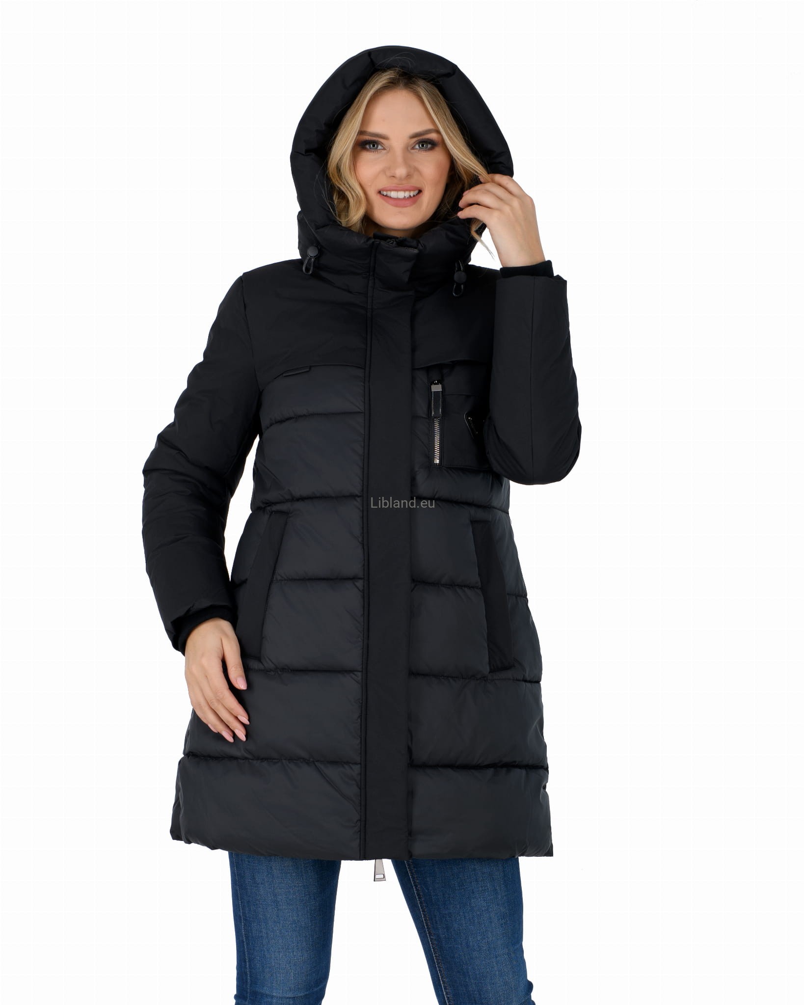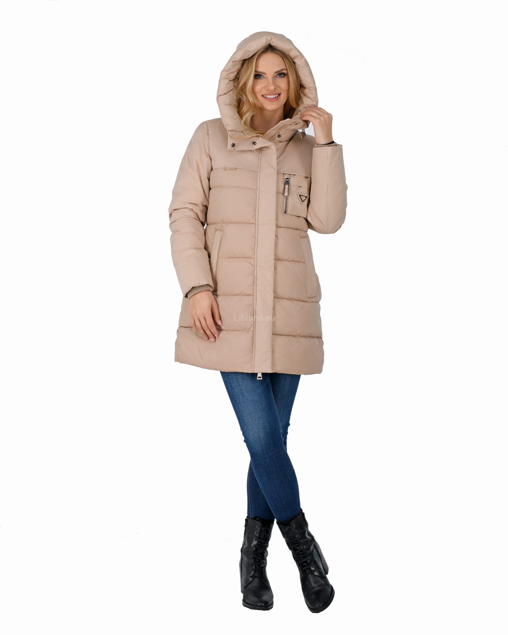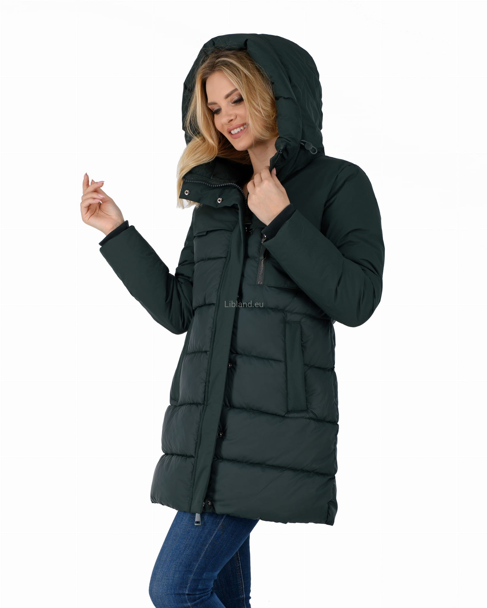 - ocieplany głęboki kaptur z dopinanym sztucznym futrem;