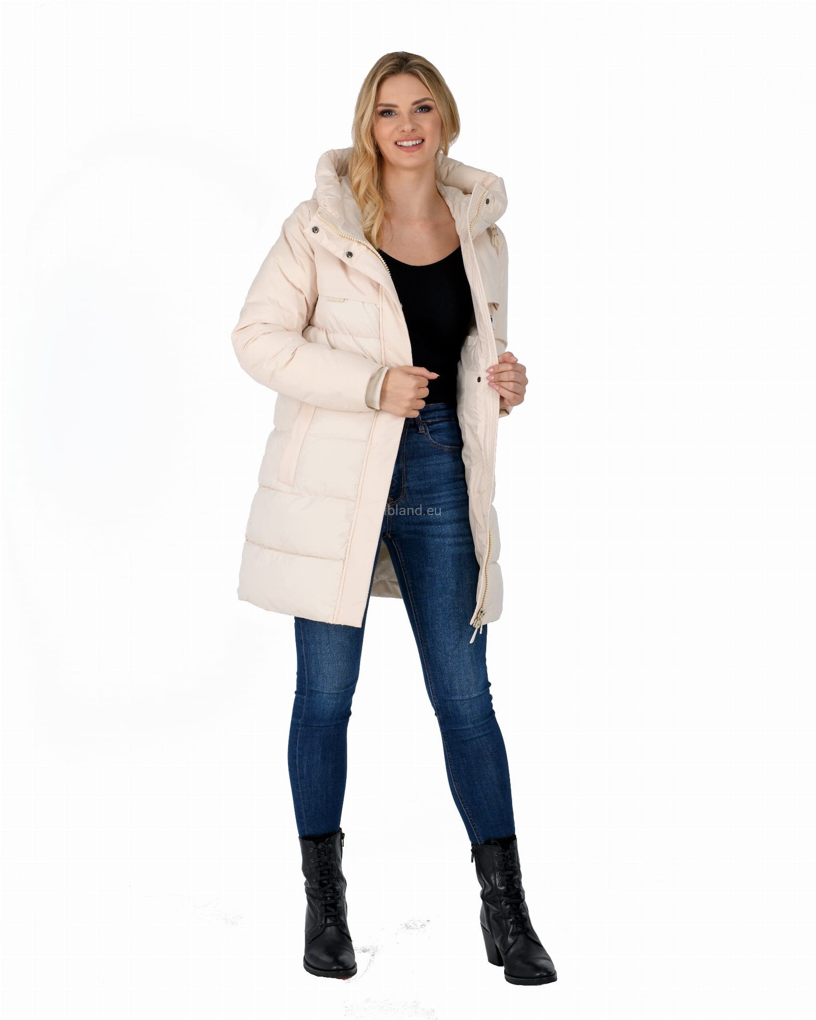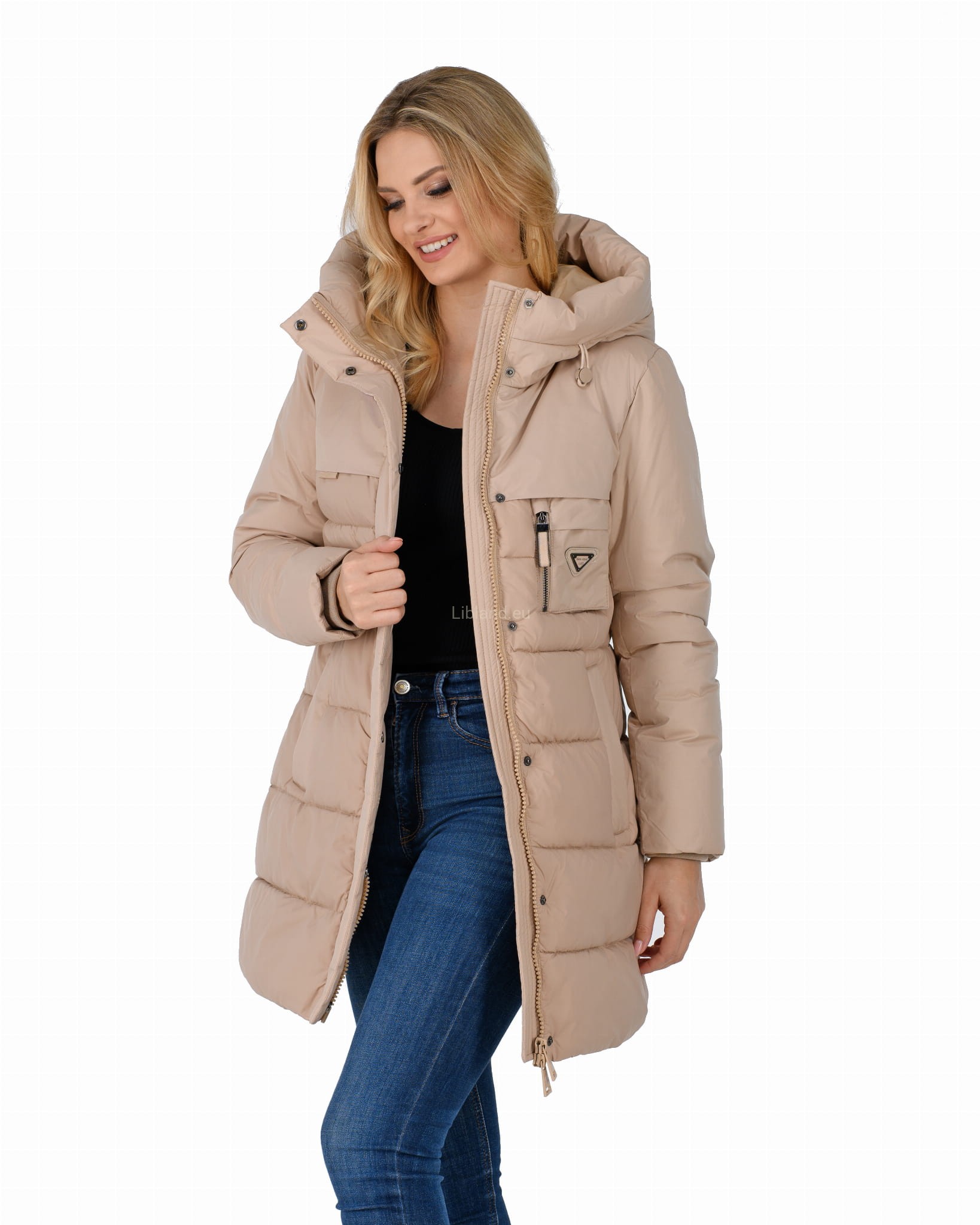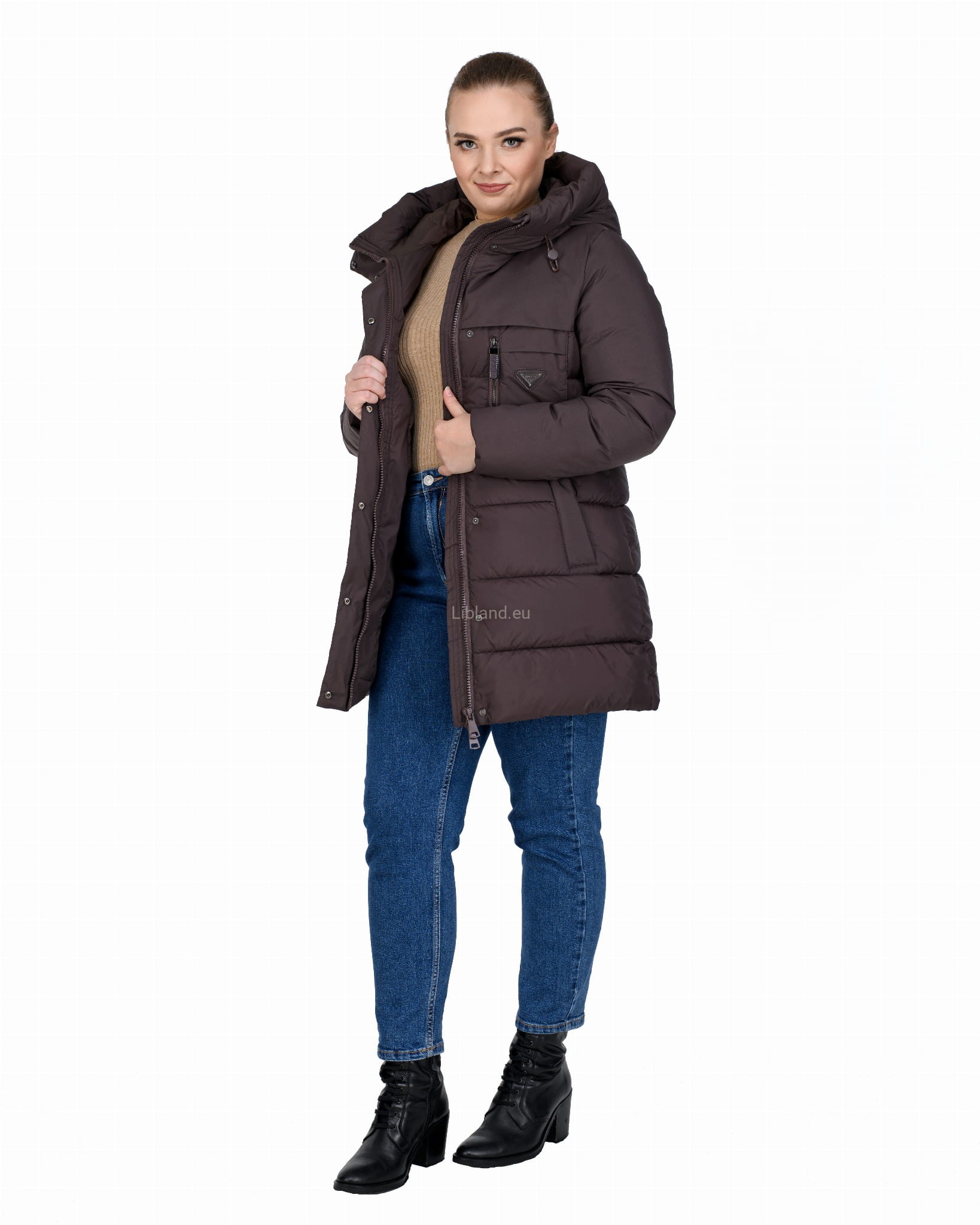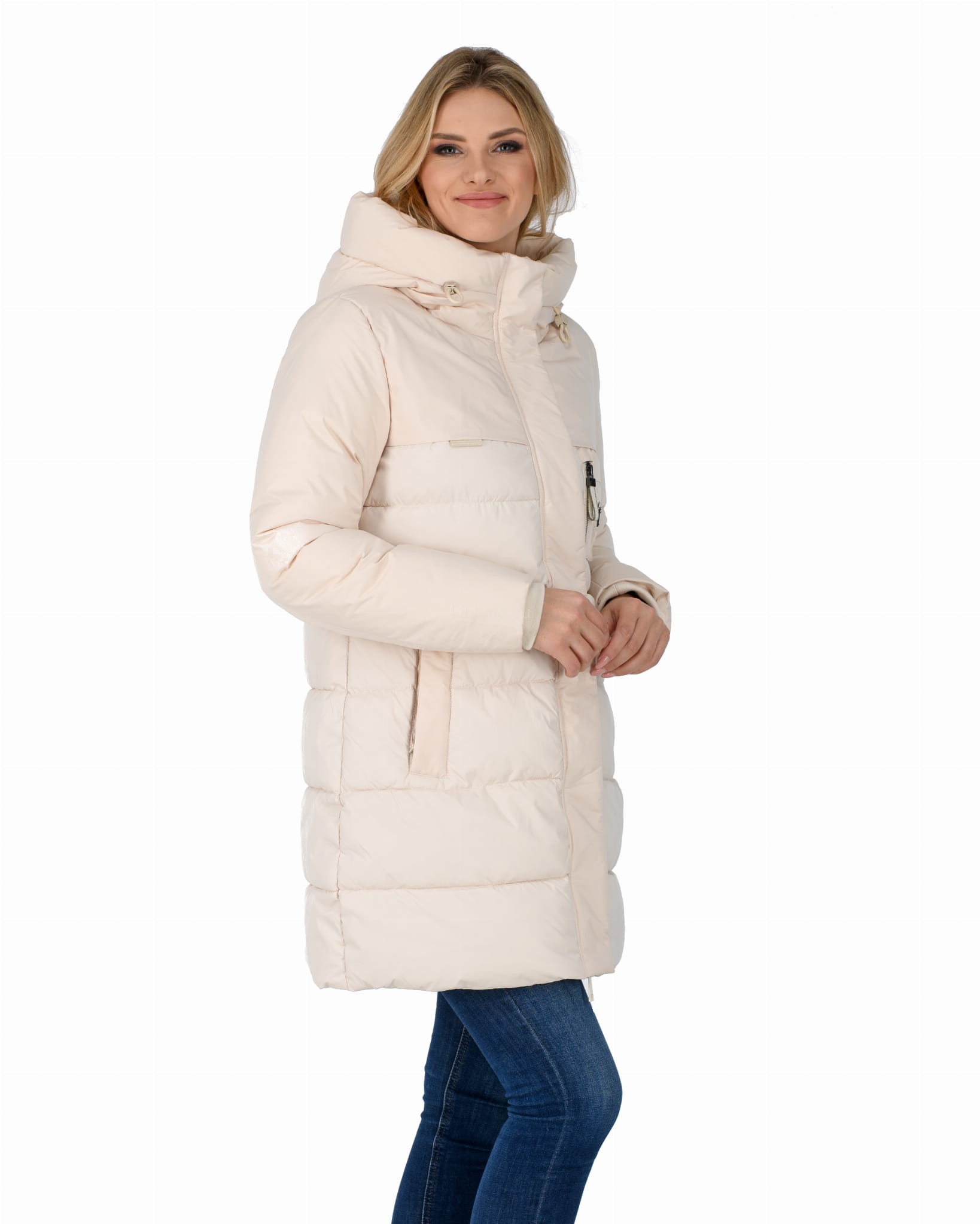 - ocieplany głęboki kaptur z dopinanym sztucznym futrem;