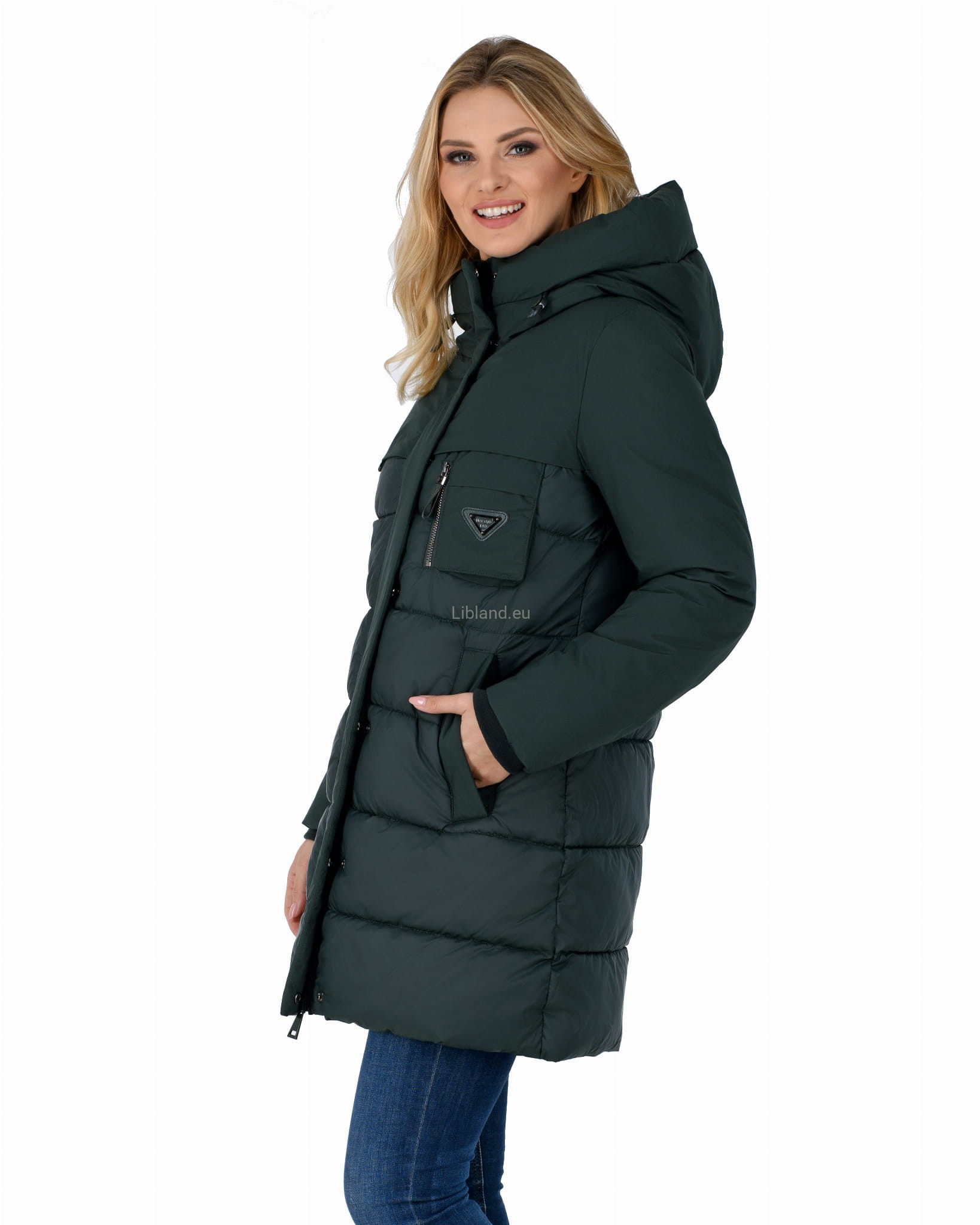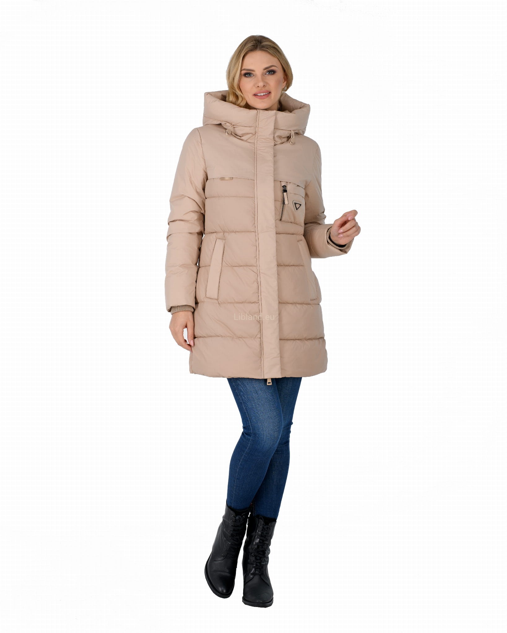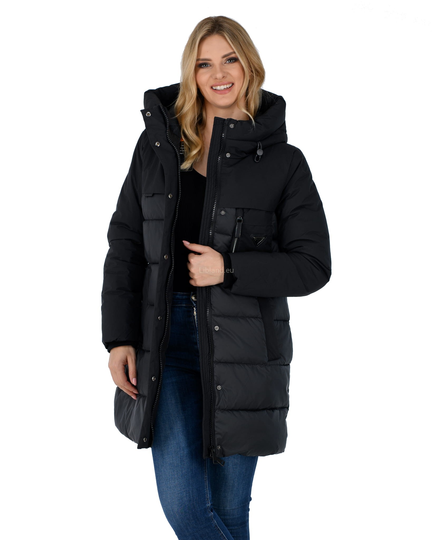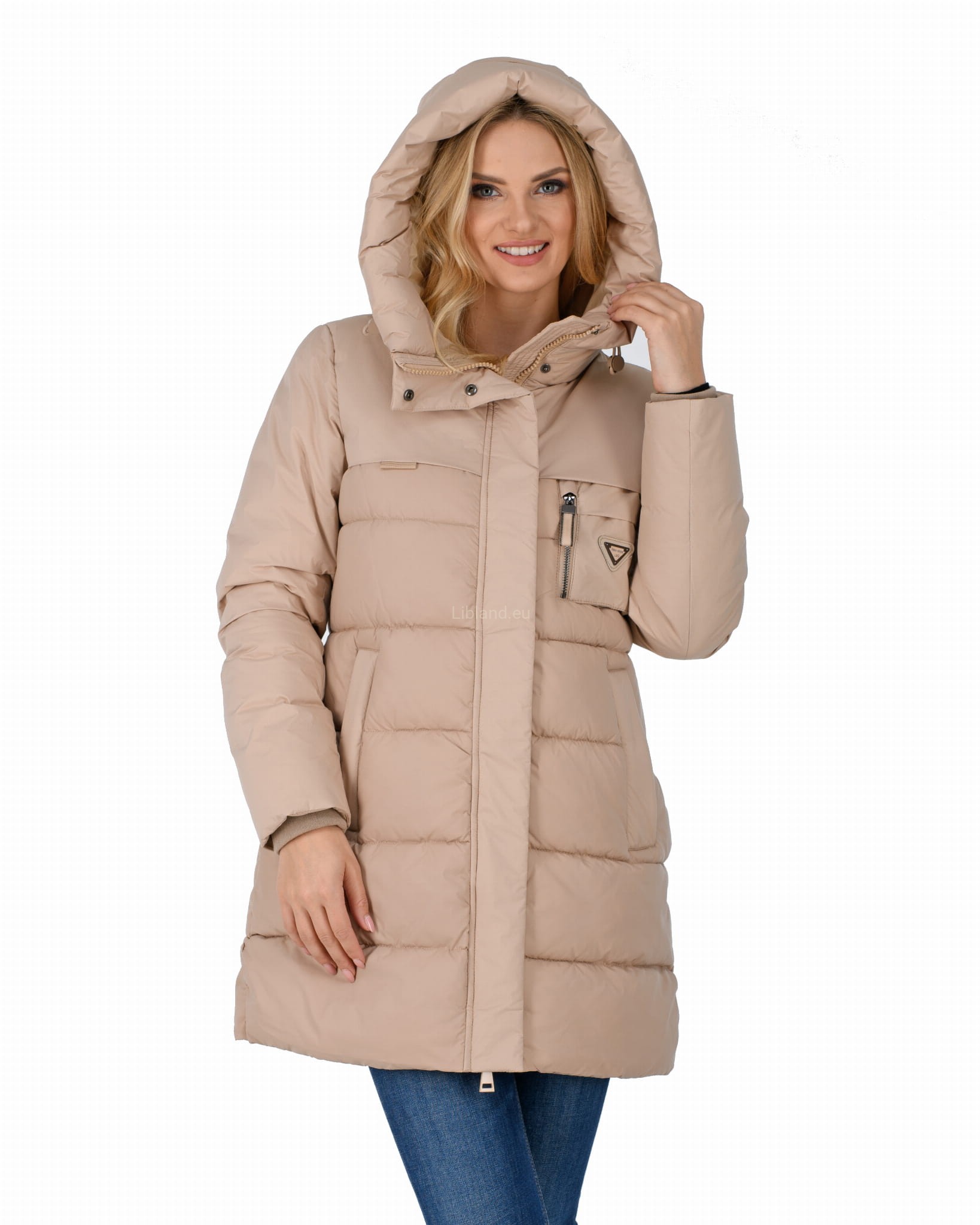 - ocieplany głęboki kaptur z dopinanym sztucznym futrem;