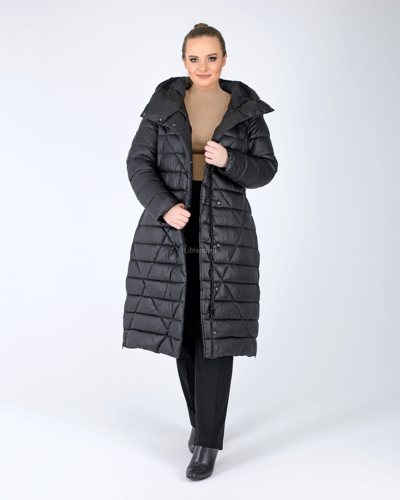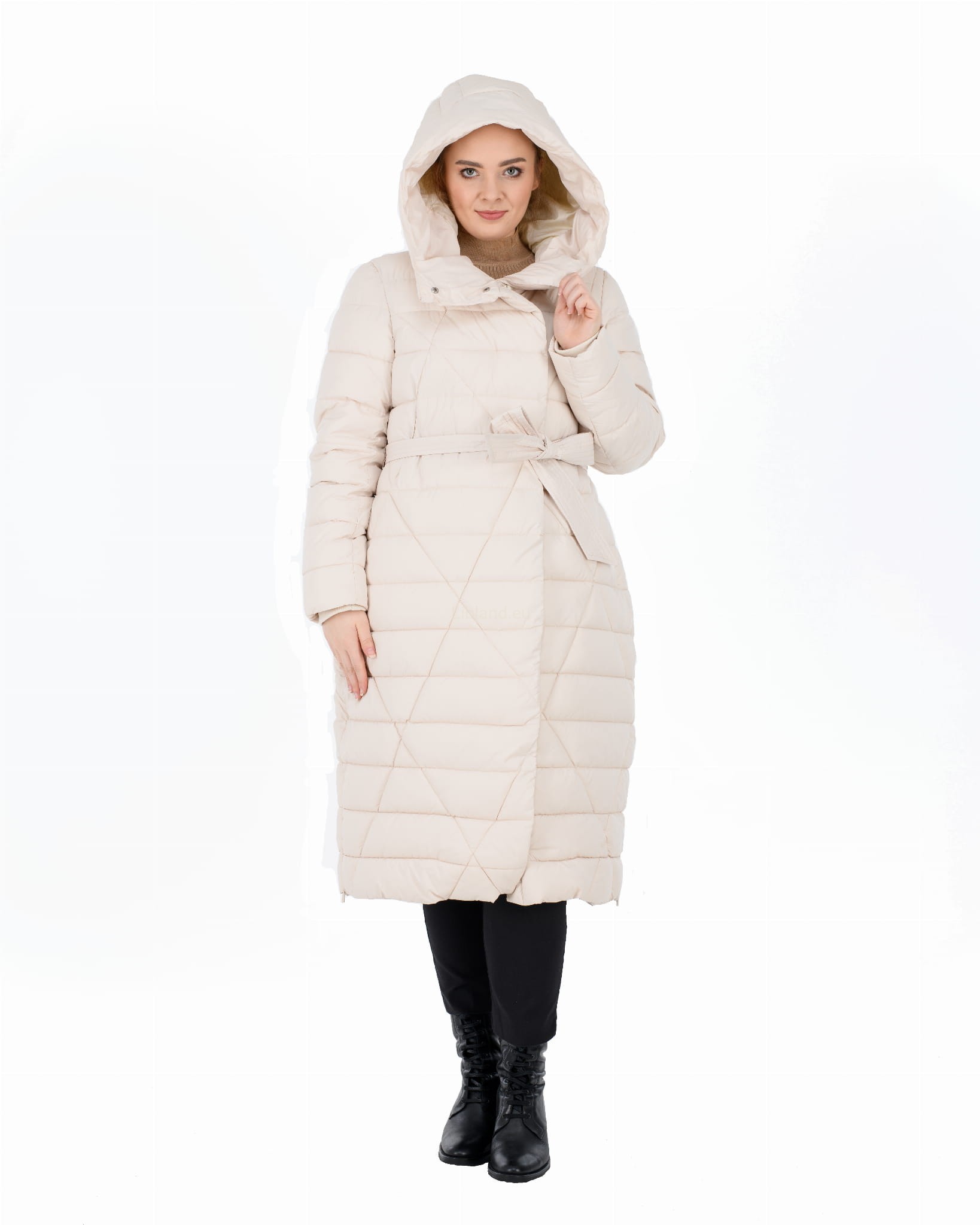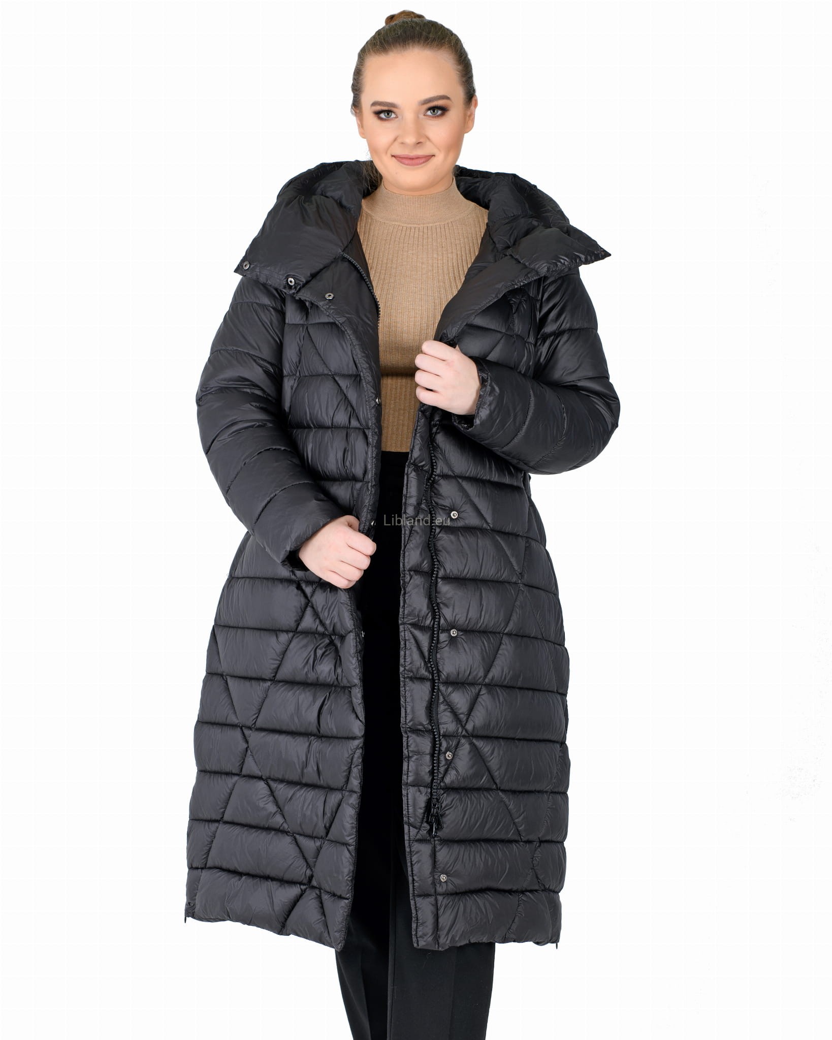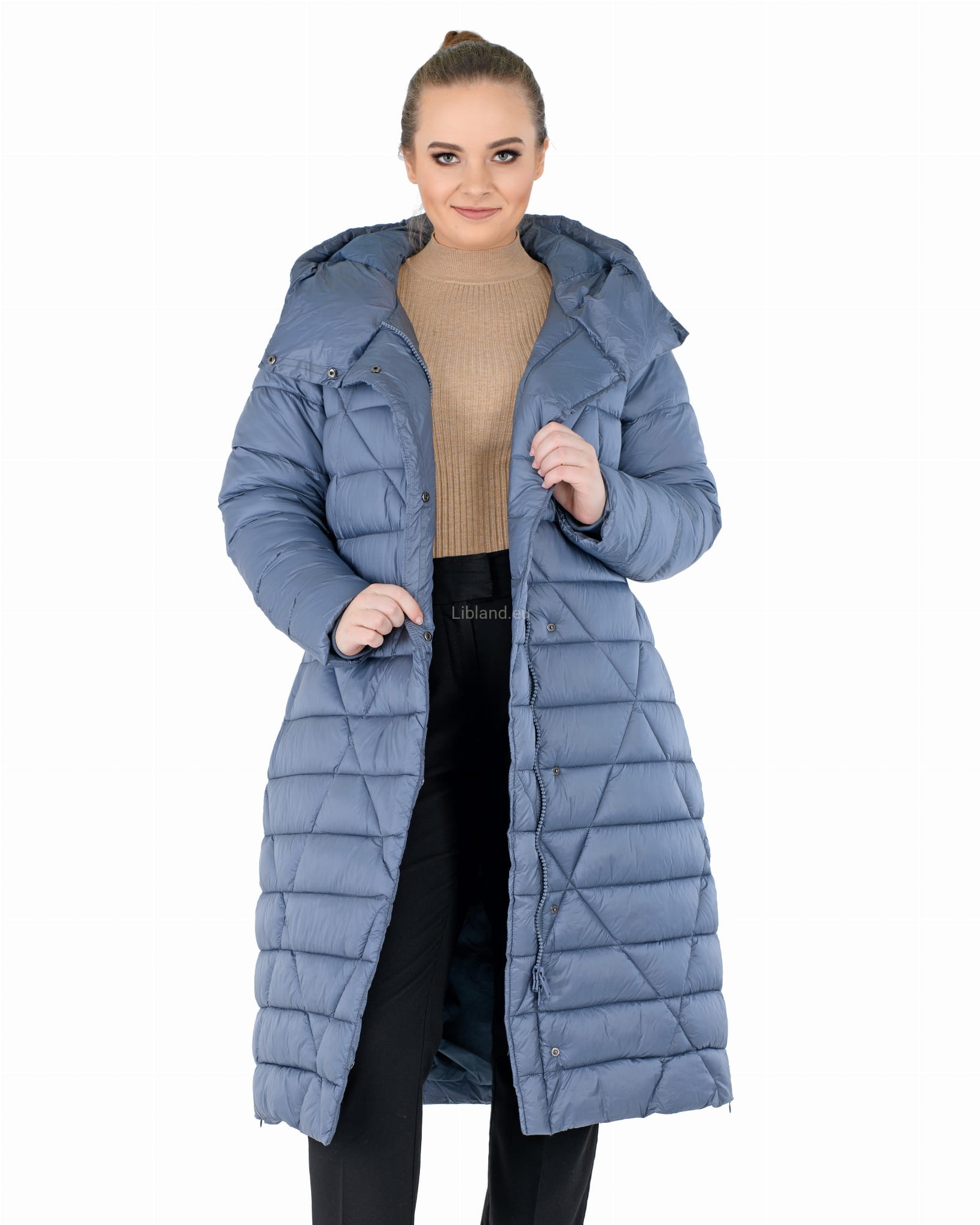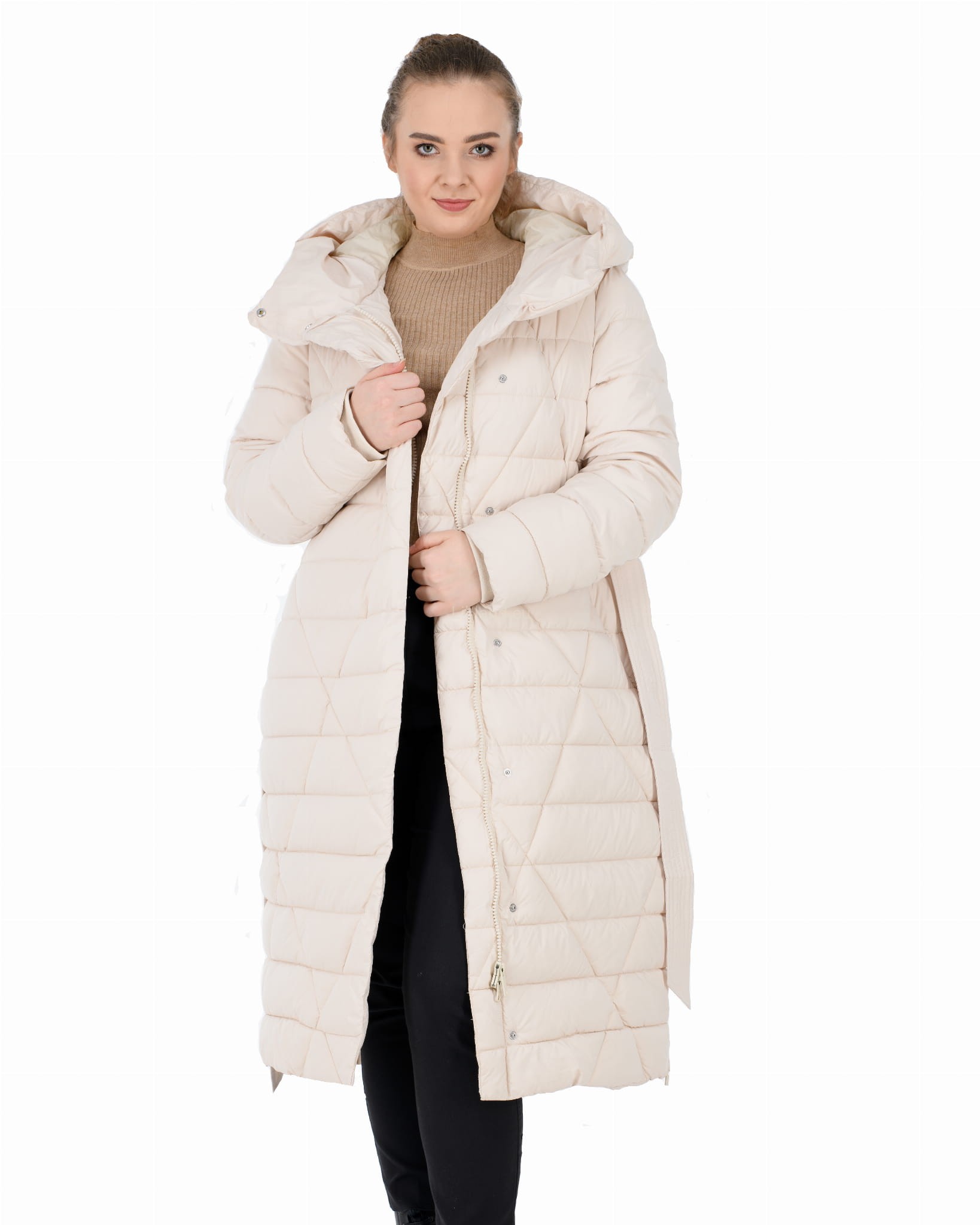 - głęboki kaptur zapinany w komin;