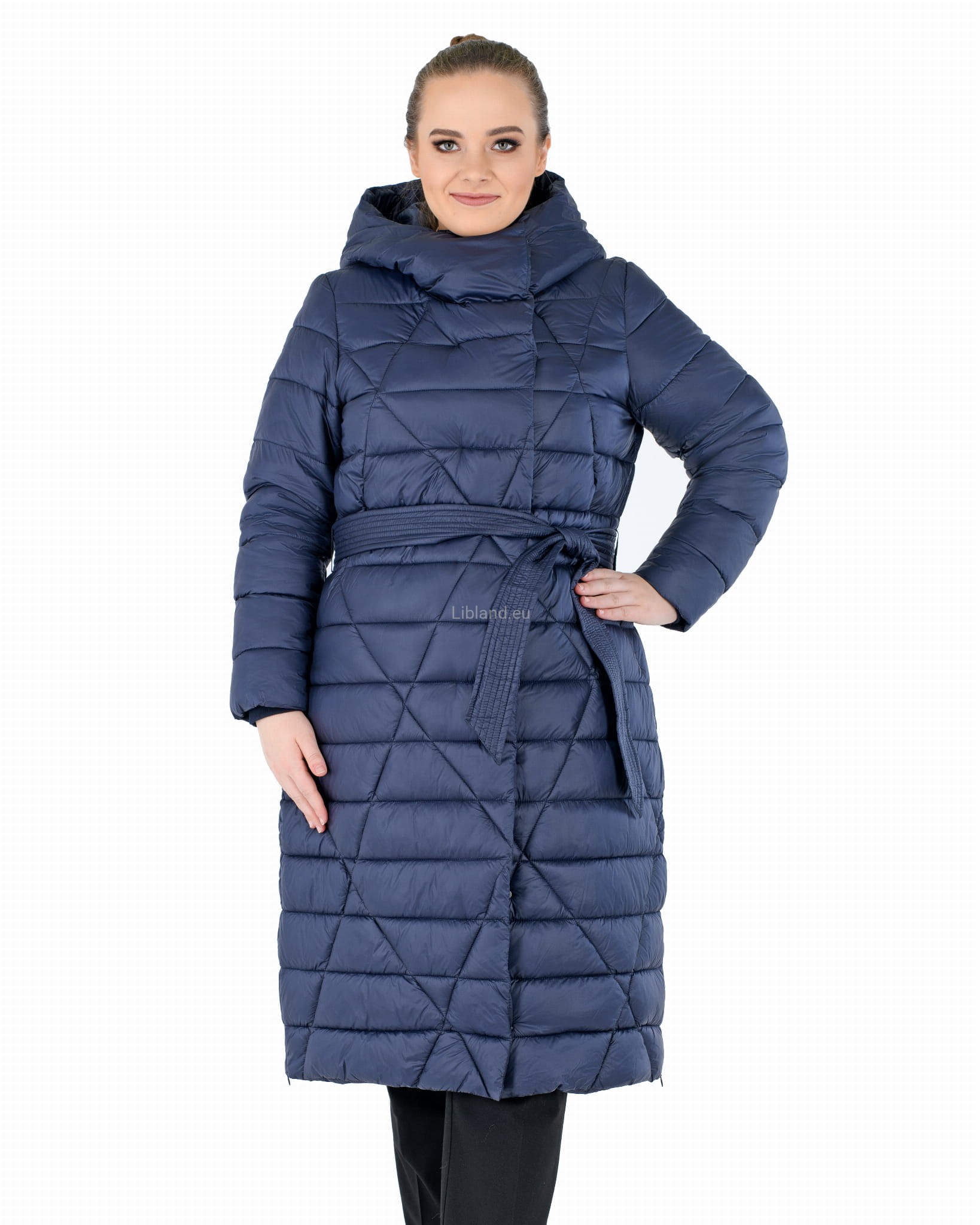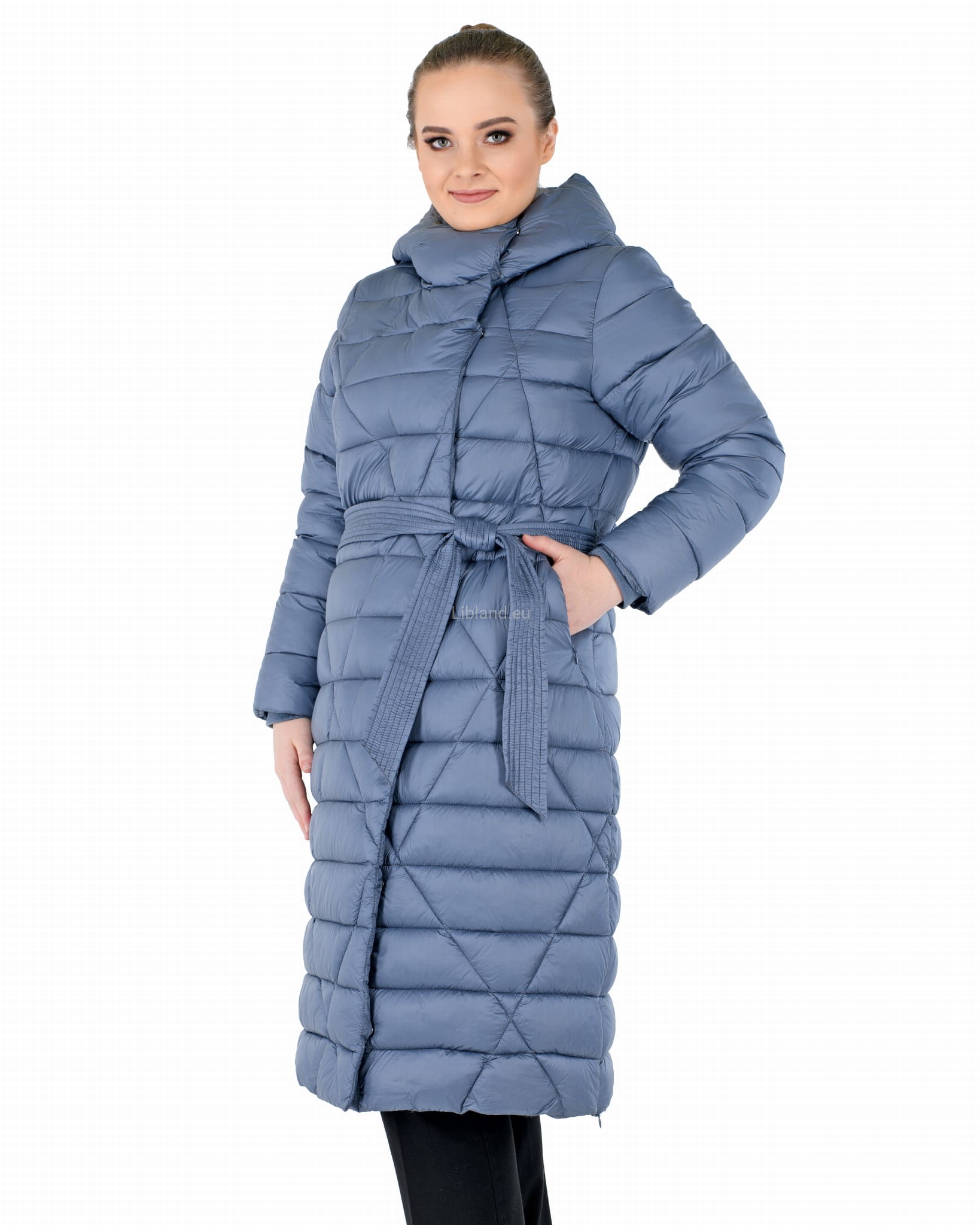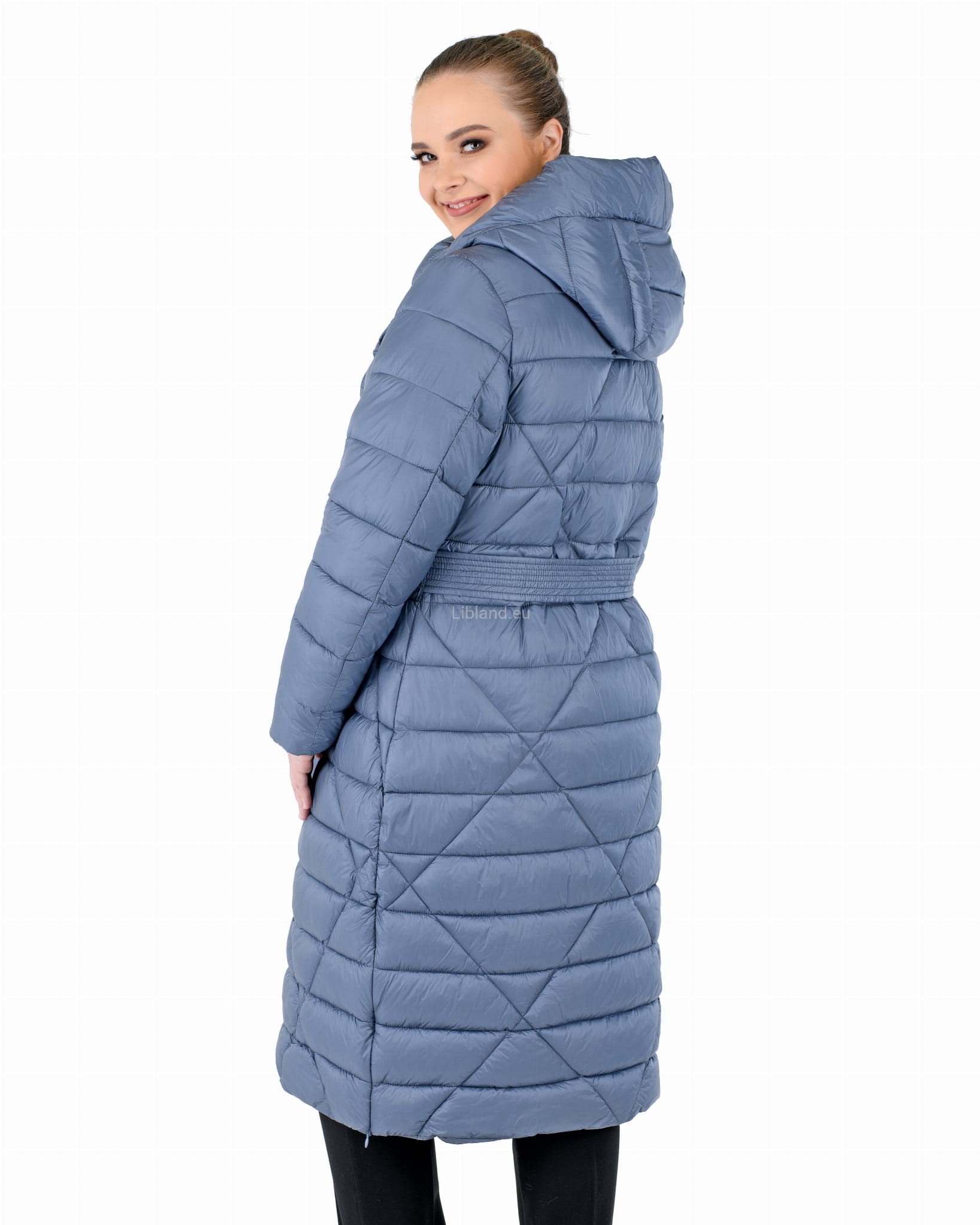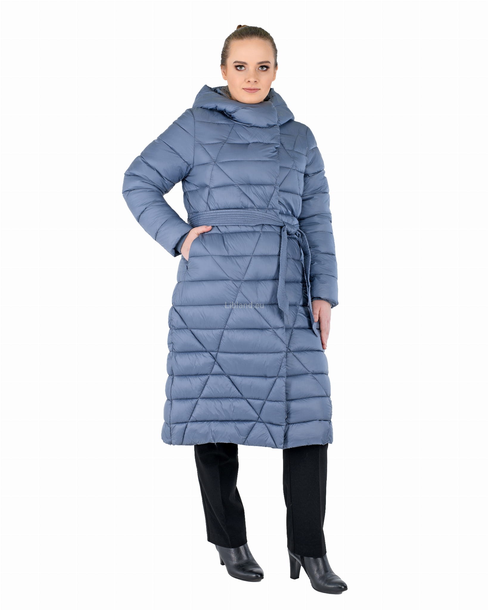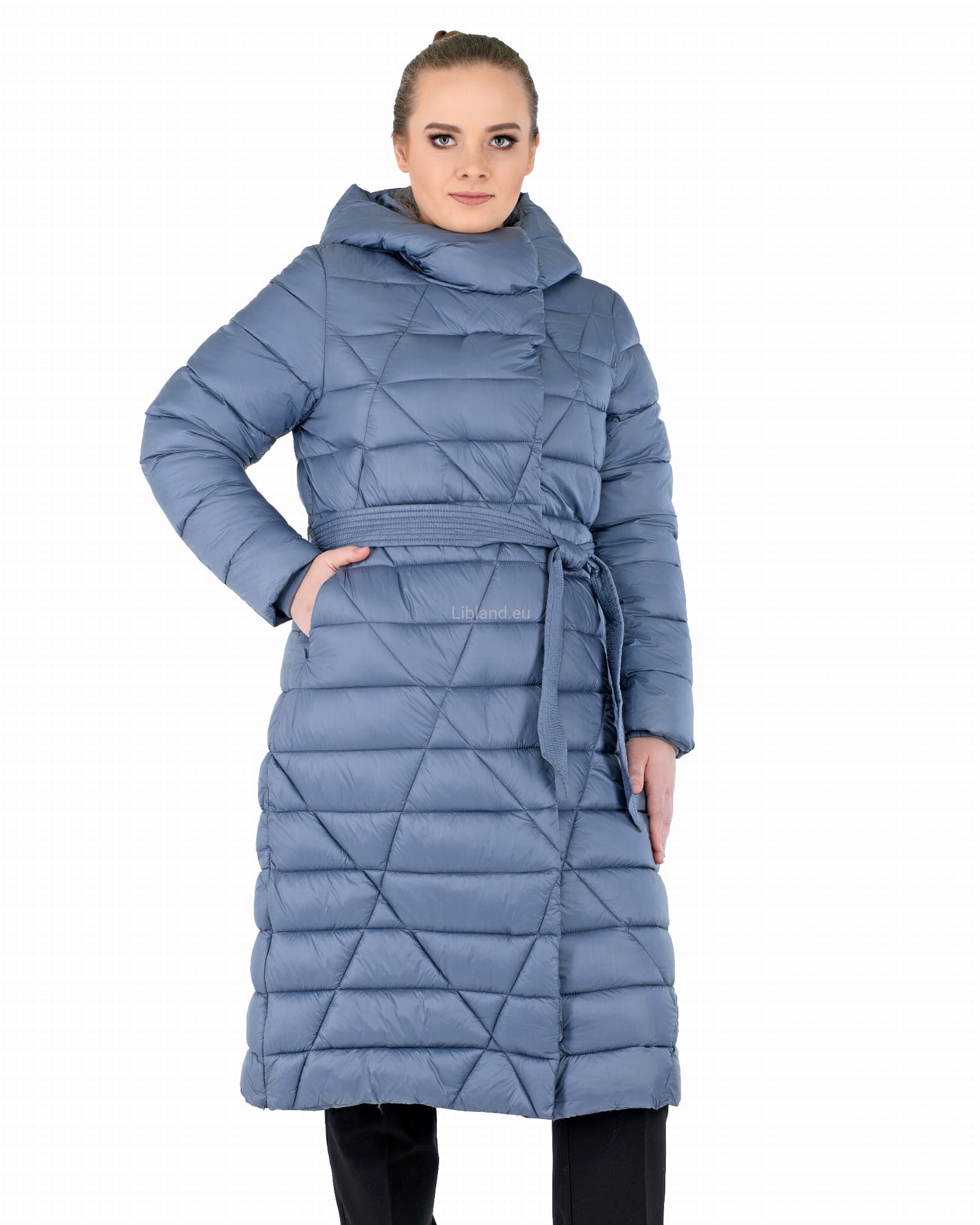 - w talii regulowany umieszczonym w szlufkach paskiem zawiązywanym na przodzie;