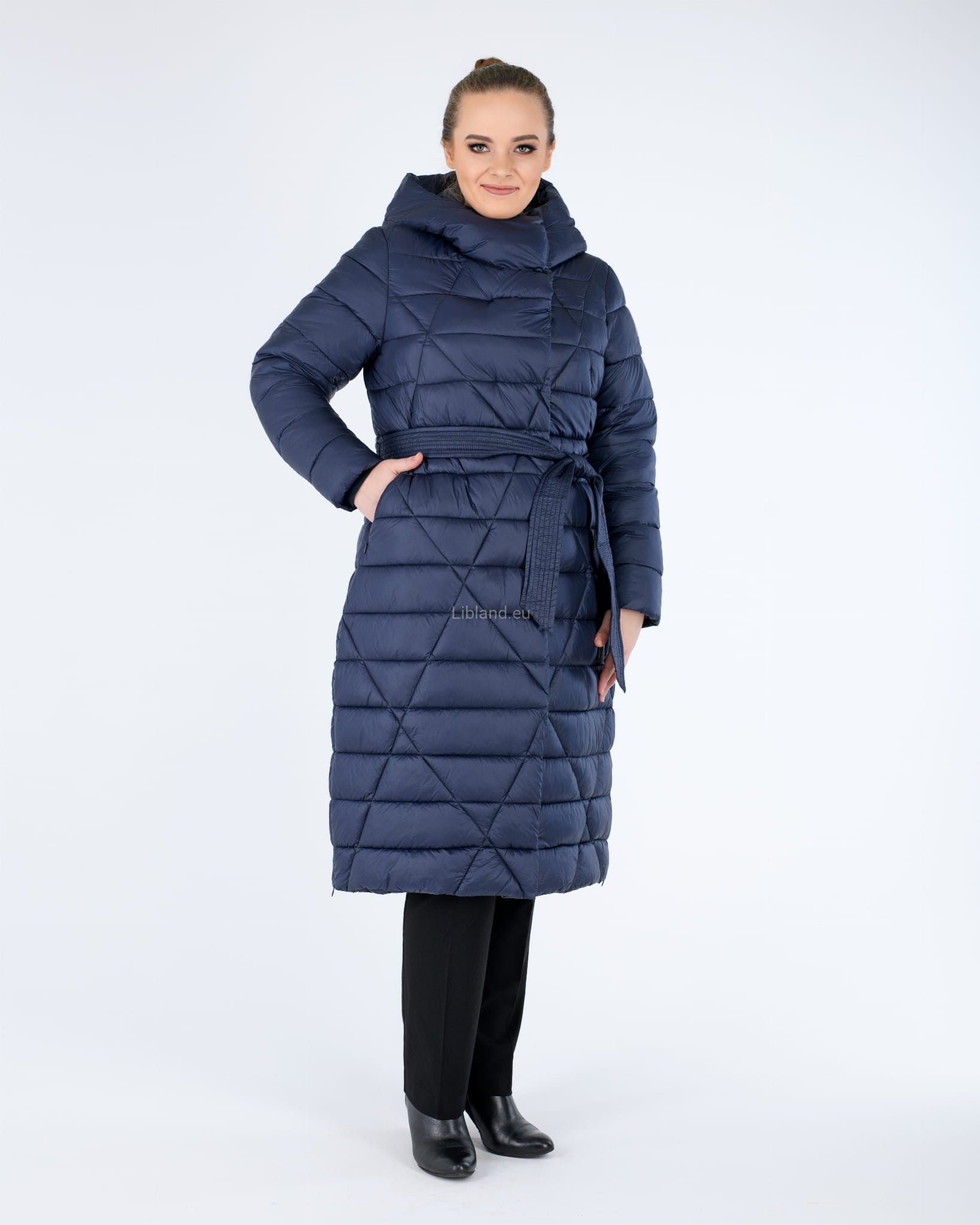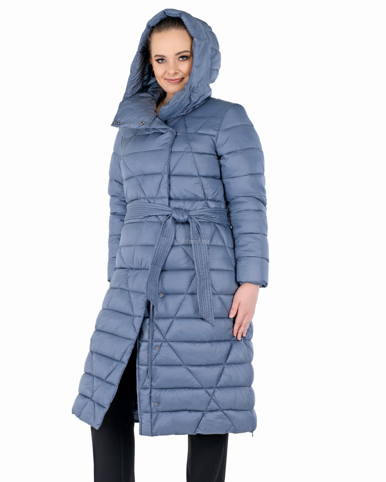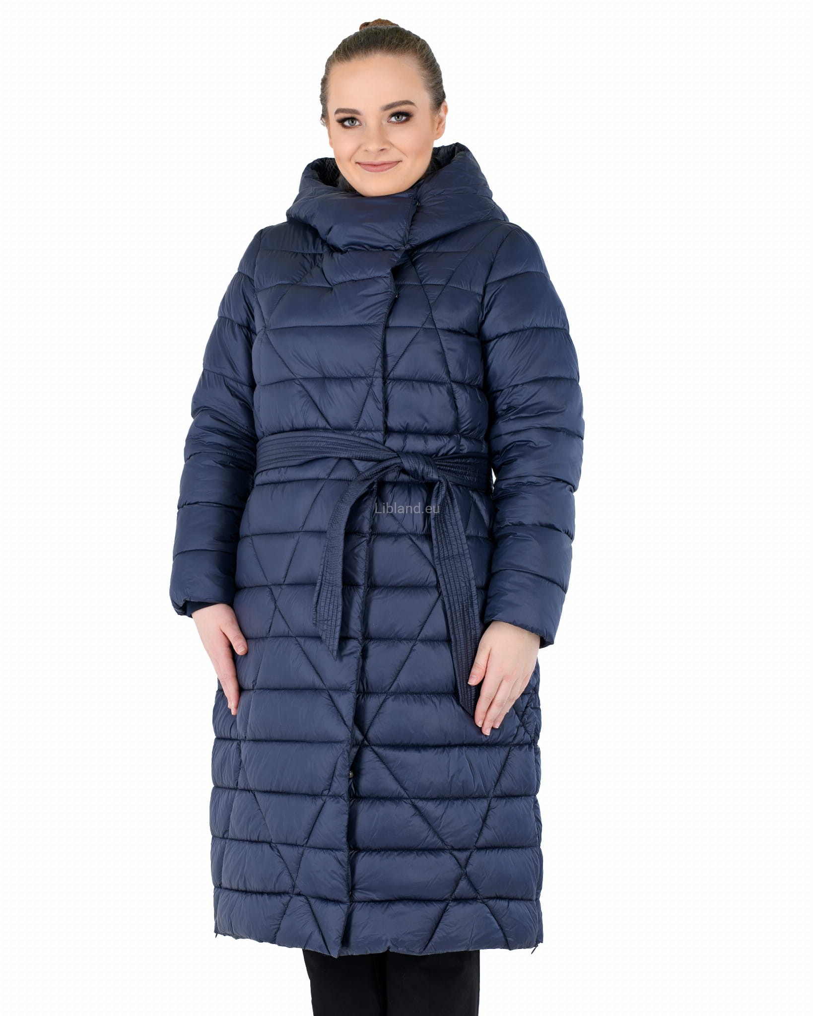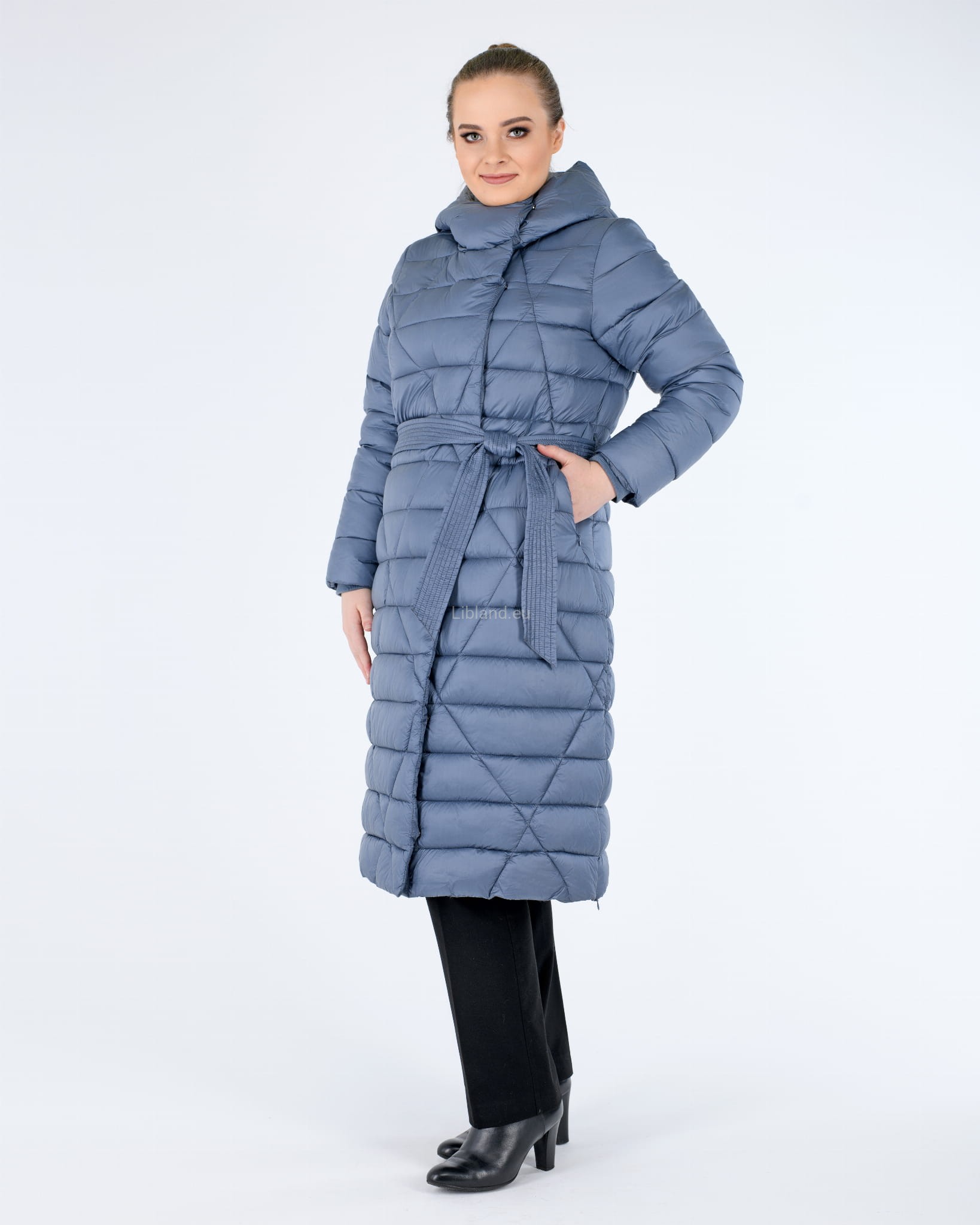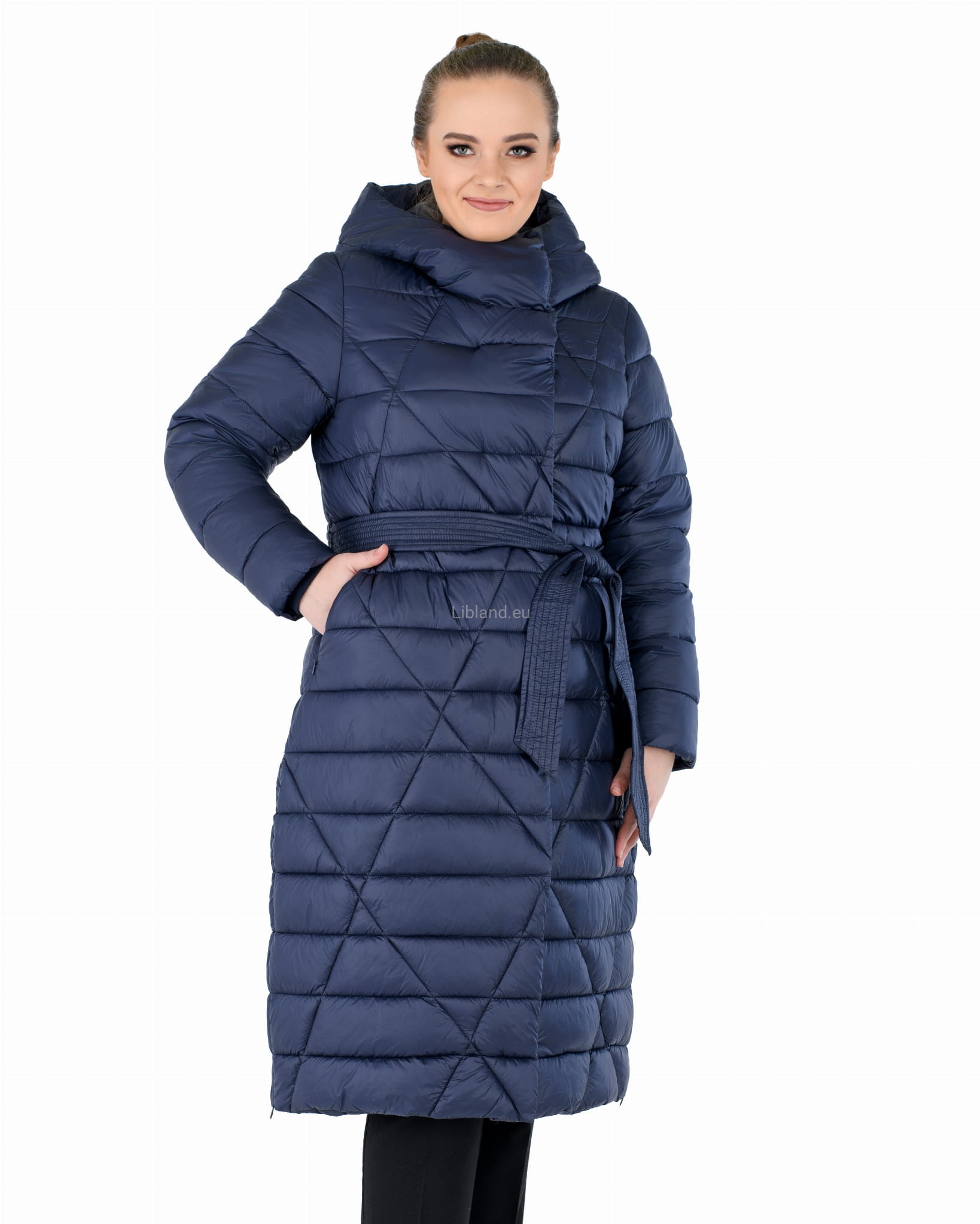 - w talii regulowany umieszczonym w szlufkach paskiem zawiązywanym na przodzie;