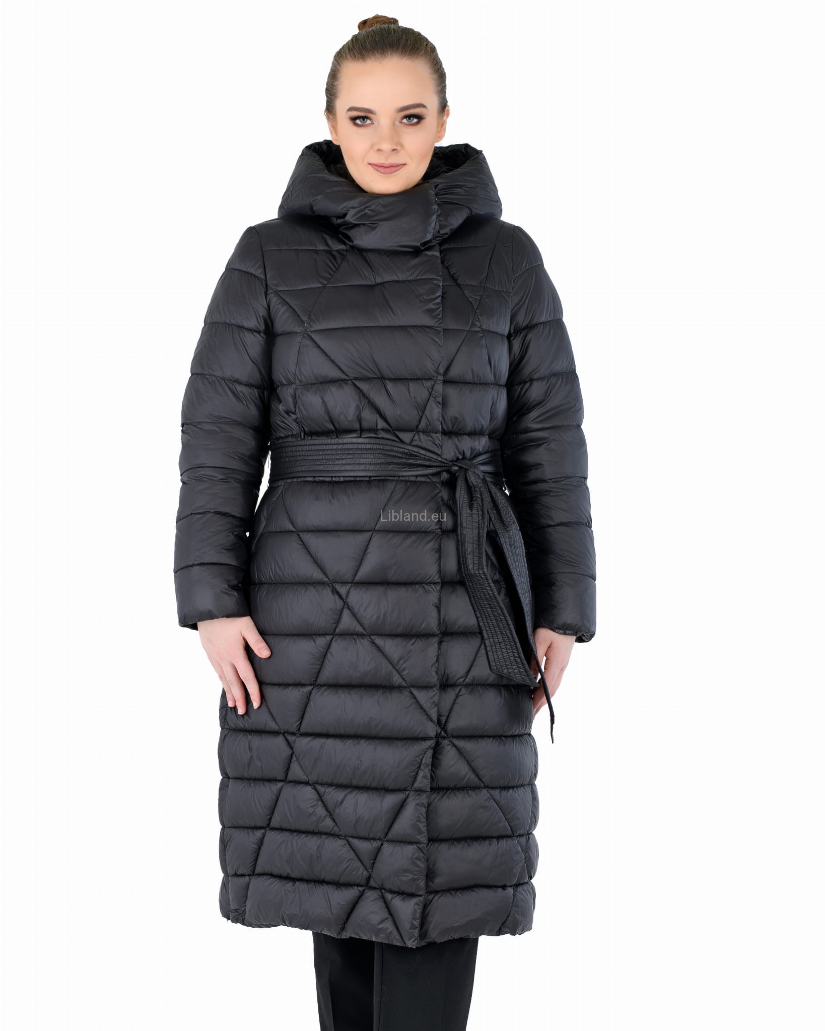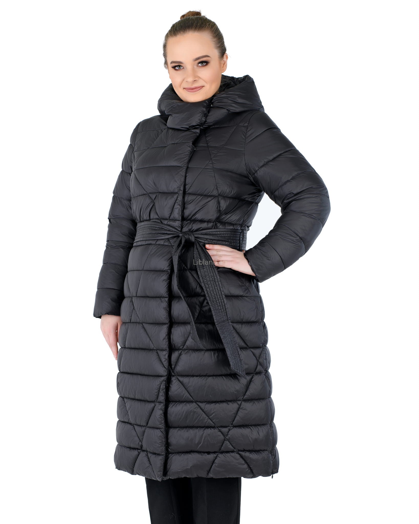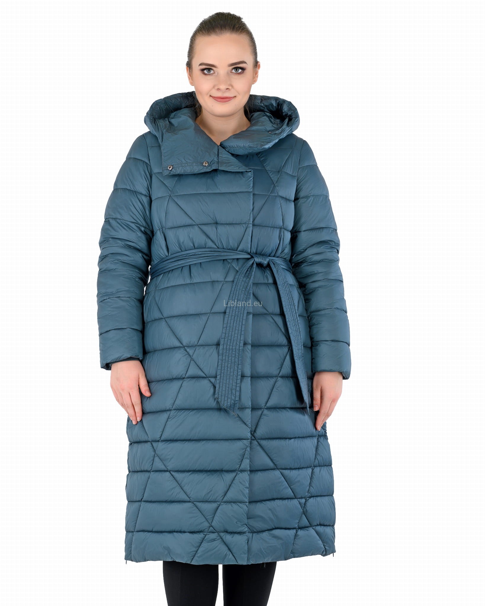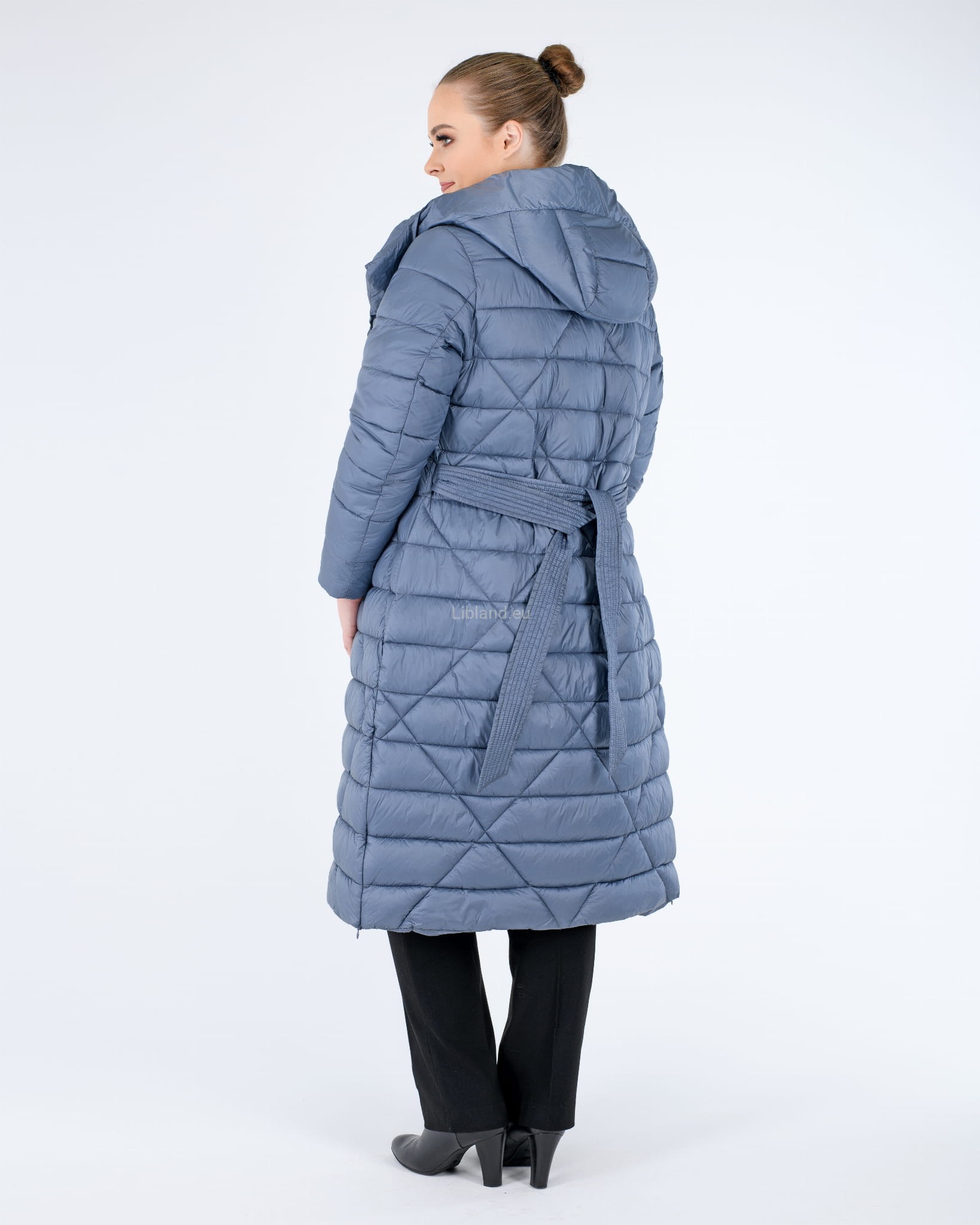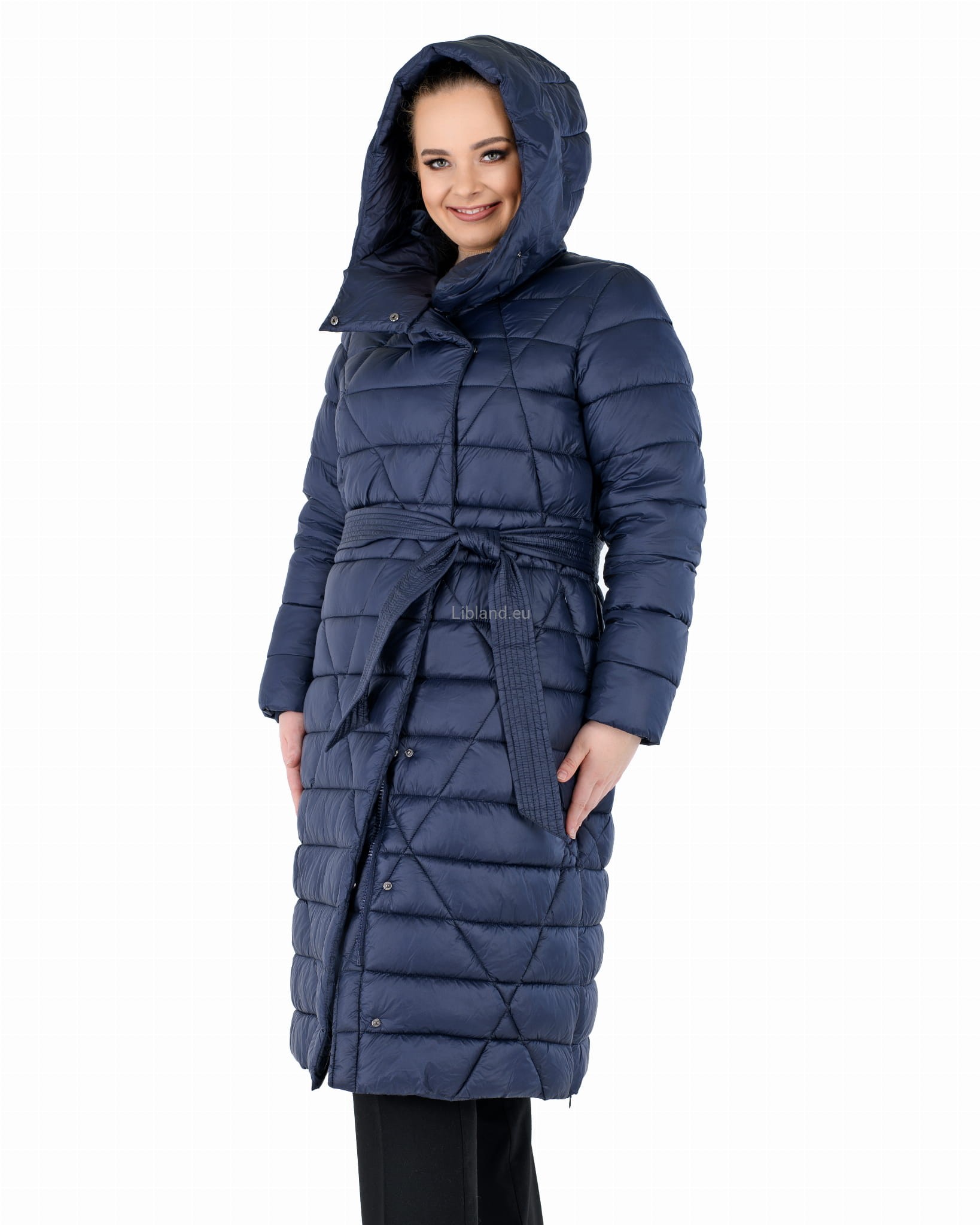 - w talii regulowany umieszczonym w szlufkach paskiem zawiązywanym na przodzie;